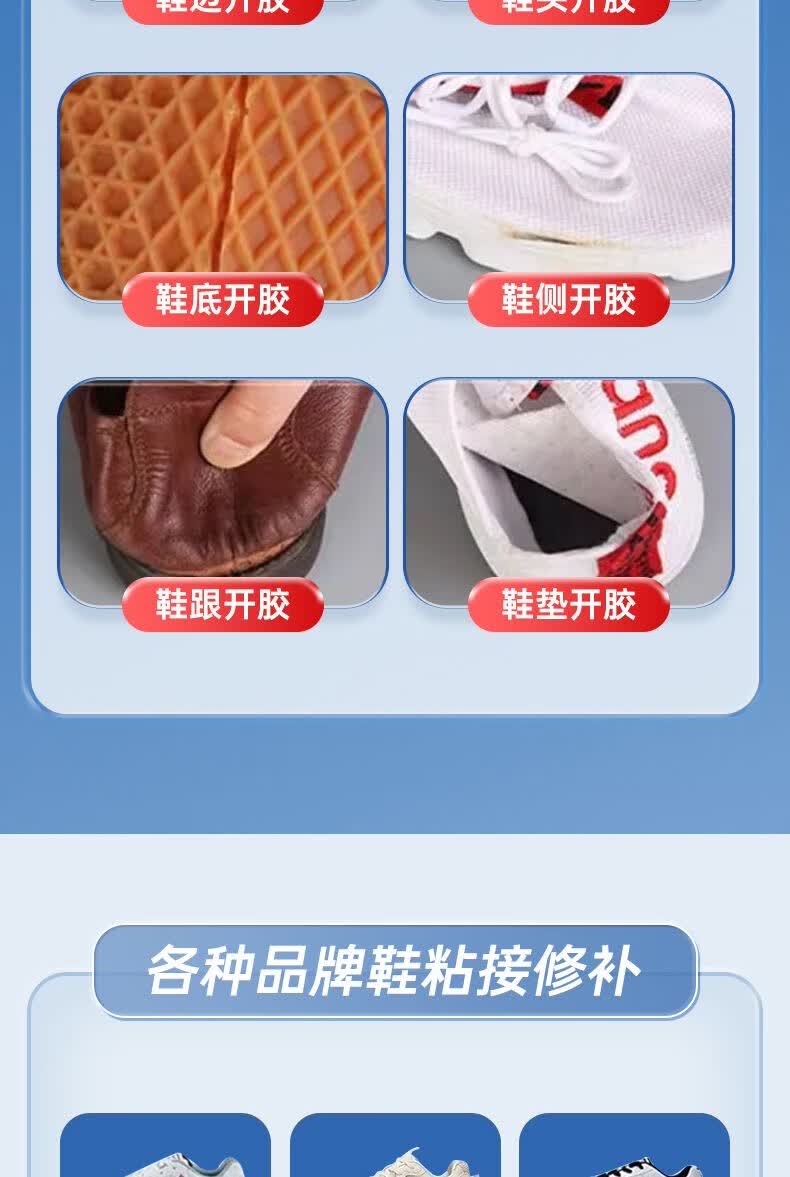 粘鞋万能胶 补鞋胶水强力粘鞋胶 修鞋匠补鞋粘的牢运动鞋皮鞋开胶修补 透明防水软胶粘鞋专用胶水 品牌专用补鞋胶*1支