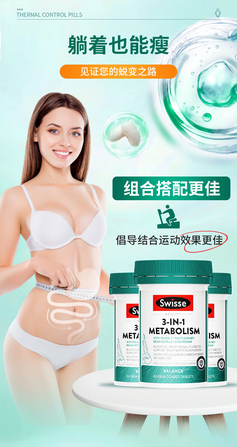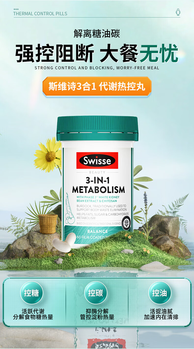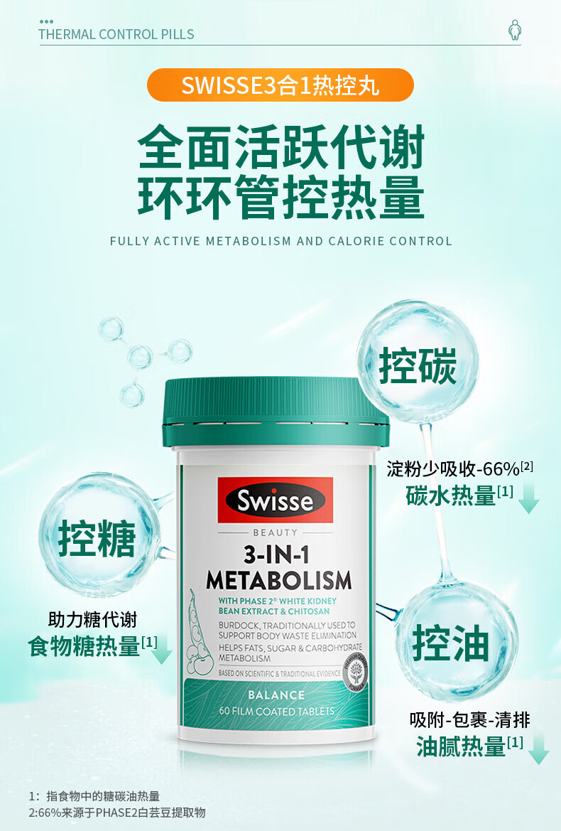 Swisse白芸豆阻断剂热控丸减肥药减肥瘦肚子燃脂代谢阻断油碳糖提高代谢 【强效燃脂不反弹】热控丸 60粒*1瓶