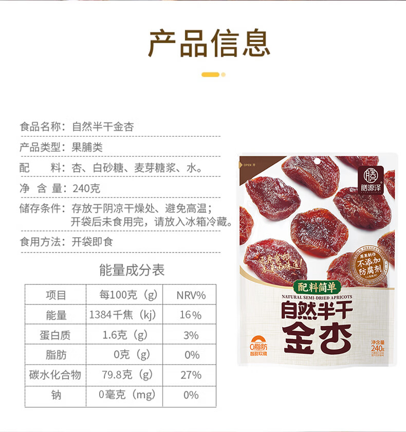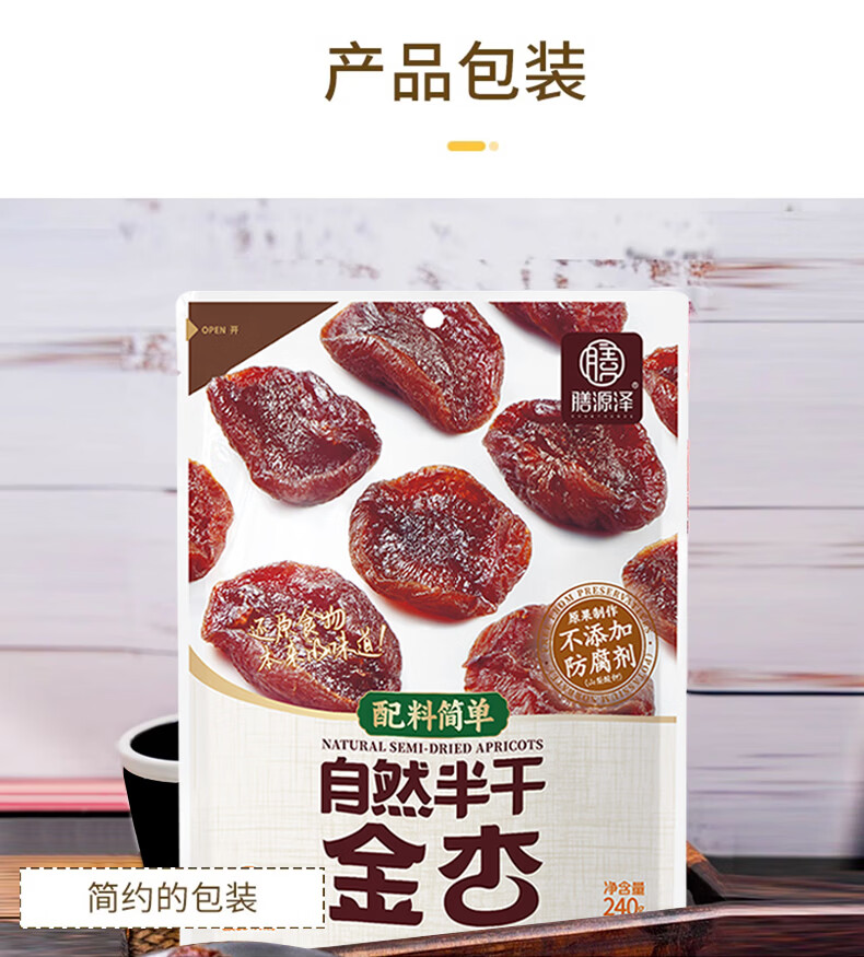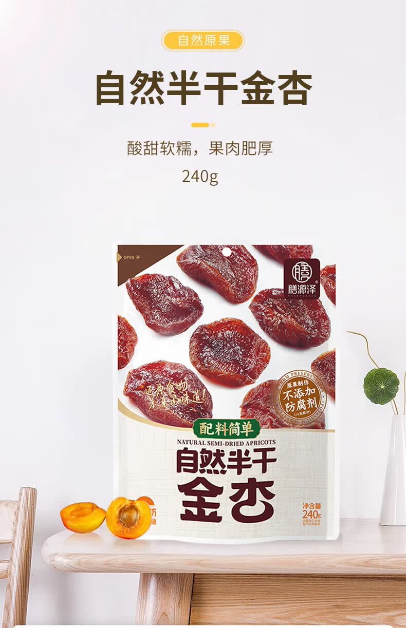 膳源泽去核半干金杏240g休闲零食蜜饯果干无添加防腐剂0脂肪独立小包装