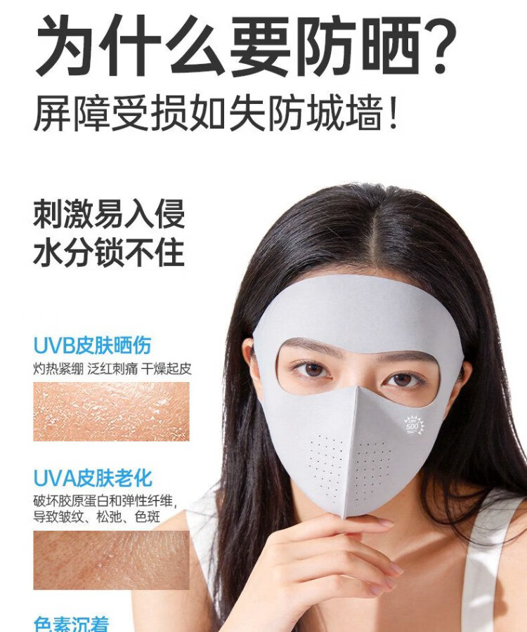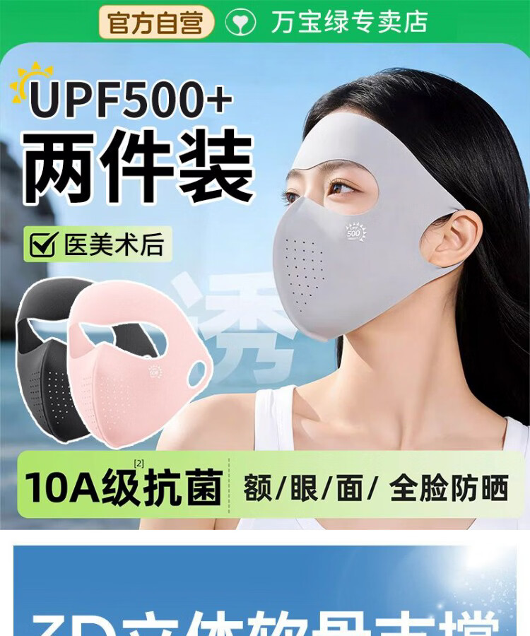万宝绿【两件装】防晒面罩全脸防紫外线夏季遮阳口罩高颜值开车骑行医美 【超值两件换洗】银灰+银灰【科学防晒 透气防护】 玻尿酸保湿【UPF500+防晒】10A抑菌