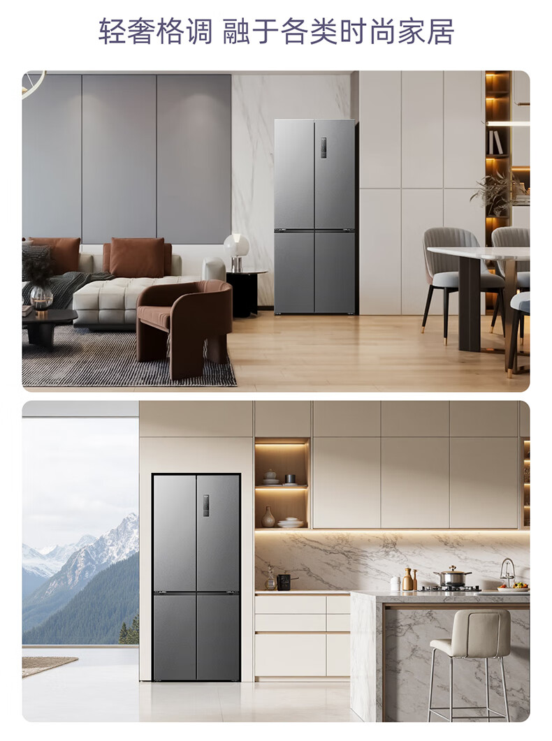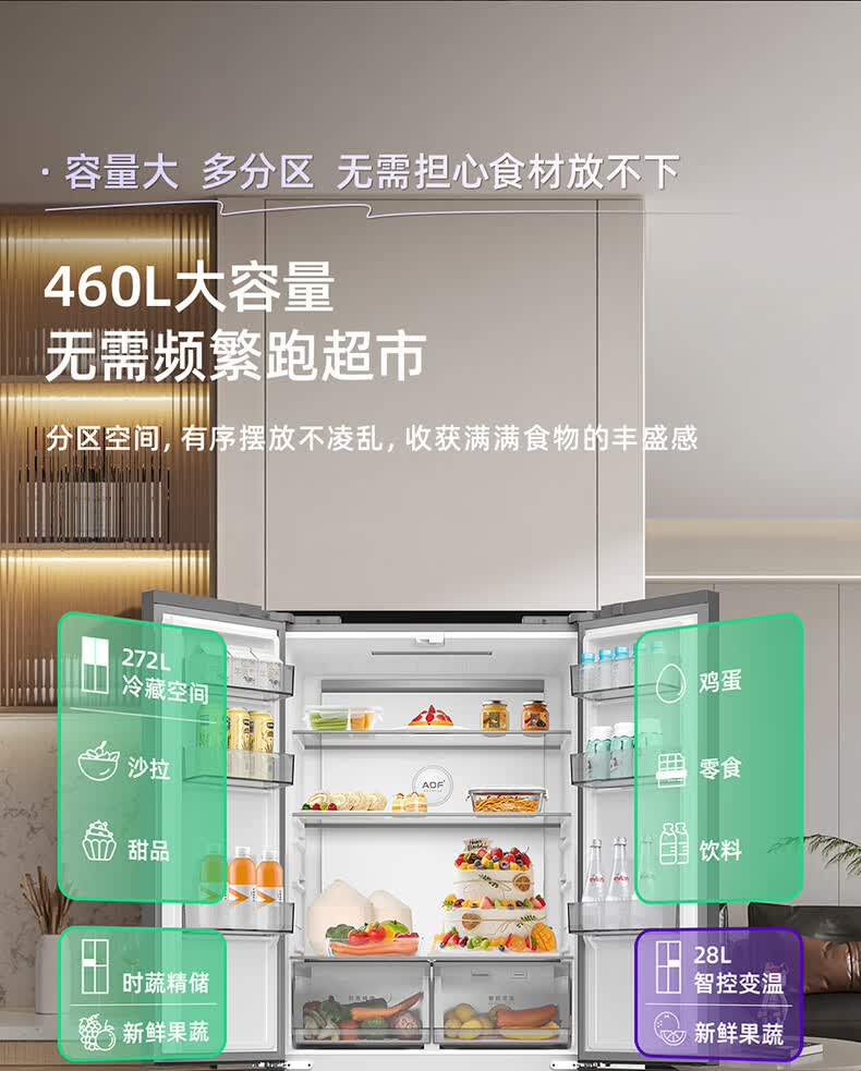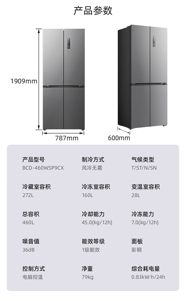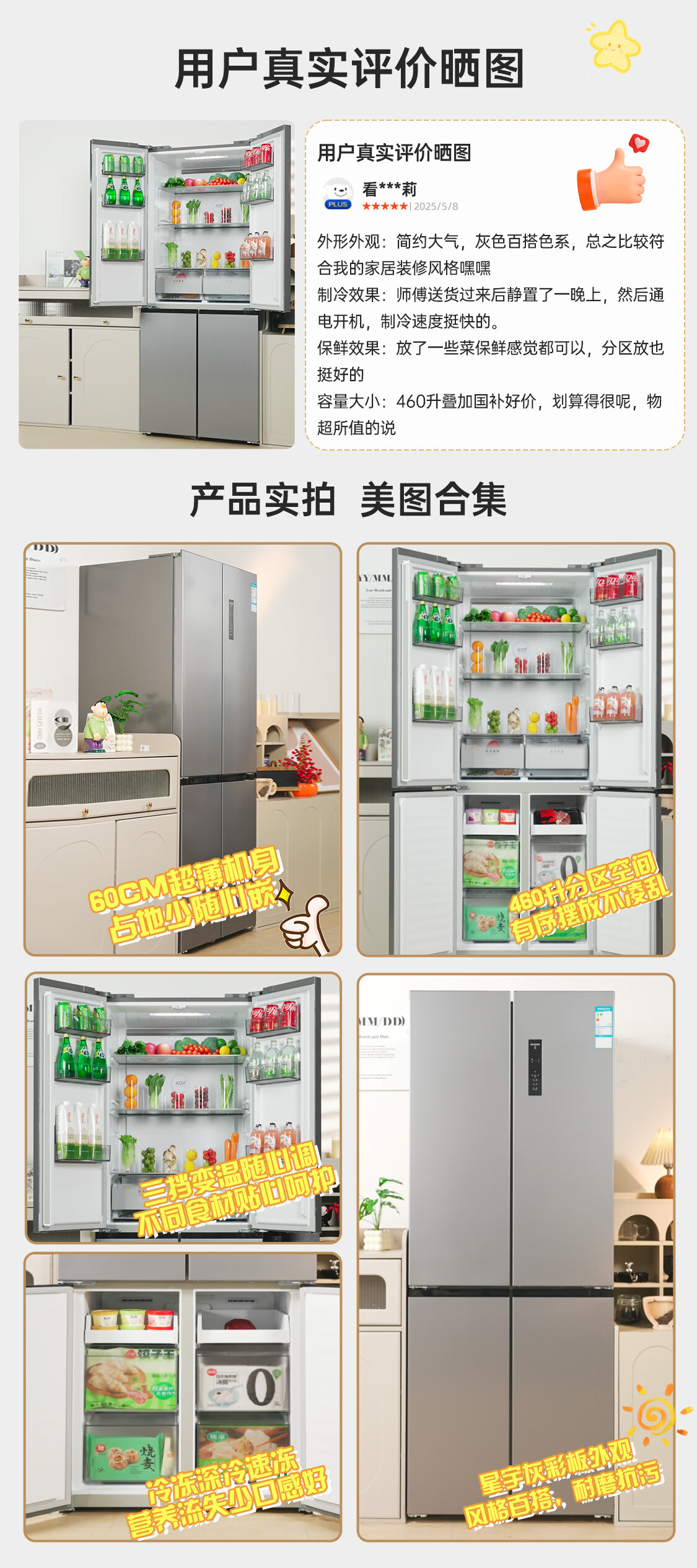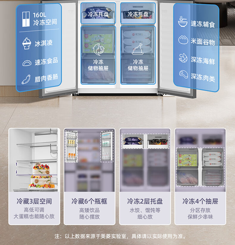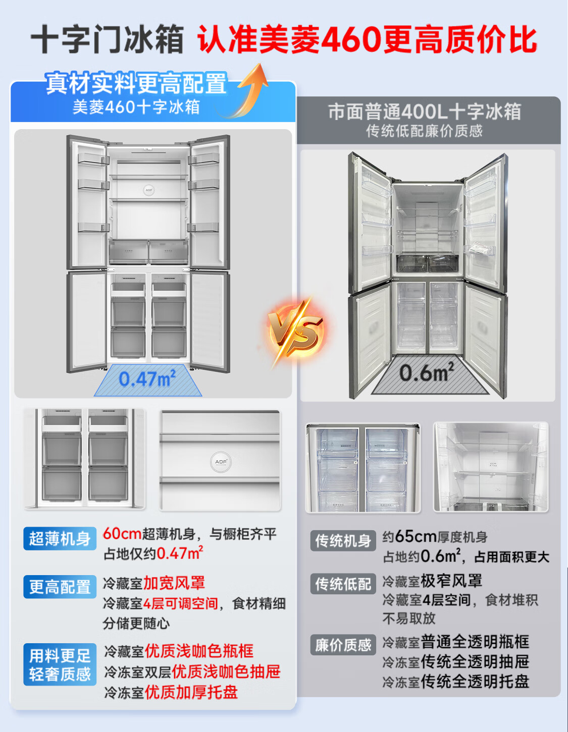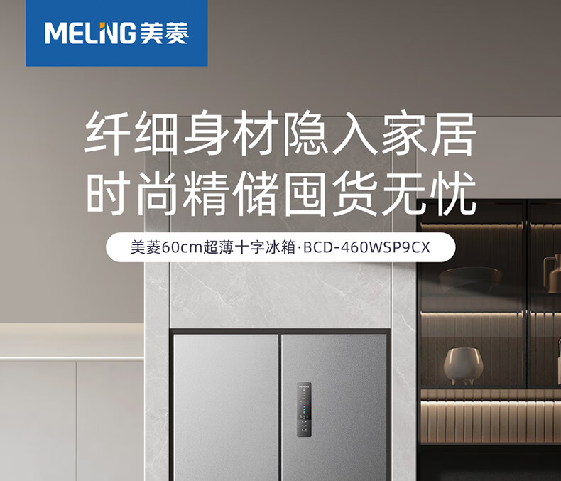 美菱收纳师460L十字门冰箱双变频一级能效家用超薄机身-32°深冷速冻风冷无霜BCD-460WSP9CX国家补贴
