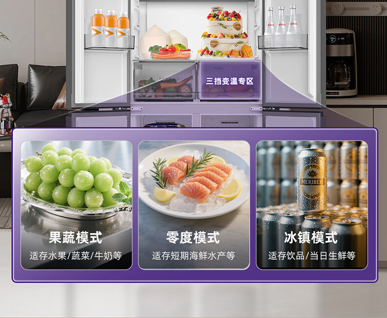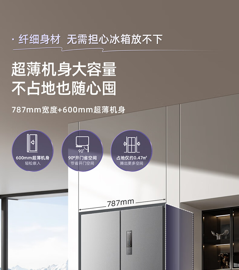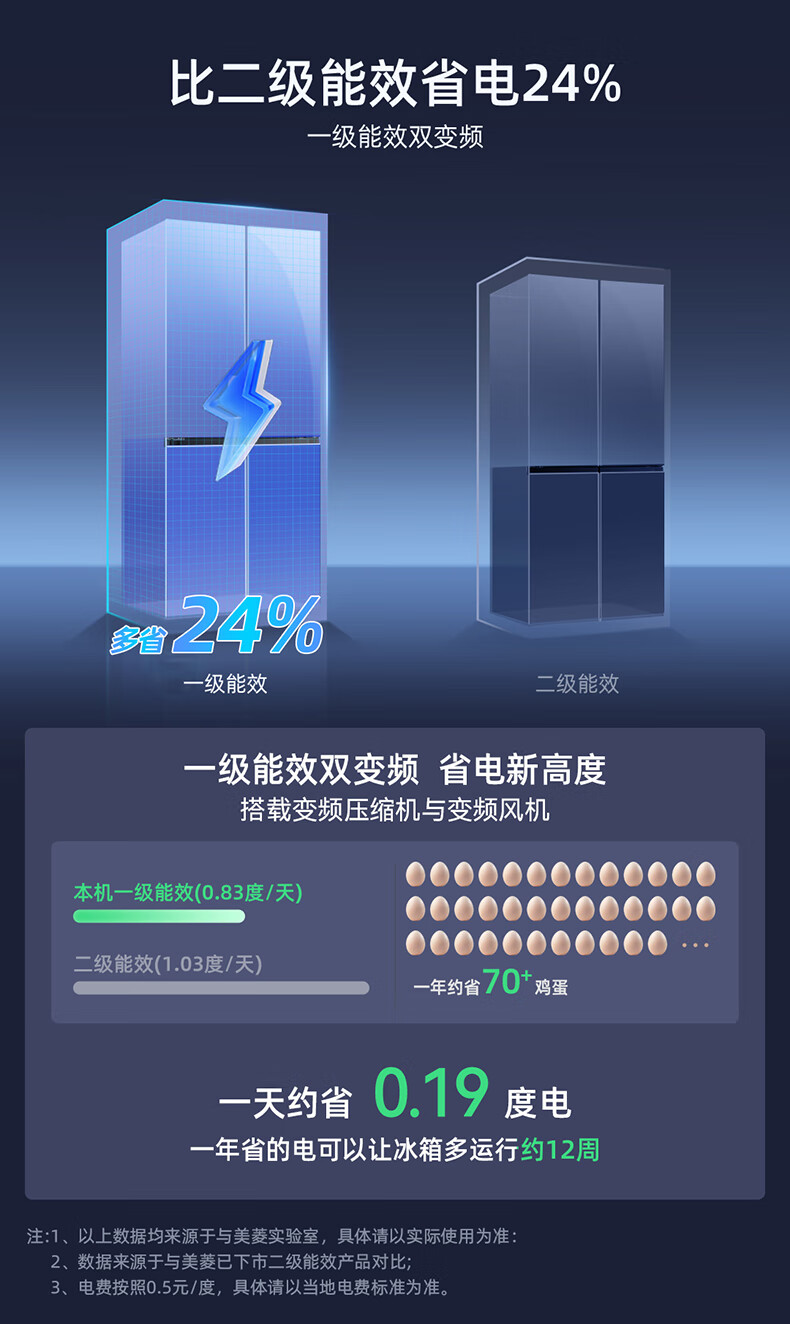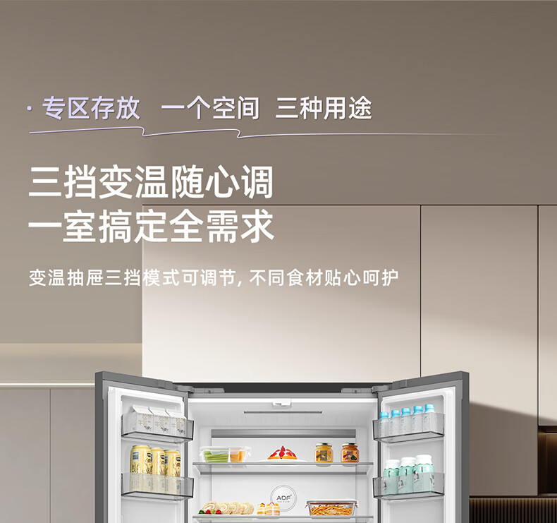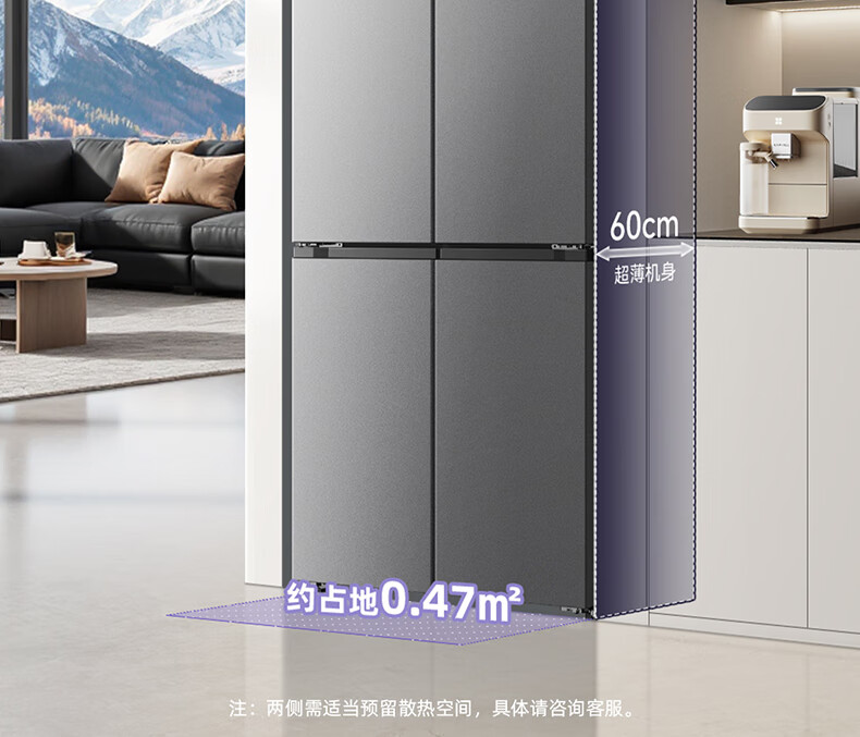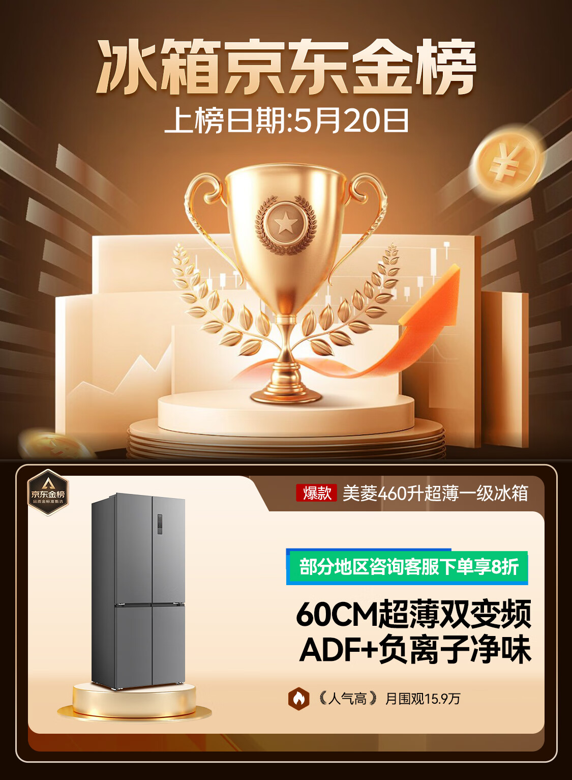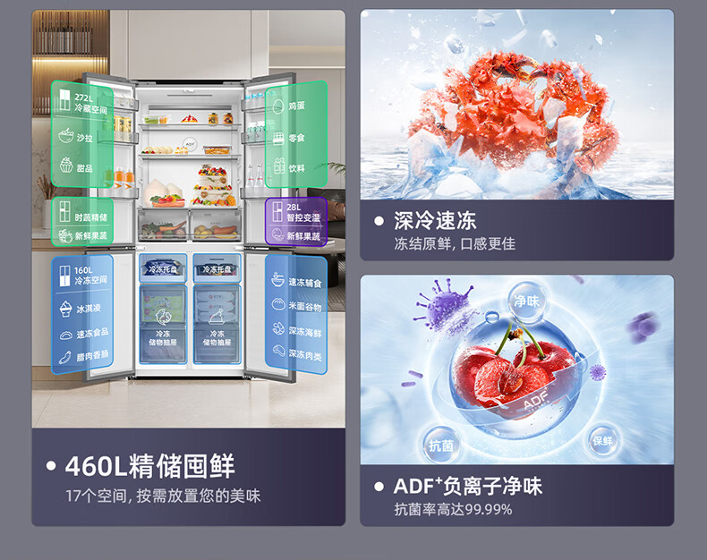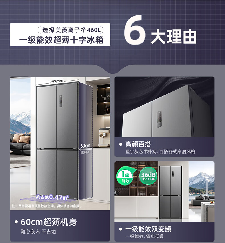 美菱收纳师460L十字门冰箱双变频一级能效家用超薄机身-32°深冷速冻风冷无霜BCD-460WSP9CX国家补贴