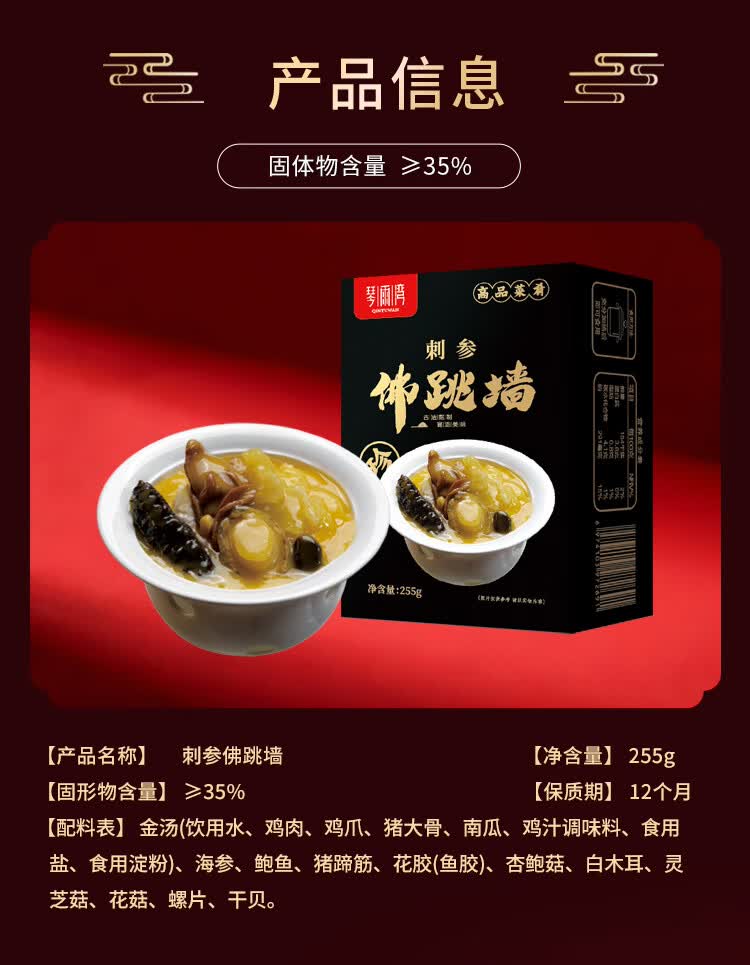 琴雨湾金汤佛跳墙海参鲍鱼方便菜食材预制生鲜送礼盒位餐厅酒店商用家用 【家庭装】刺参佛跳墙255g*3盒