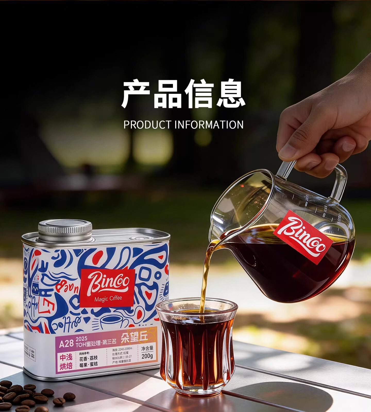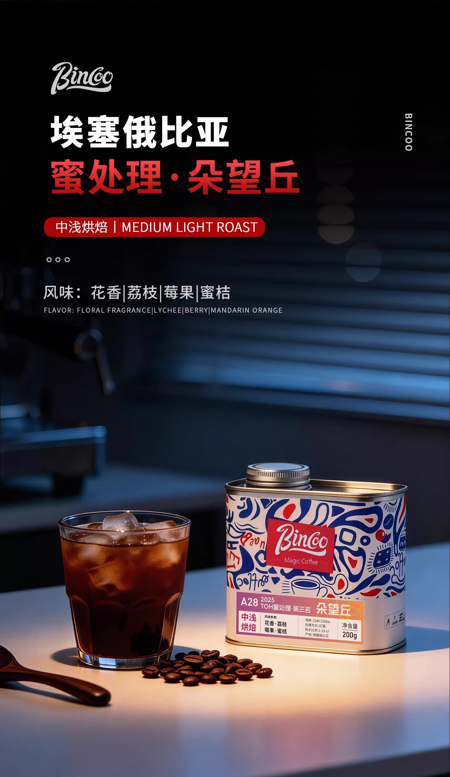 BincooTOH蜜处理·朵望丘A28手冲咖啡豆滴滤埃塞尔比亚中浅烘焙 100g罐装
