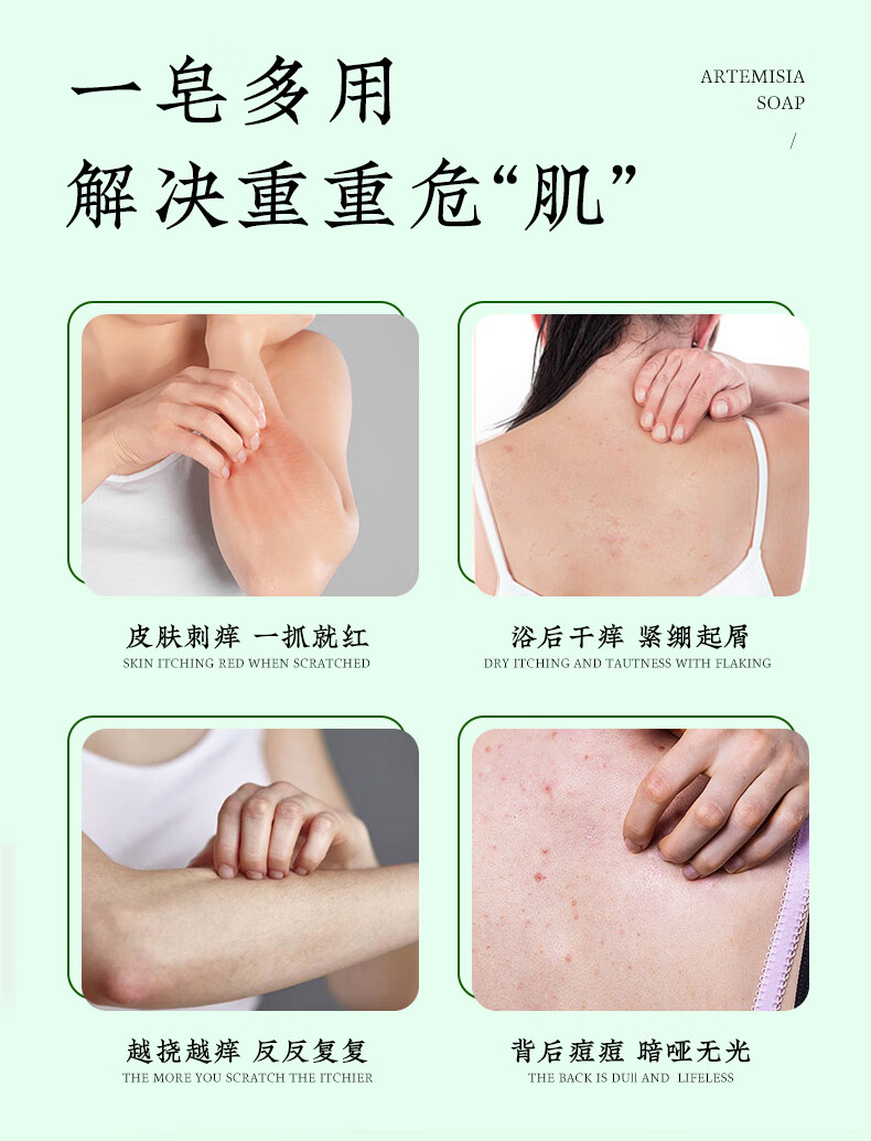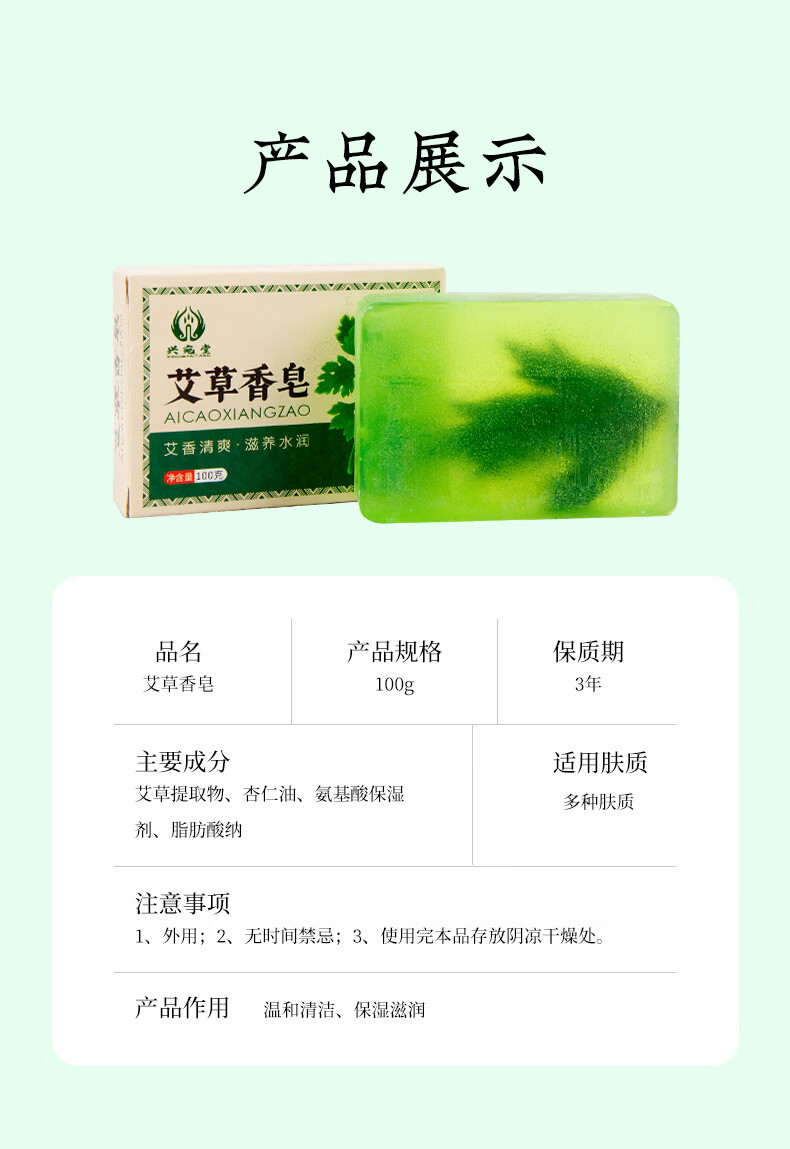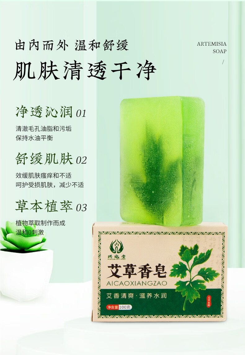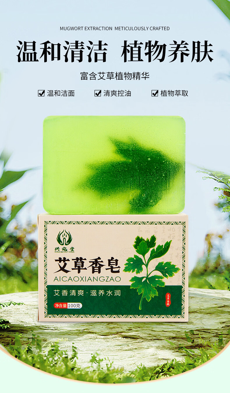 兴宛堂艾草香皂正品官方品牌女男士洗脸沐浴洗澡洁面专用艾叶精油皂肥皂 【清润降燥】艾草药皂5块(送起泡网)