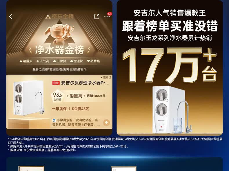 安吉尔家用净水器玉龙Pro1000GSE反渗透厨下直饮机5年RO膜直饮净水机 J3673-ROC120 b型