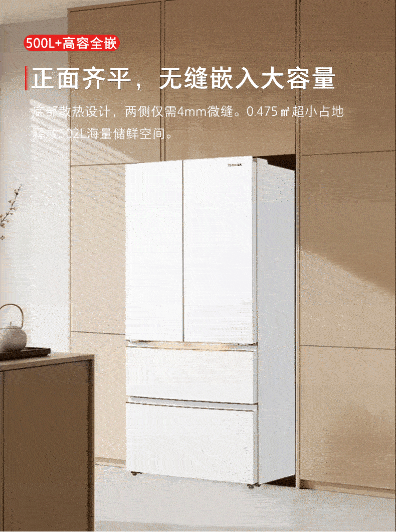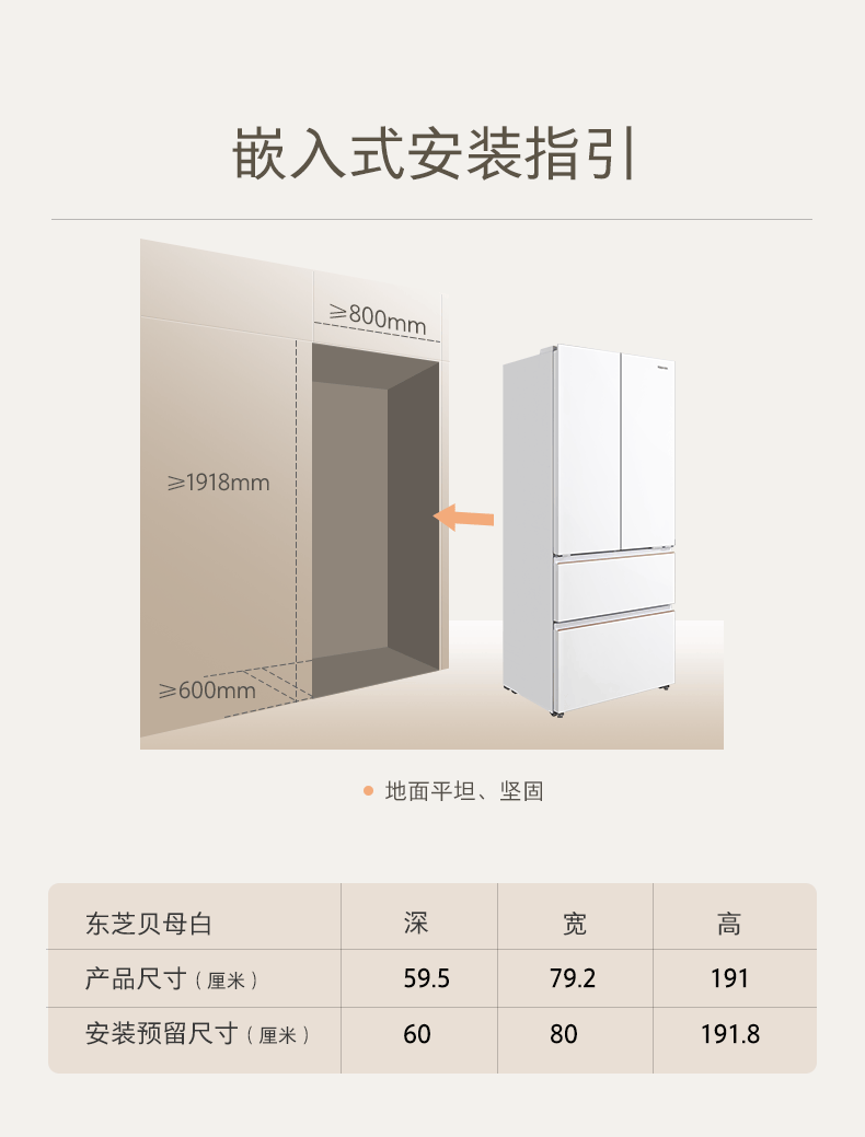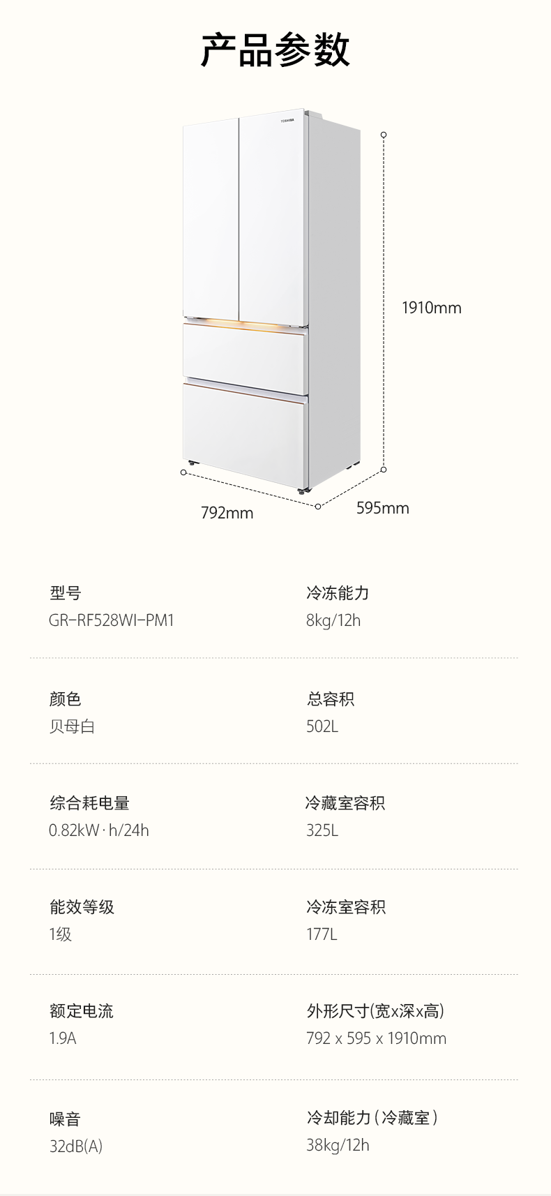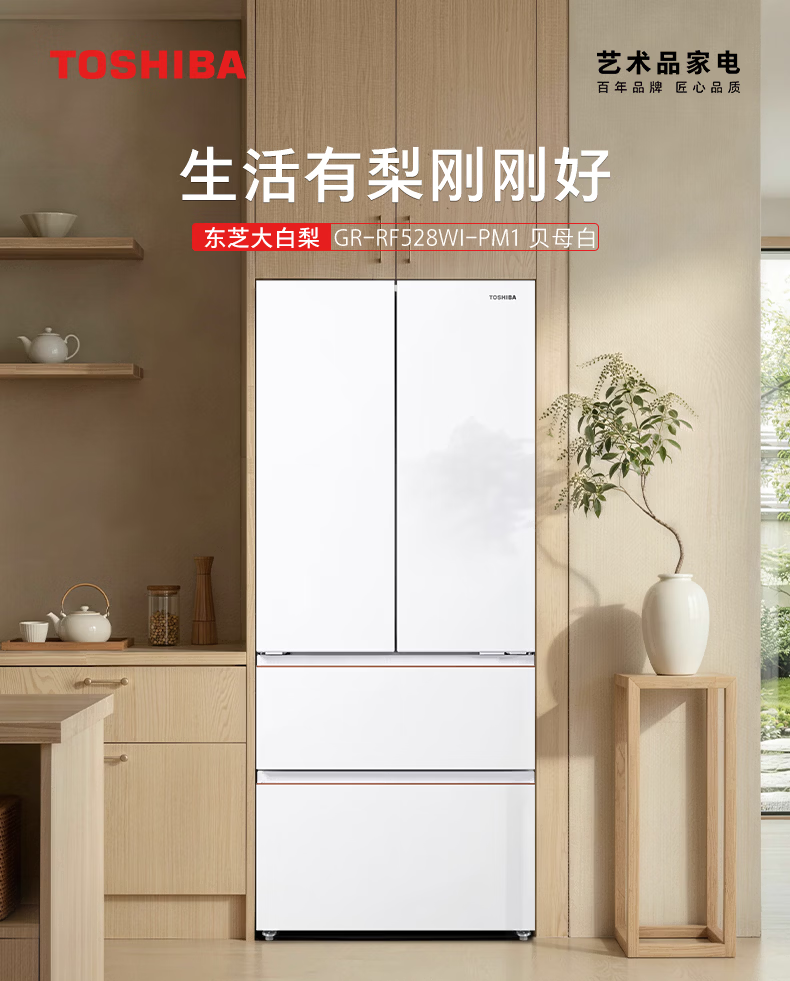 东芝(TOSHIBA)大白梨502L法式多门高容零嵌入式528超薄制冰双系统大容量一级能效节能无霜家用双开门保鲜电冰箱 GR-RF528WI-PM1 贝母白