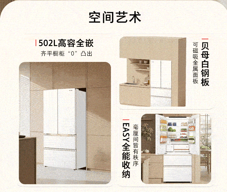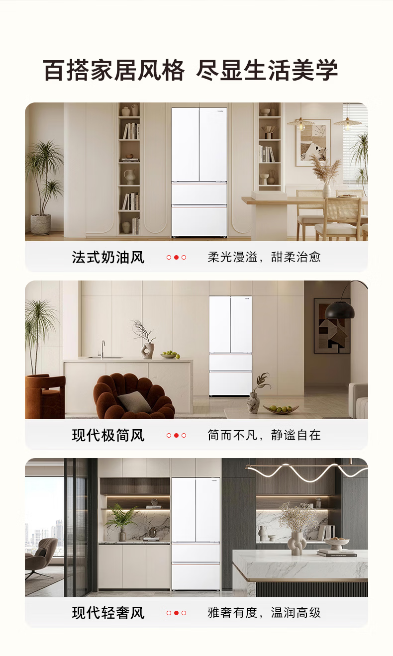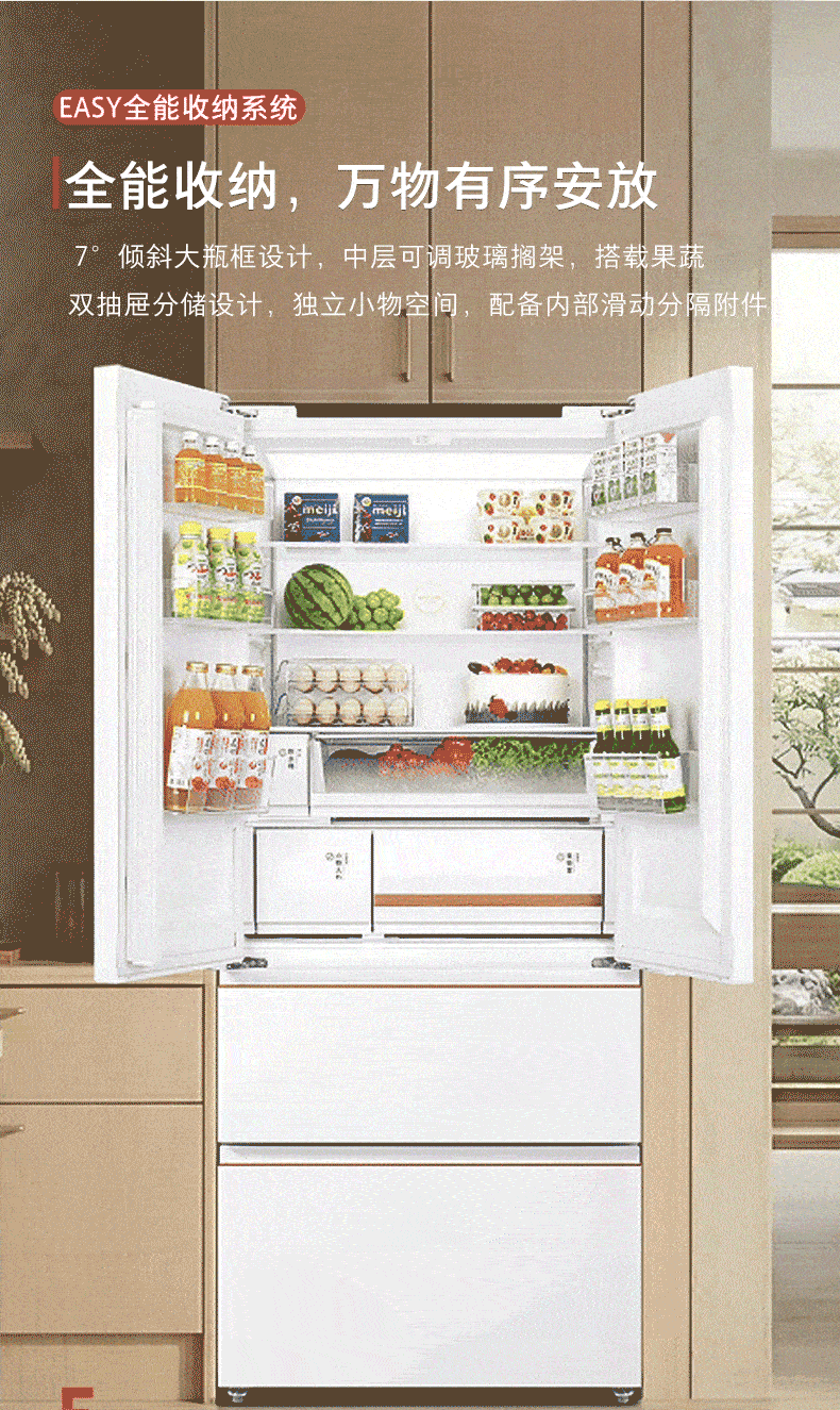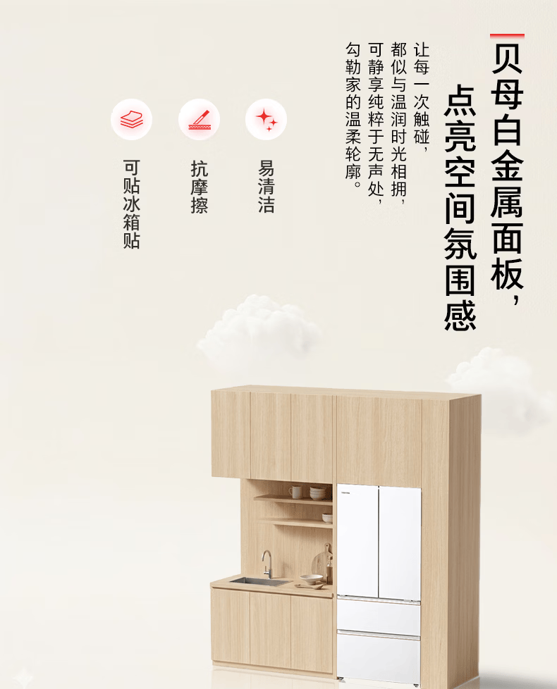 东芝(TOSHIBA)大白梨502L法式多门高容零嵌入式528超薄制冰双系统大容量一级能效节能无霜家用双开门保鲜电冰箱 GR-RF528WI-PM1 贝母白