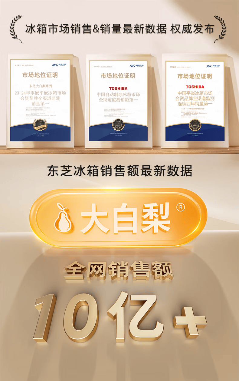 东芝(TOSHIBA)大白梨506L十字门冰箱529雾化保鲜4.0双系统洁净制冰零嵌入大容量家用变频GR-RF529WI-PM1补贴