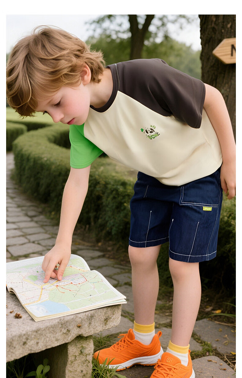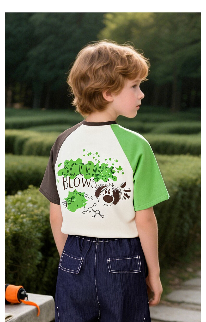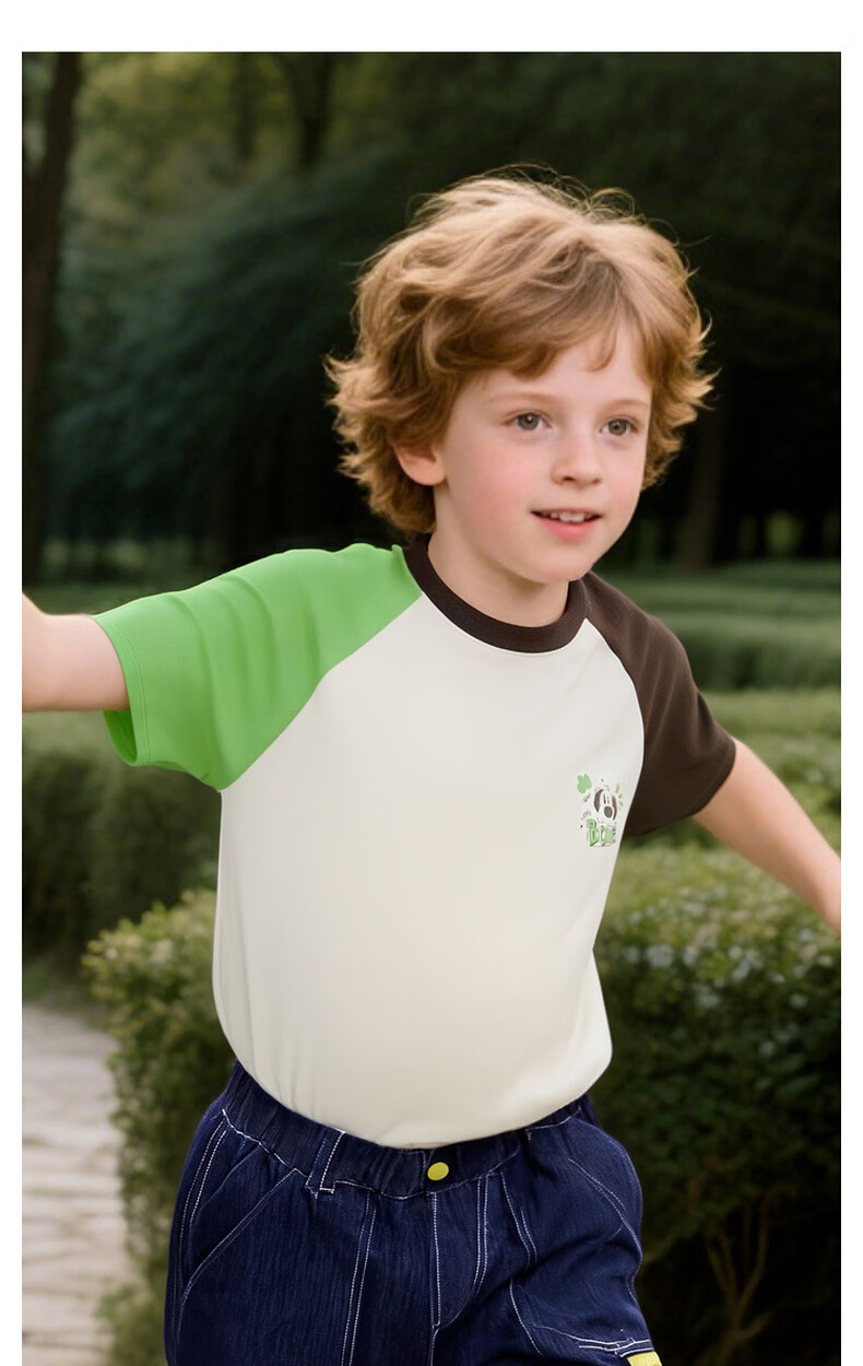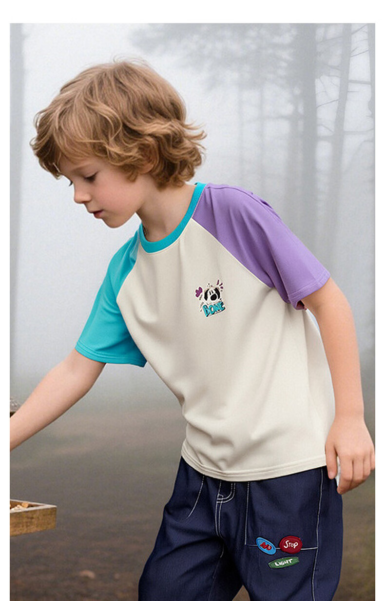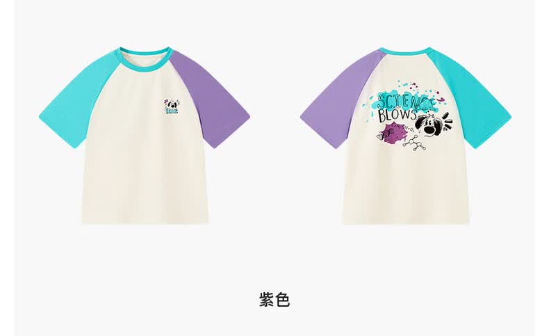 马骑顿(MQD)男大童夏季新品学院风撞色插肩袖卡通短袖上衣亲肤T恤跑步 紫色 150