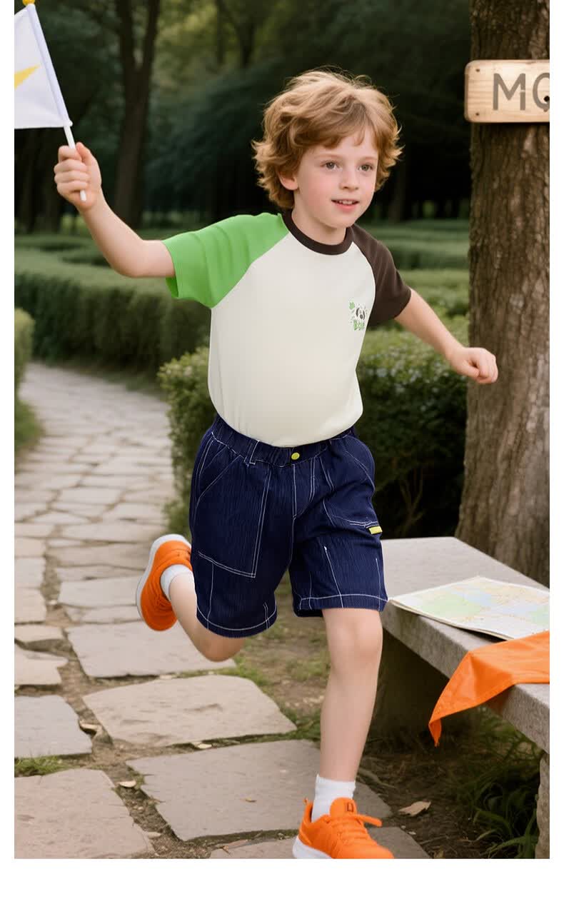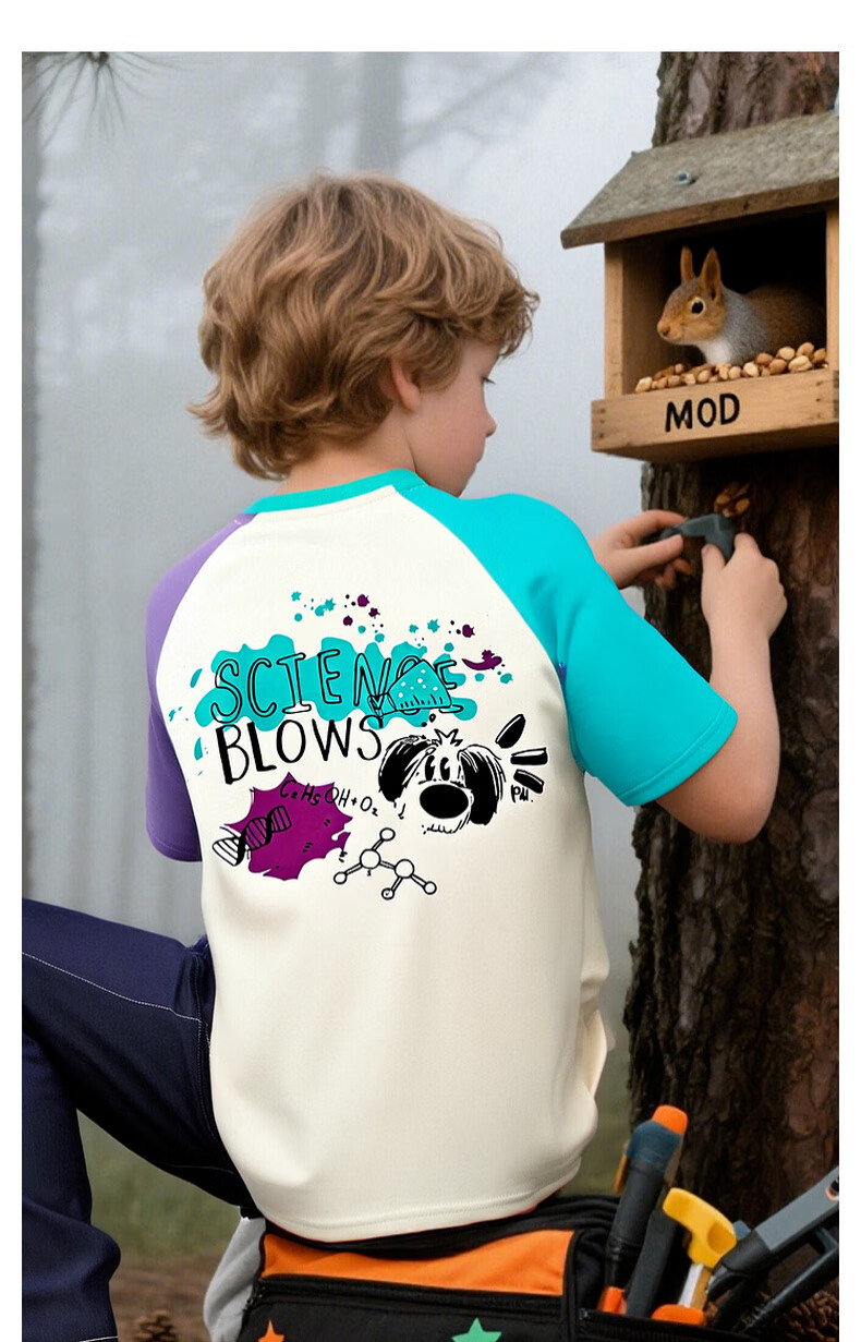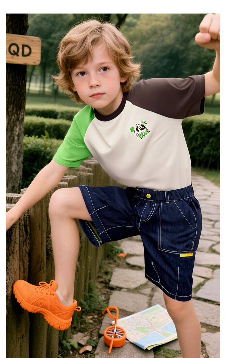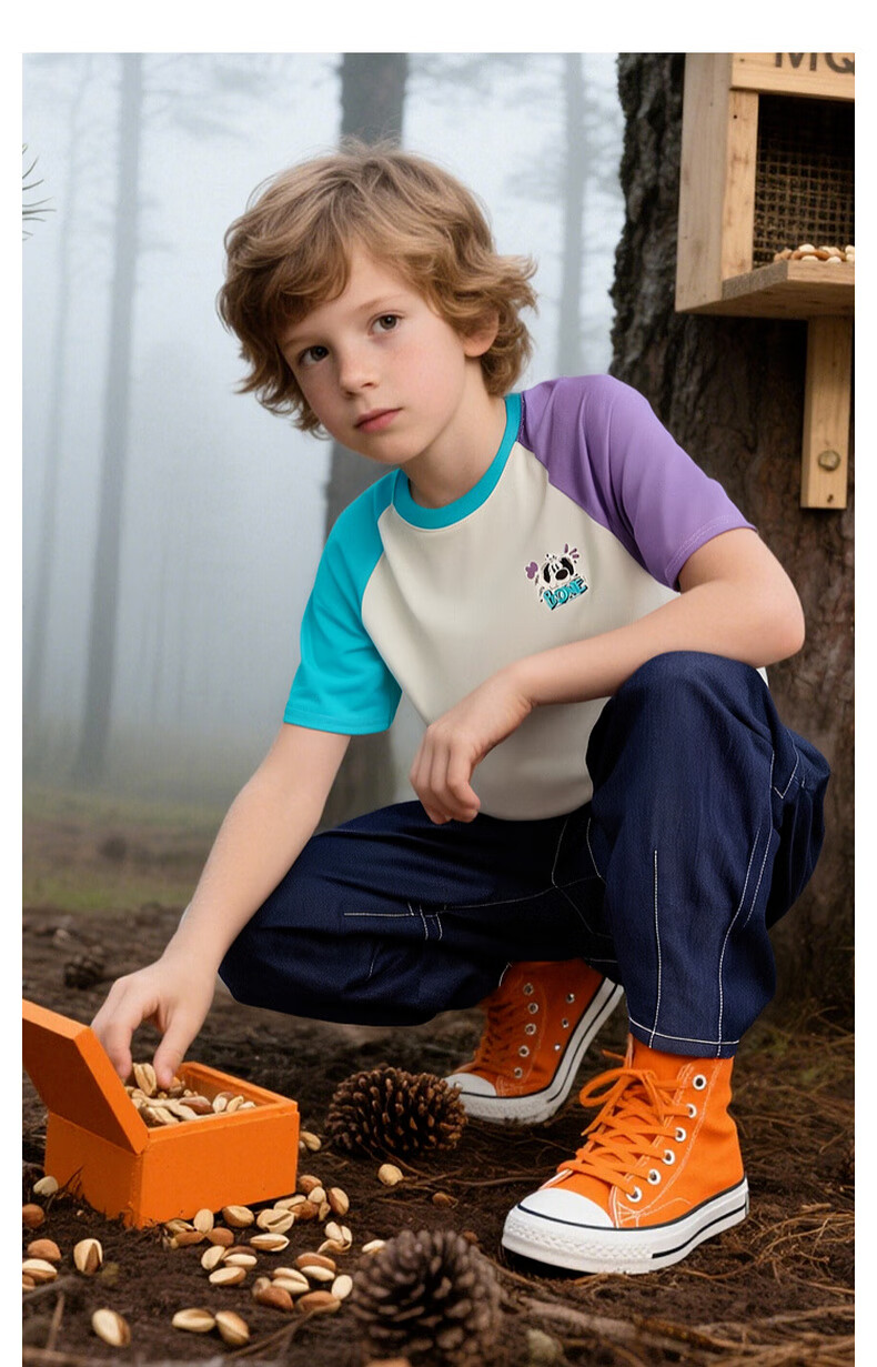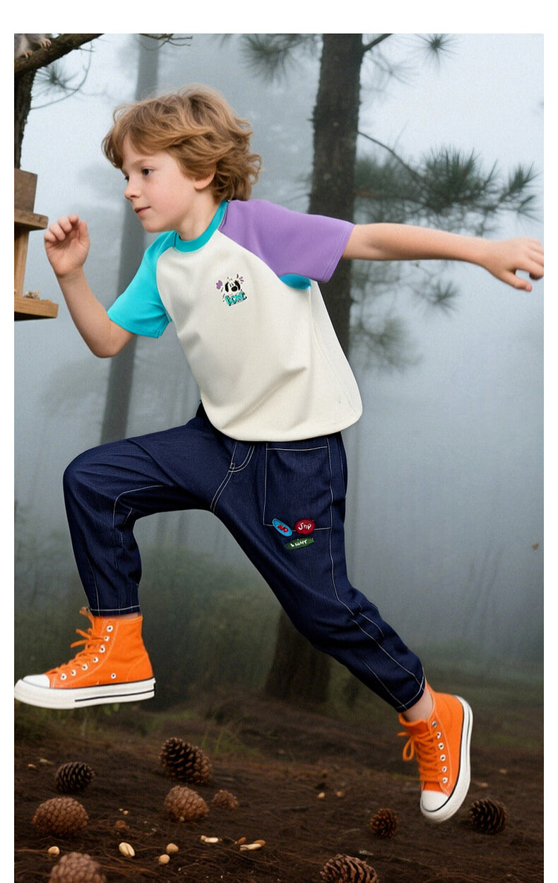 马骑顿(MQD)男大童夏季新品学院风撞色插肩袖卡通短袖上衣亲肤T恤跑步 紫色 150