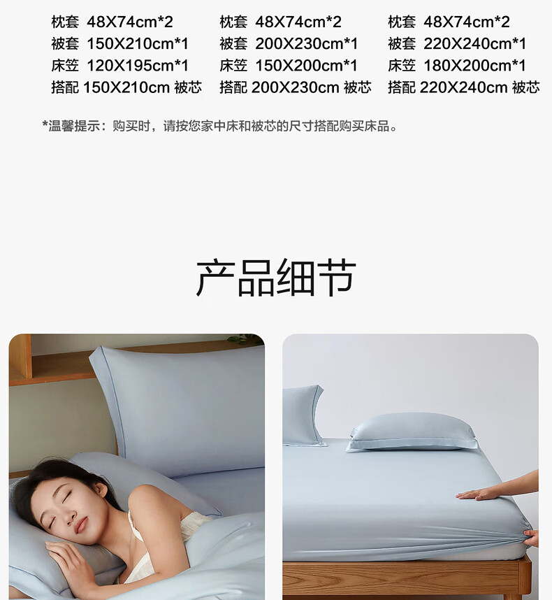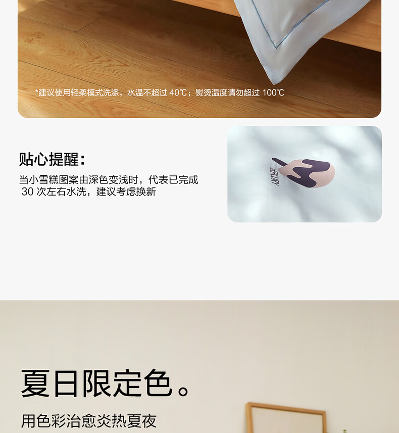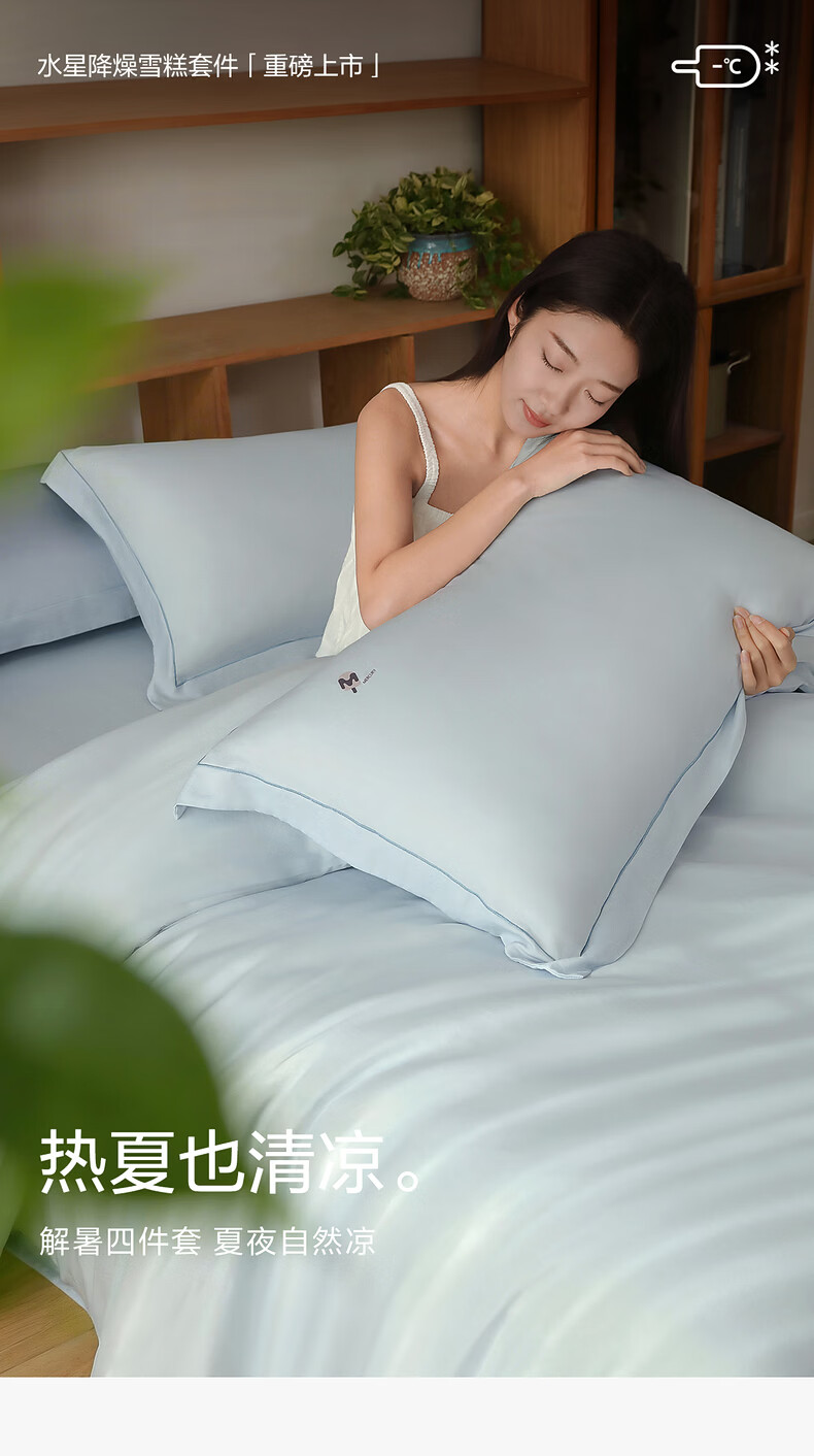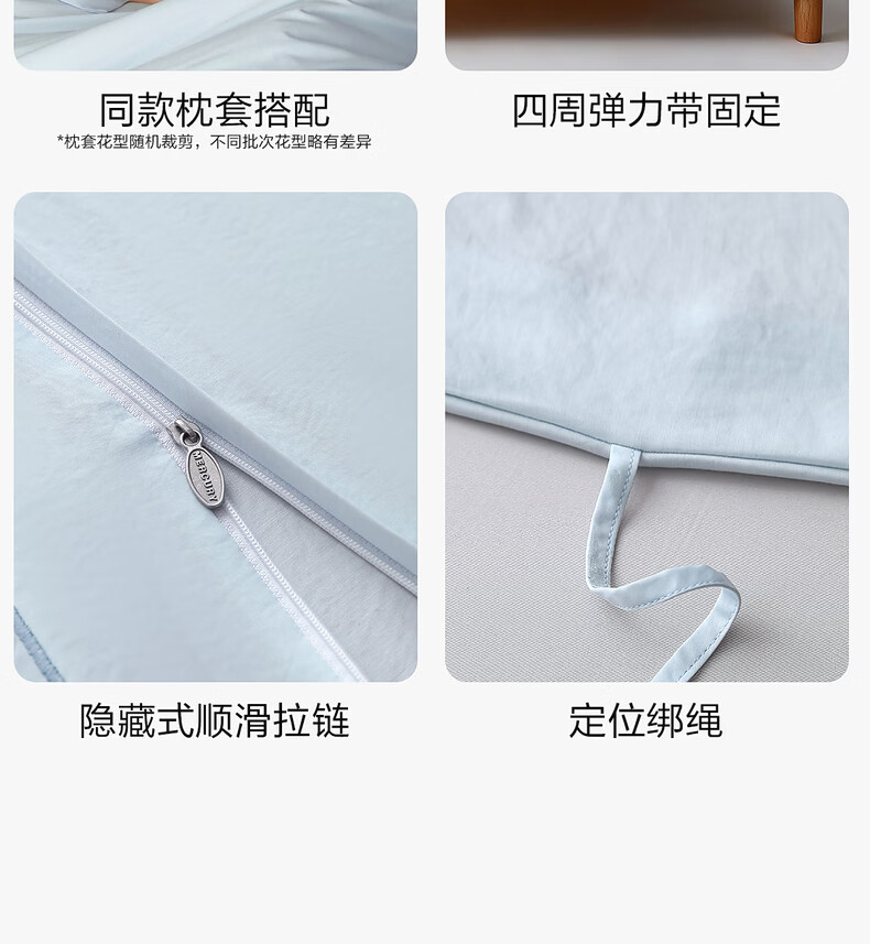 水星家纺床上用品降噪雪糕四件套A类可机洗被套防滑易套取床笠春夏新品1.8床-蓝