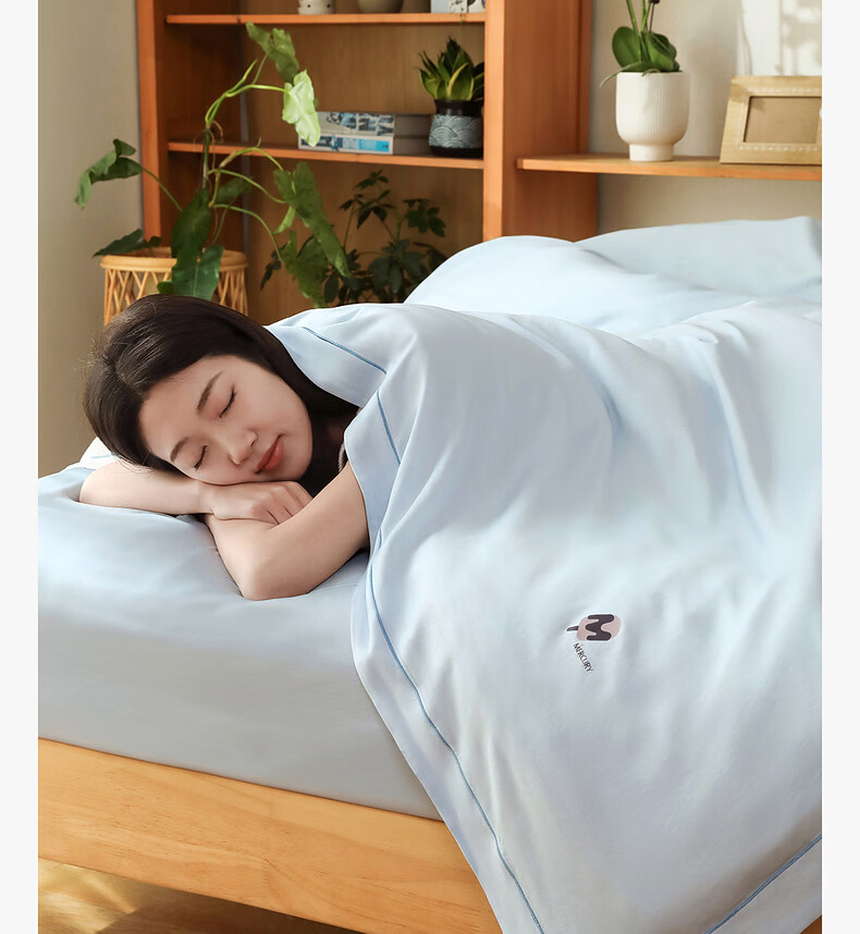 猫人(MiiOW)A类凉感冰丝夏凉被空调被子夏季可机洗裸睡夏被宿舍单人凉感被 蓝灰【A类亲肤凉感冰丝面料】 150x200cm-单夏被【裸睡级/可水洗机洗】