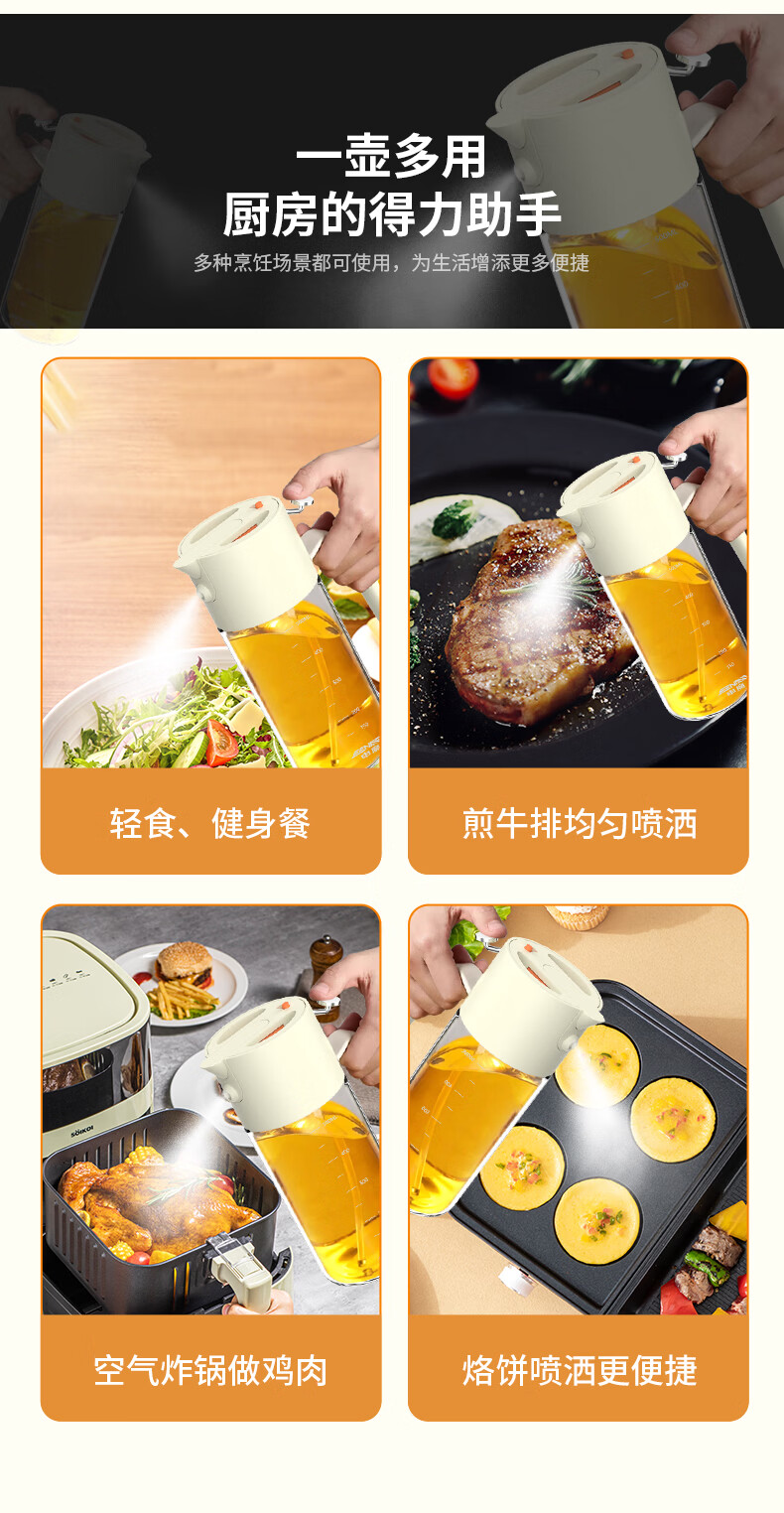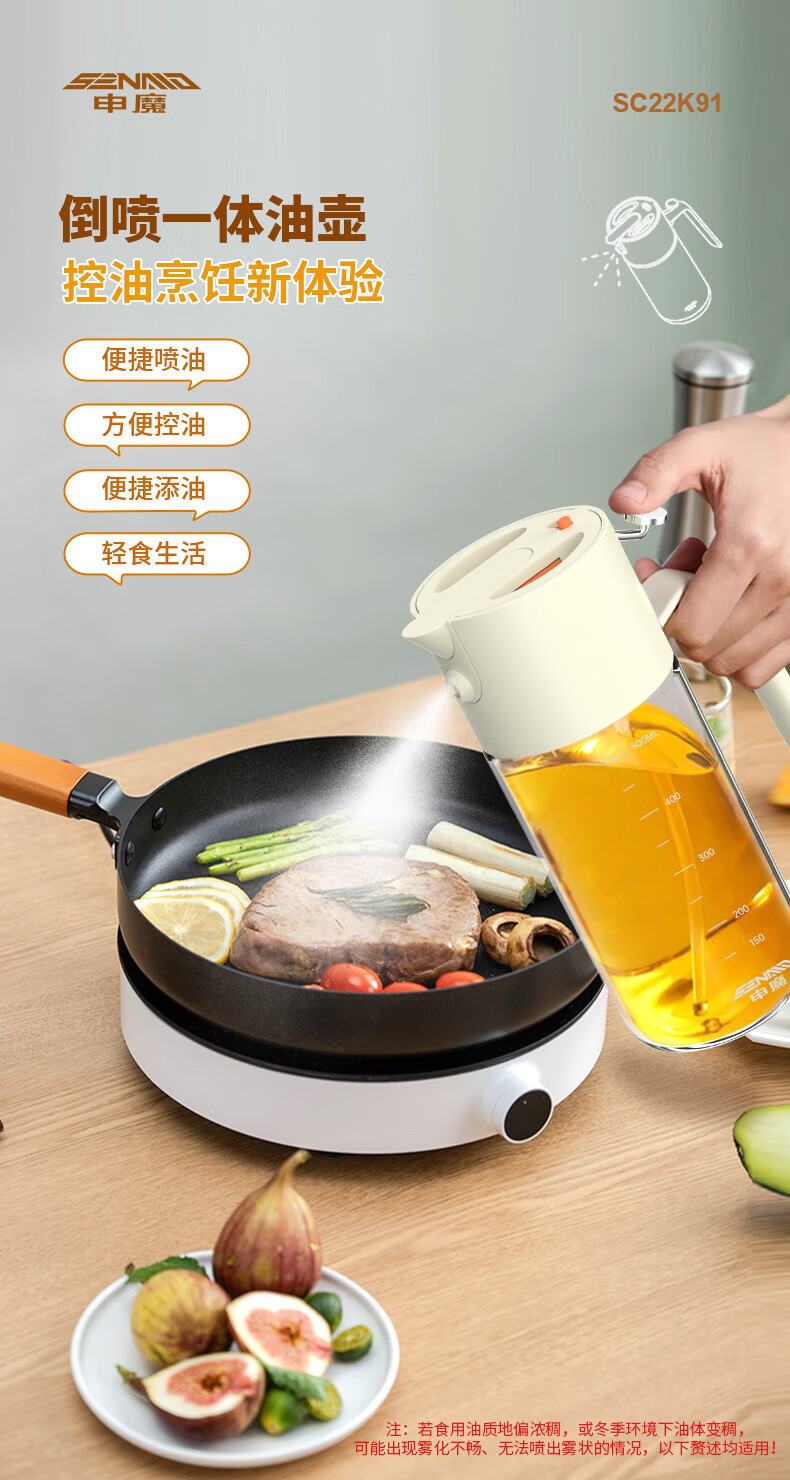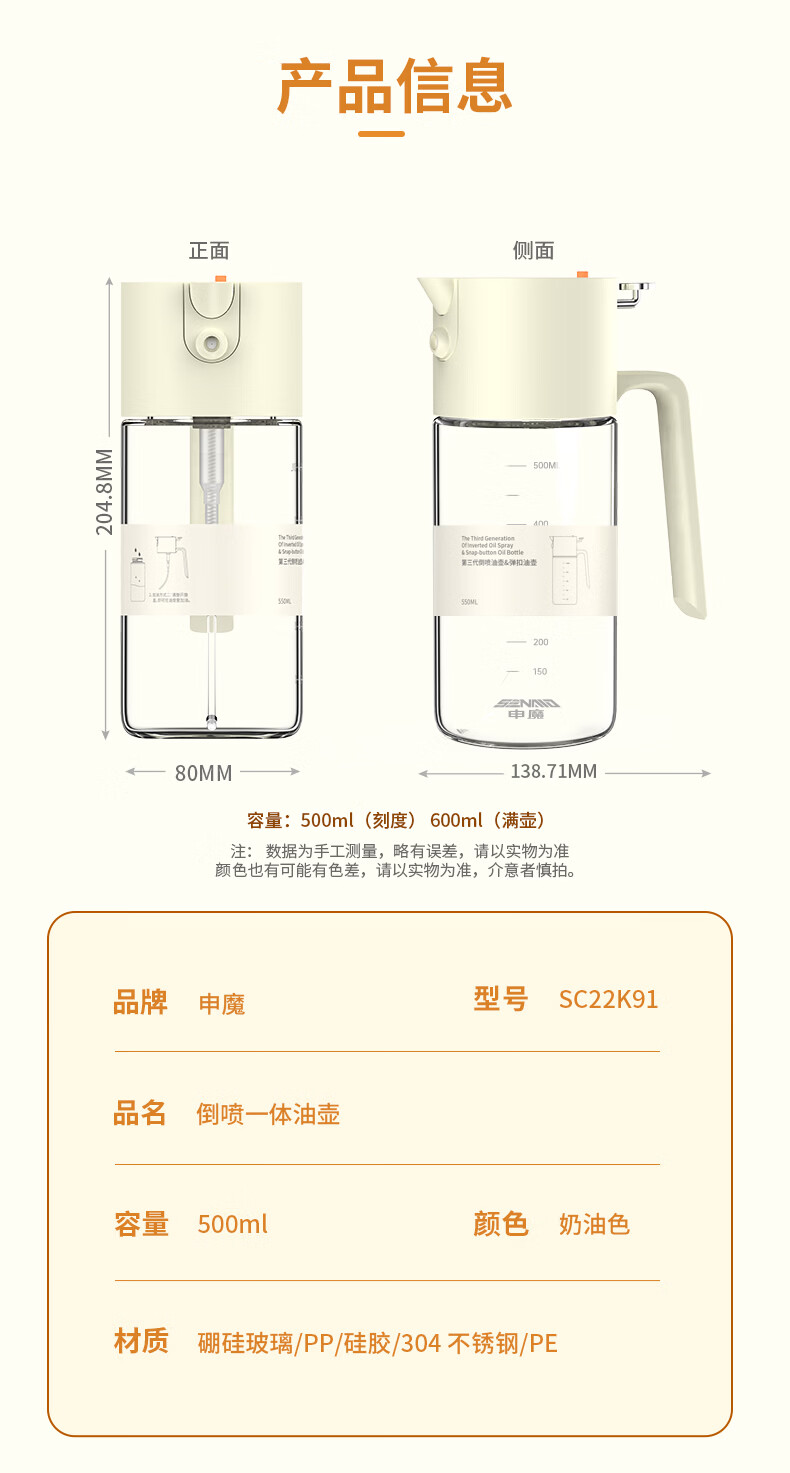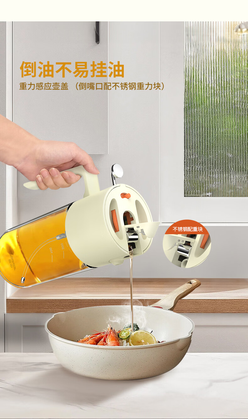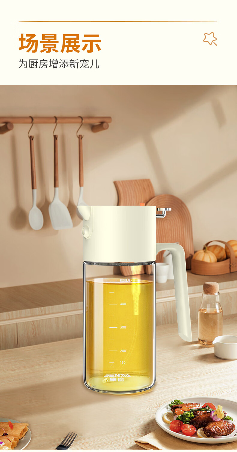 申魔倒油喷油一体食用油玻璃油壶厨房家用不易挂油 米色 倒喷一体不易挂油油壶 SC22K91