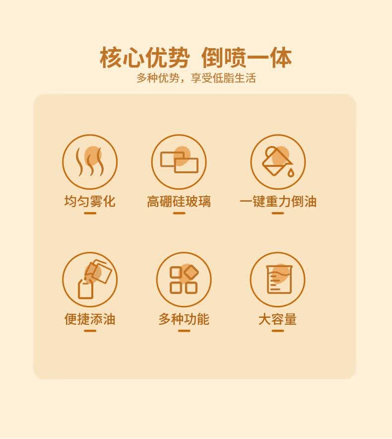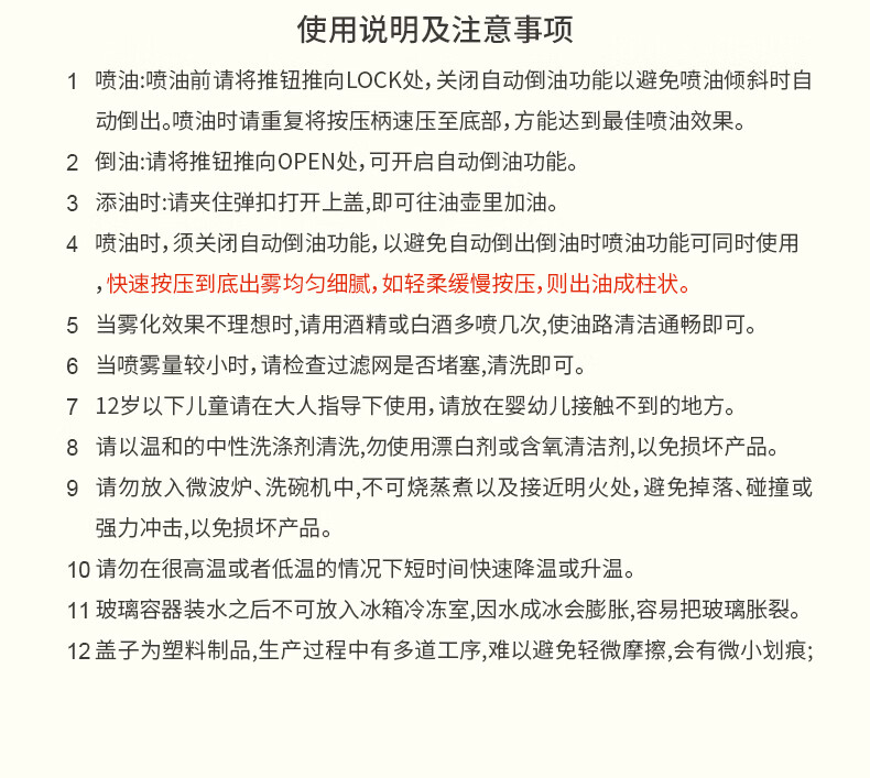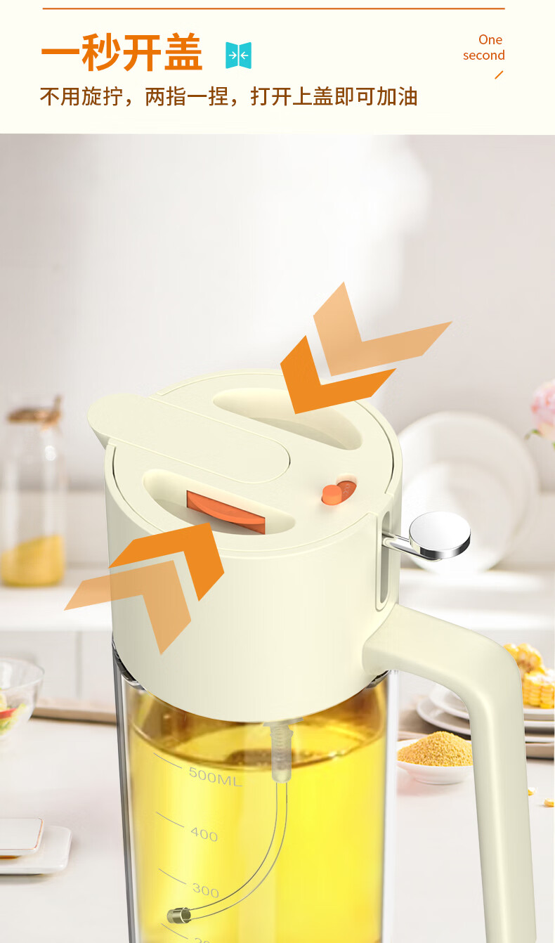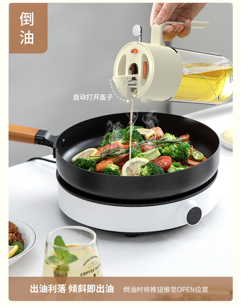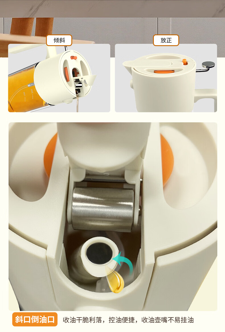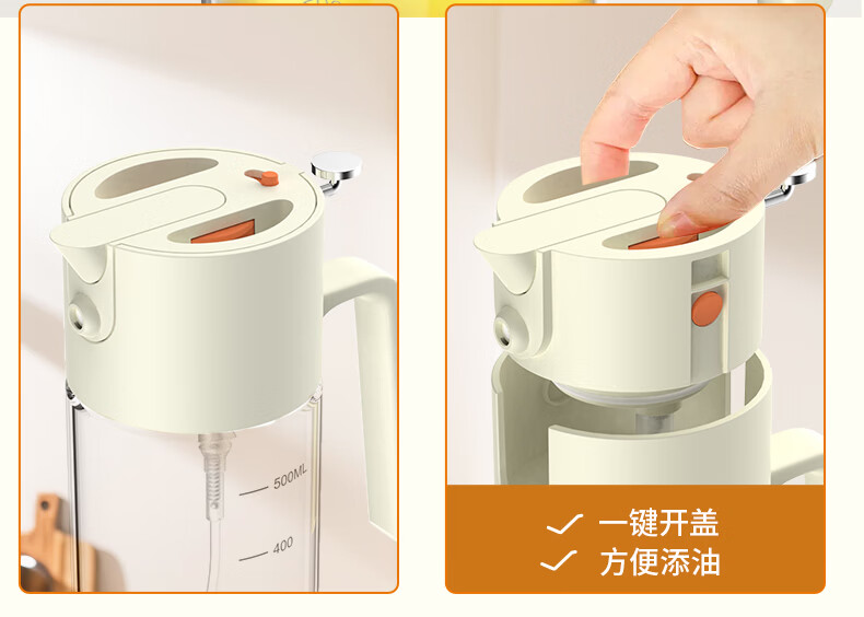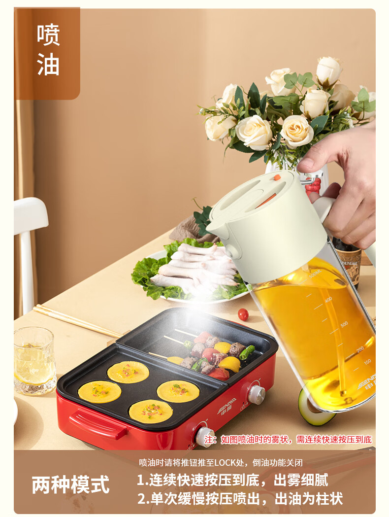 申魔倒油喷油一体食用油玻璃油壶厨房家用不易挂油 米色 倒喷一体不易挂油油壶 SC22K91