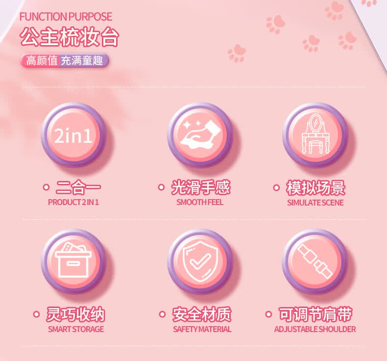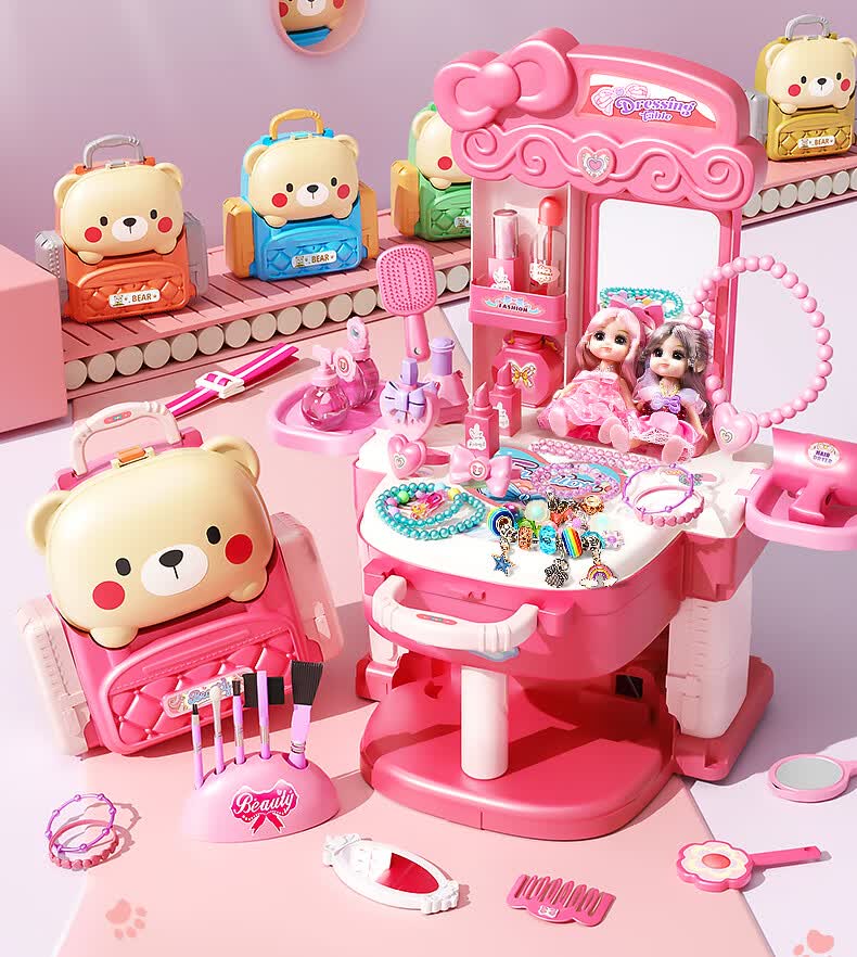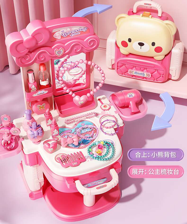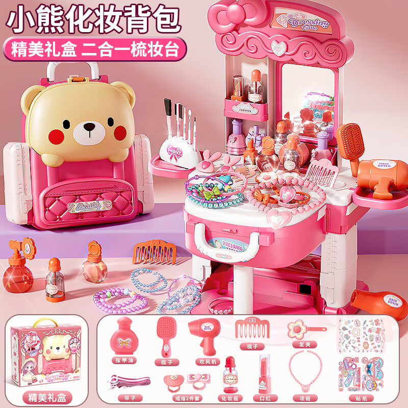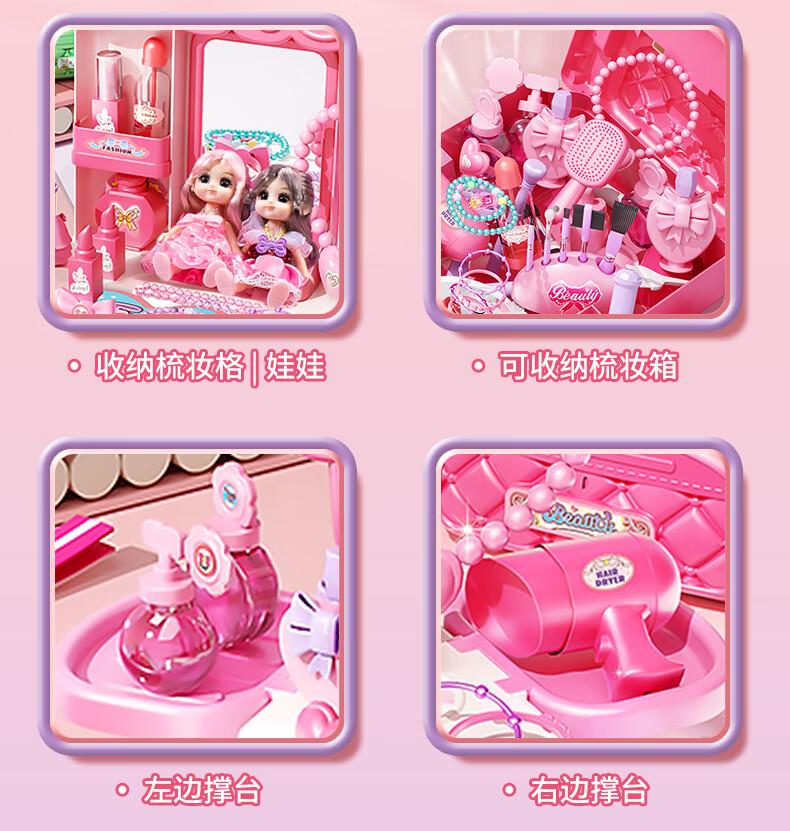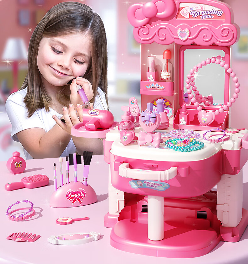 喜迪奇儿童女孩过家家梳妆台小公主玩具仿真化妆首饰盒1-3-6岁新年礼物
