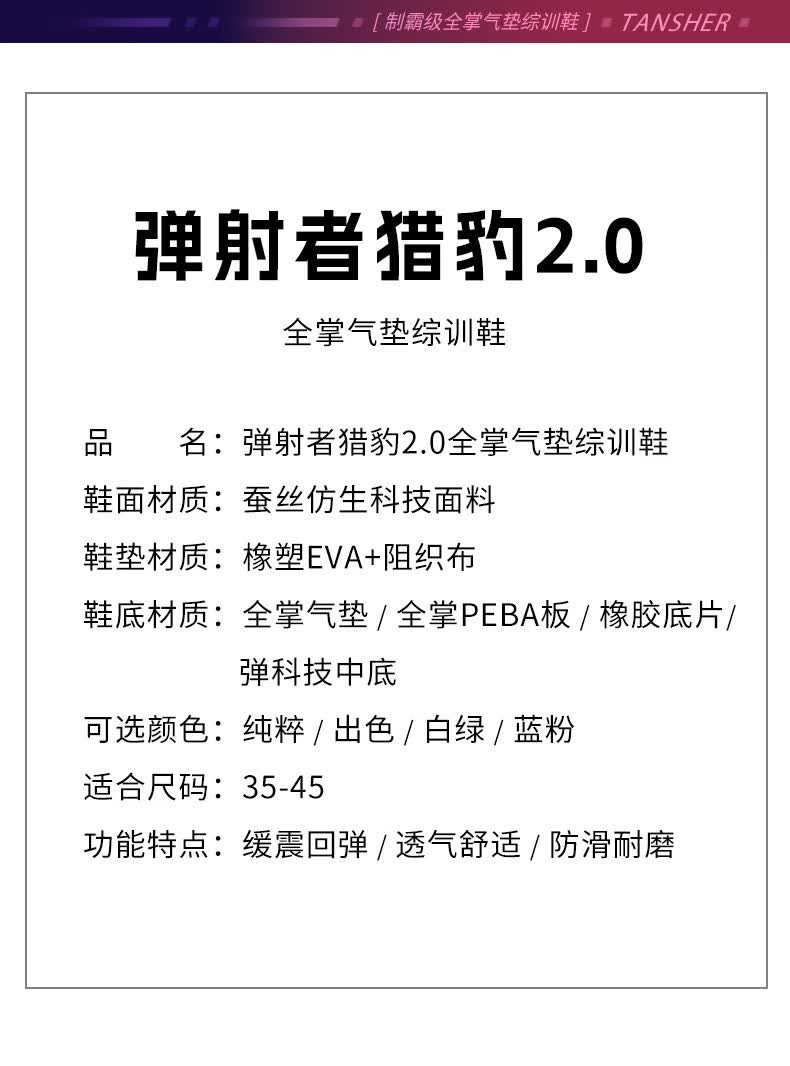 TANSHEZHE弹射者运动鞋猎豹2.0全掌气垫竞速跑鞋中考体测跑鞋透气跑步鞋 兰白-(纯粹)-猎豹2.0 【建议拍大一码】 38