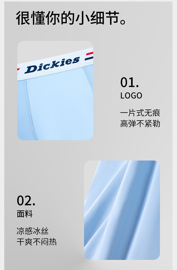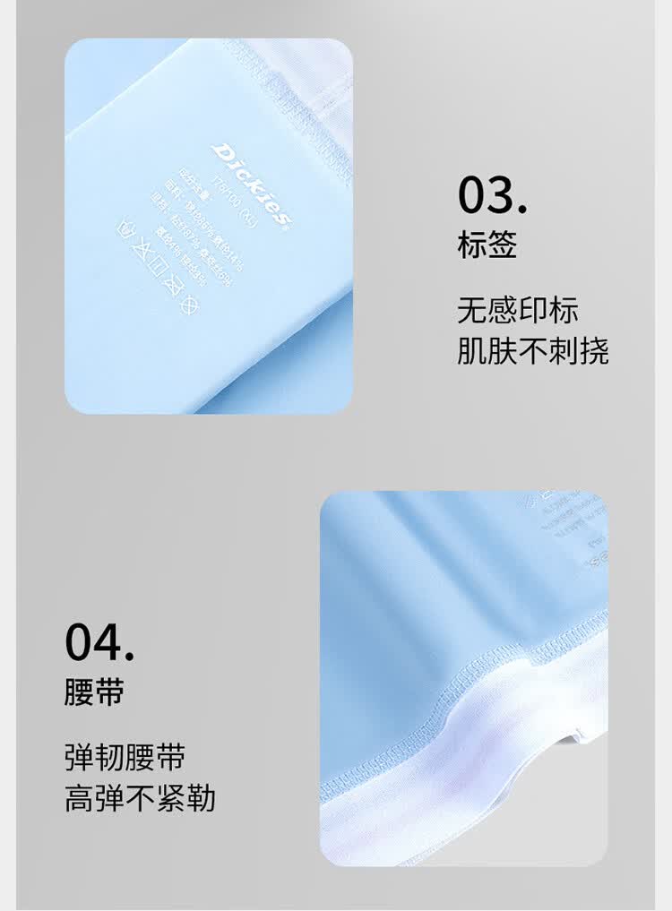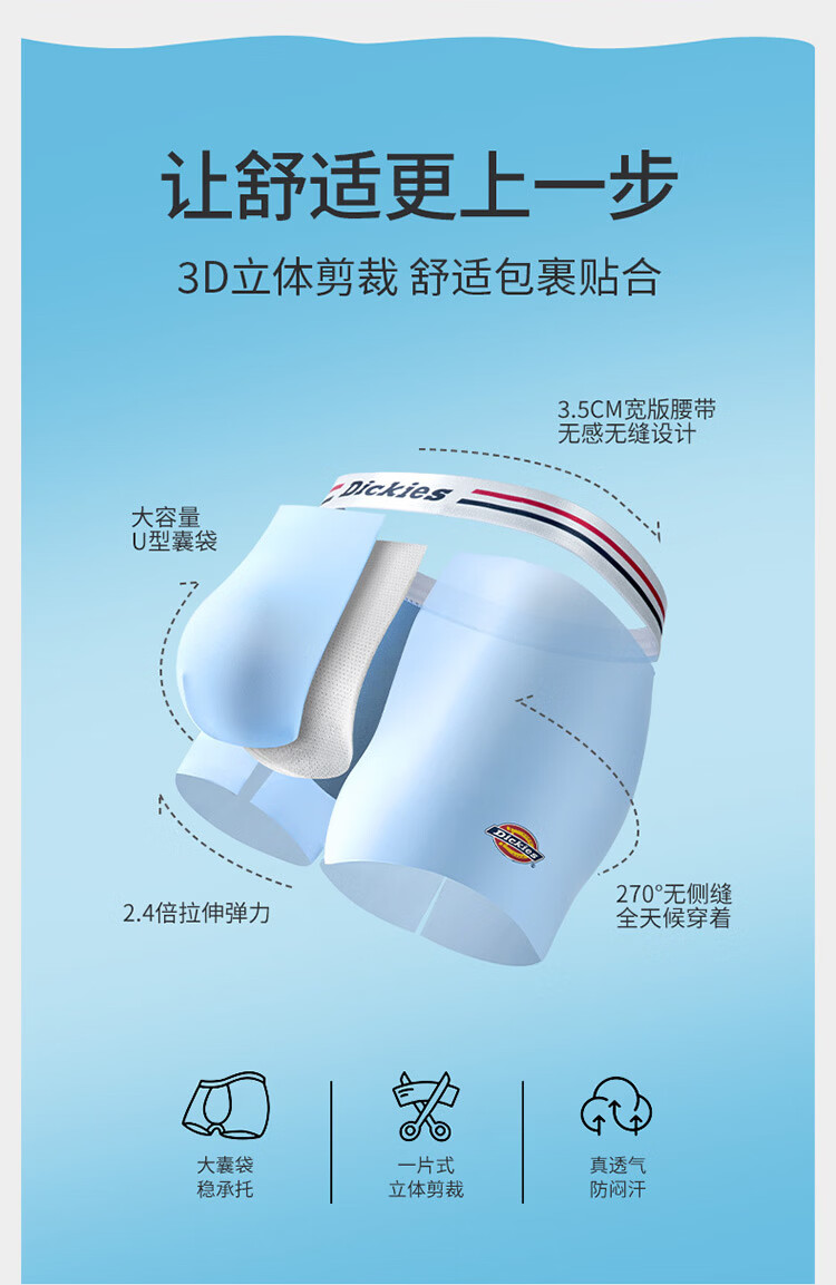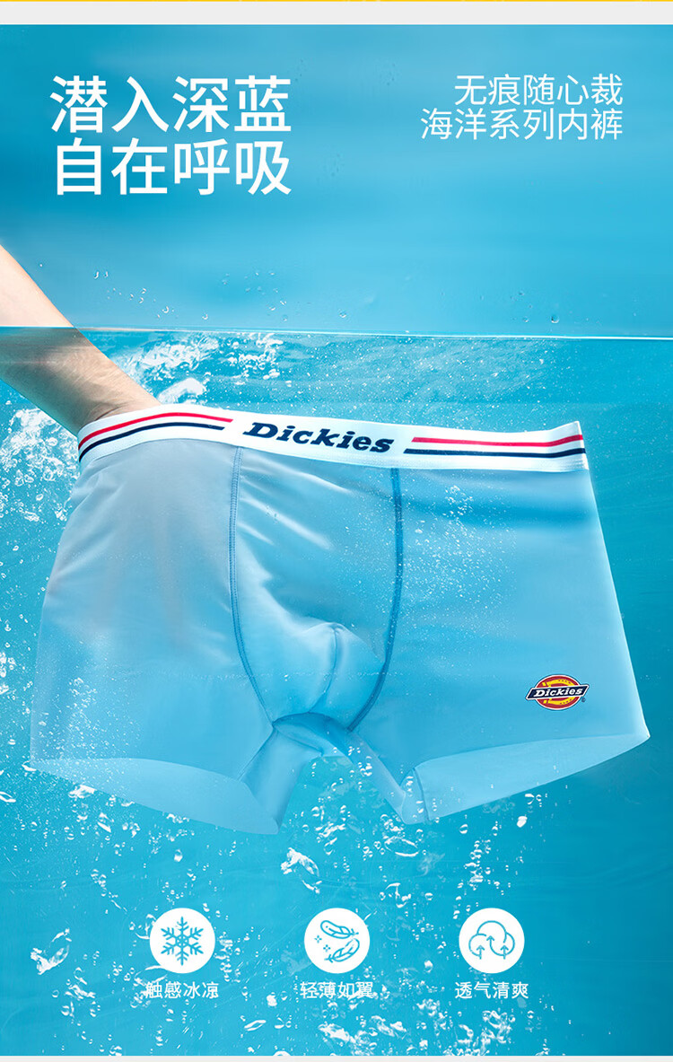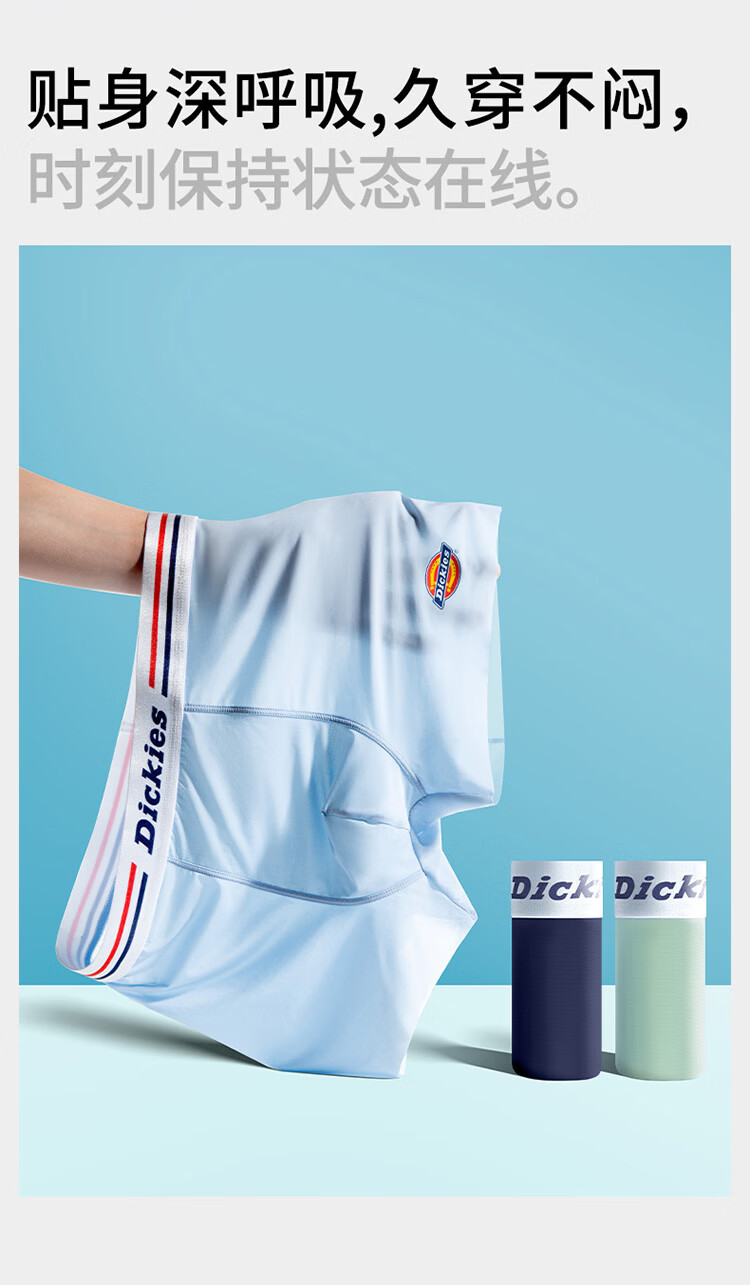 Dickies【10A抗菌】冰丝内裤男士透气夏季运动平角超薄款裸感大码四角裤 浅绿色3条装 3条 4XL