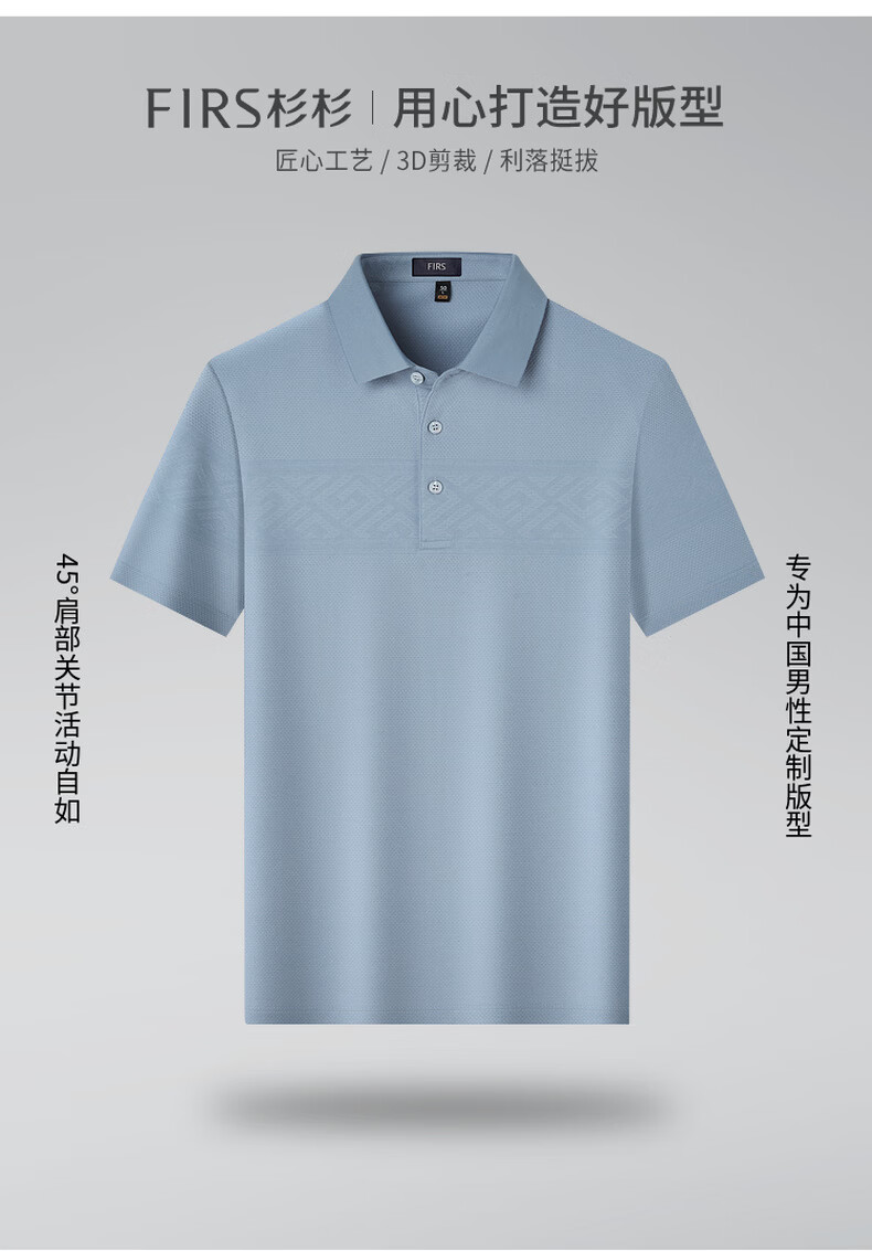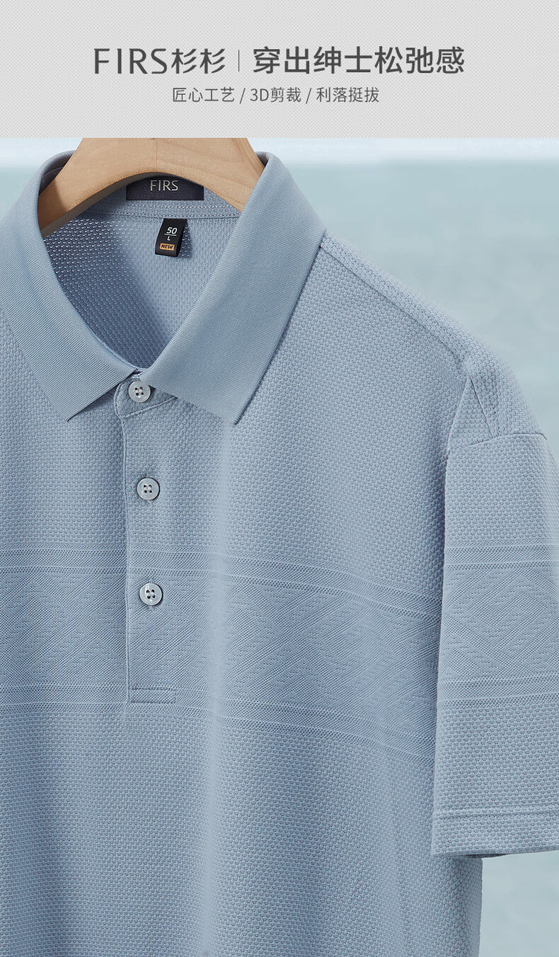 杉杉【含莫代尔&透气珠地】舒适透气城市运动休闲男短袖POLO衫 天青蓝 M