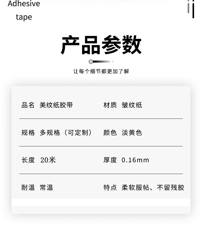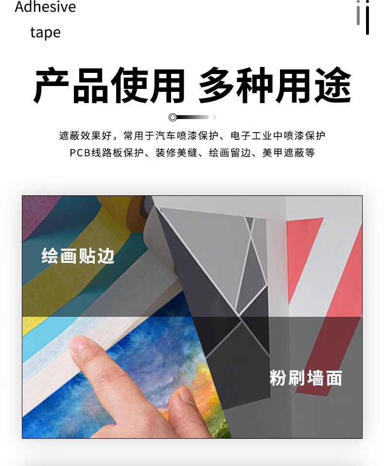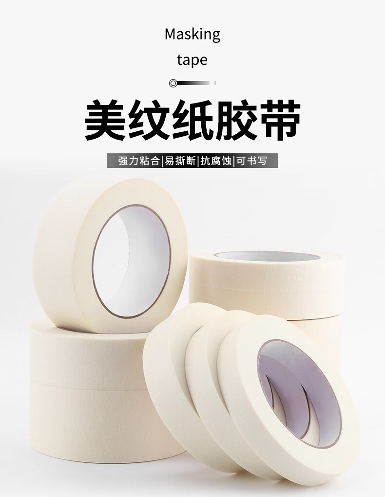 正邦达美纹纸胶带可书写不残留手撕无痕美术生专用汽车喷漆分色纸贴边画画素描装修漆遮蔽美缝美文 50mm宽*20m长*1卷