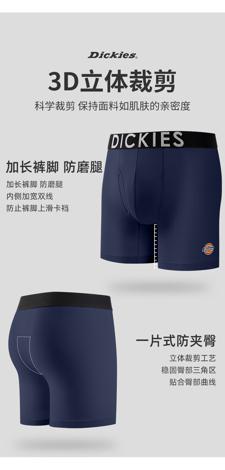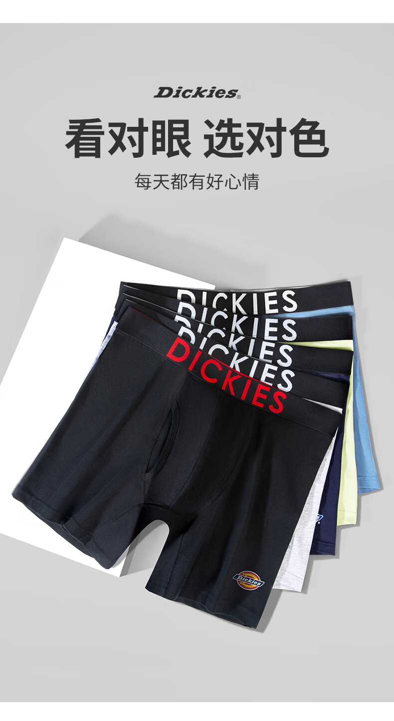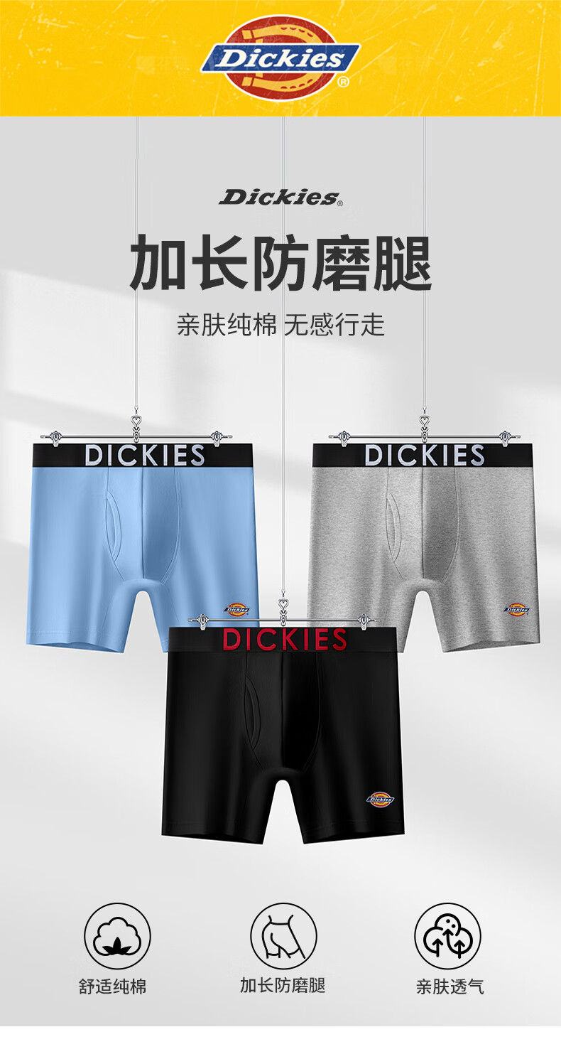 Dickies男士内裤纯棉加长阿罗裤10A抗菌青少年大码运动速干透气平四角裤 浅麻灰三条装 4XL 【适合200-23斤】