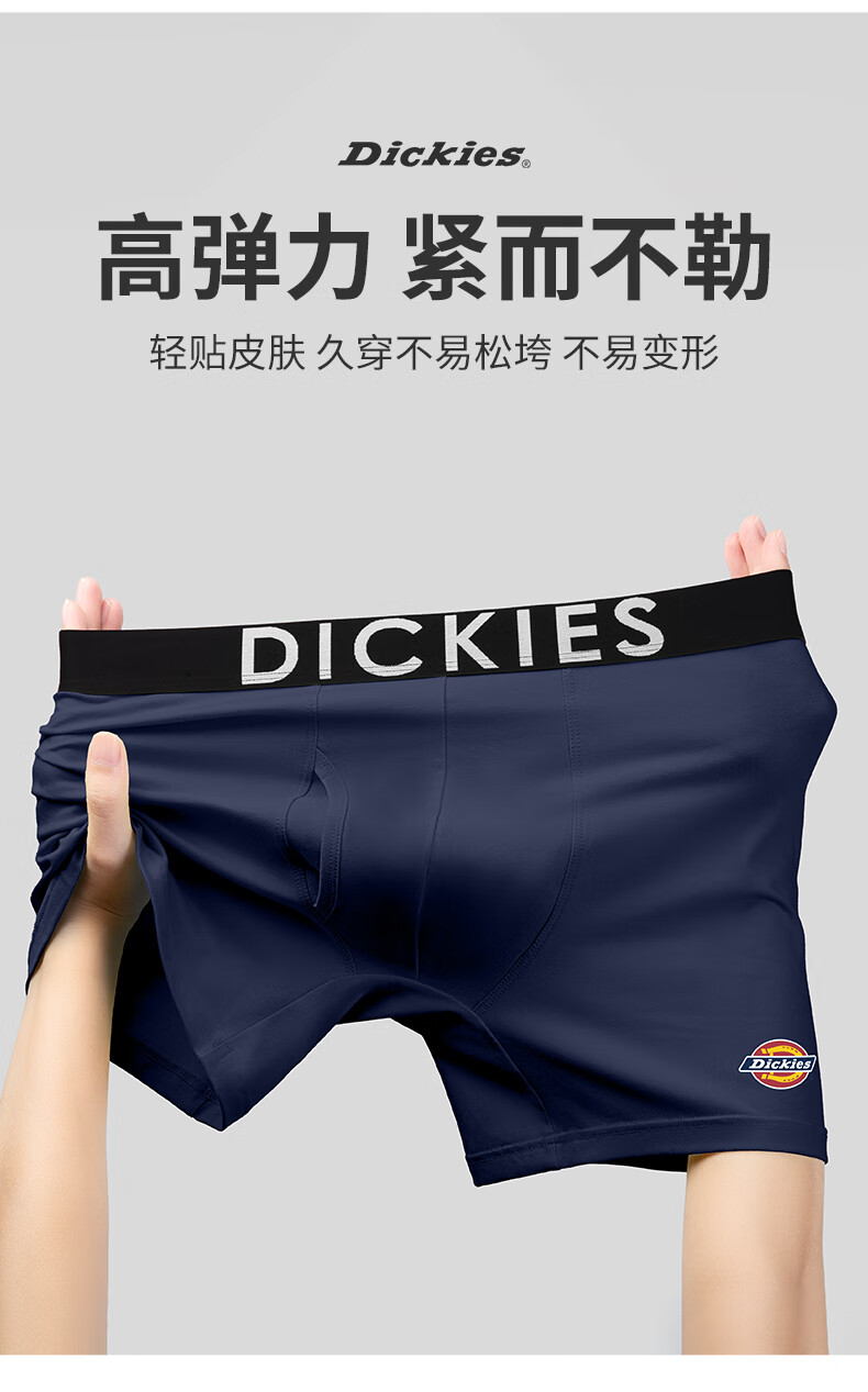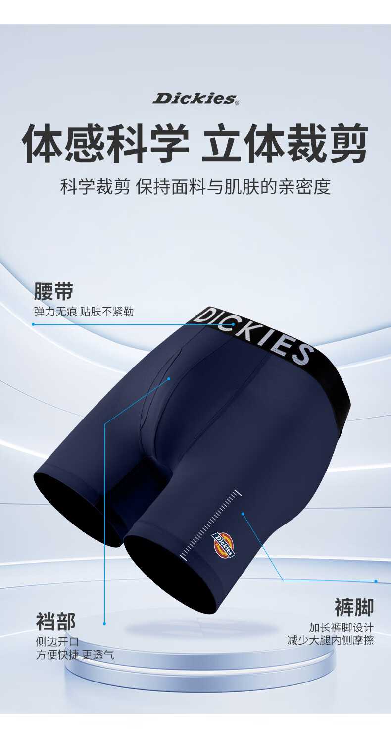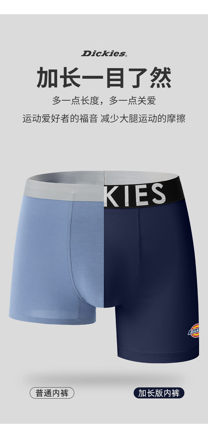 Dickies男士内裤纯棉加长阿罗裤10A抗菌青少年大码运动速干透气平四角裤 浅麻灰三条装 4XL 【适合200-23斤】