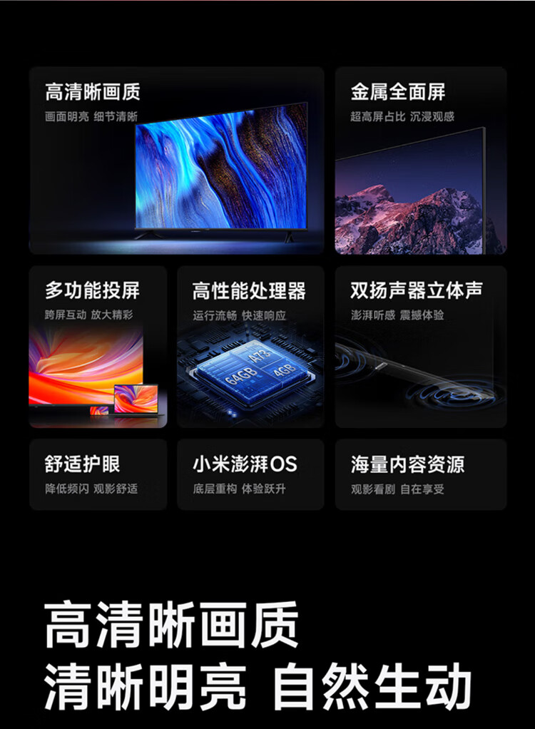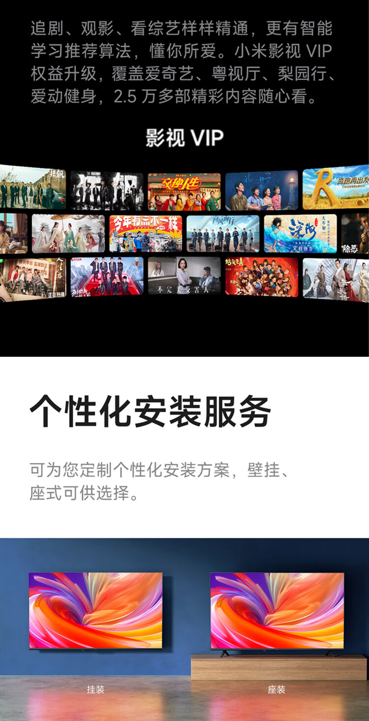 小米(MI)Redmi正品2026款55/75/85/100英寸新款4K超高清144Hz高刷全面屏智能wifi网络液晶投屏电视机 70英寸 平板 移动或伸缩挂架二选一+免费安装