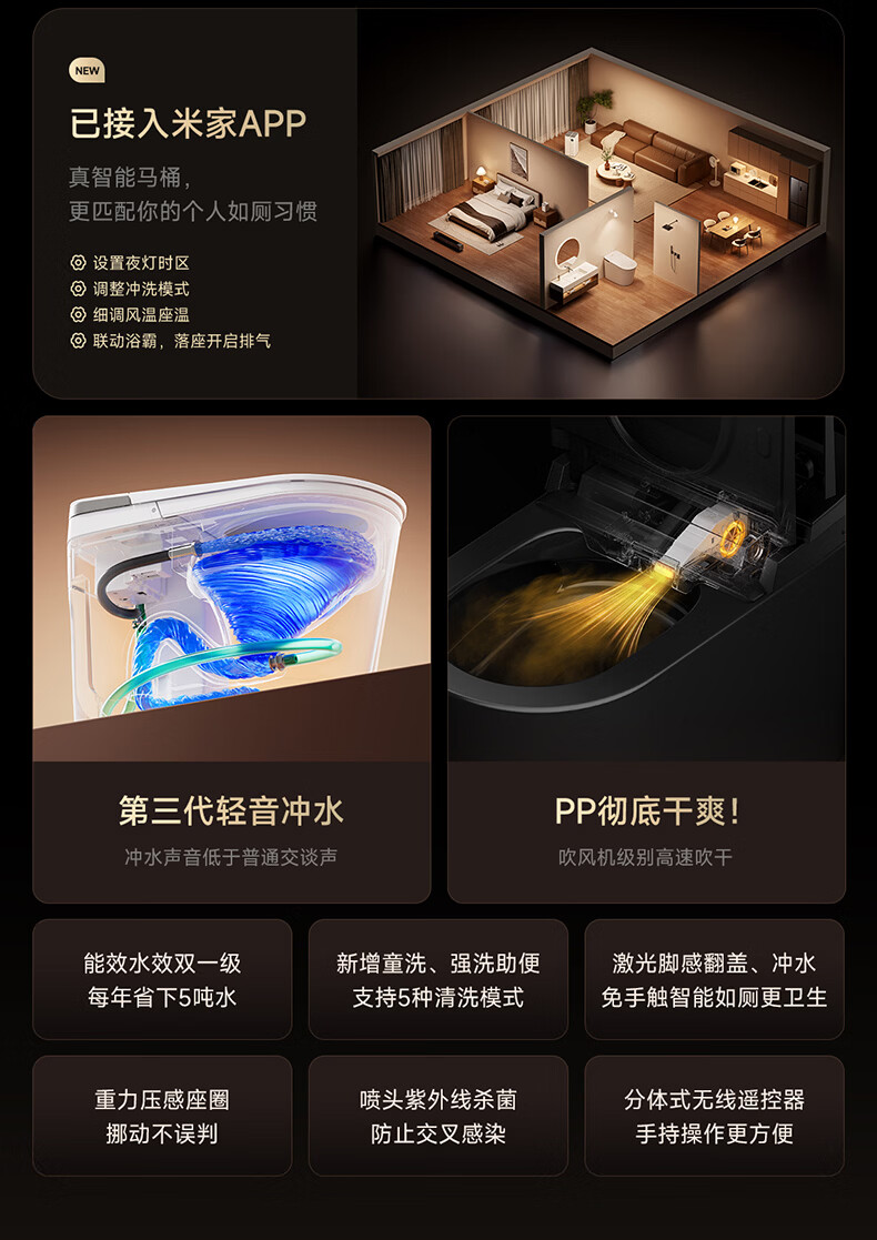 智米(SMARTMI)智米智能马桶强力除臭杀菌轻音自动翻盖坐便器无坑距3S智能版