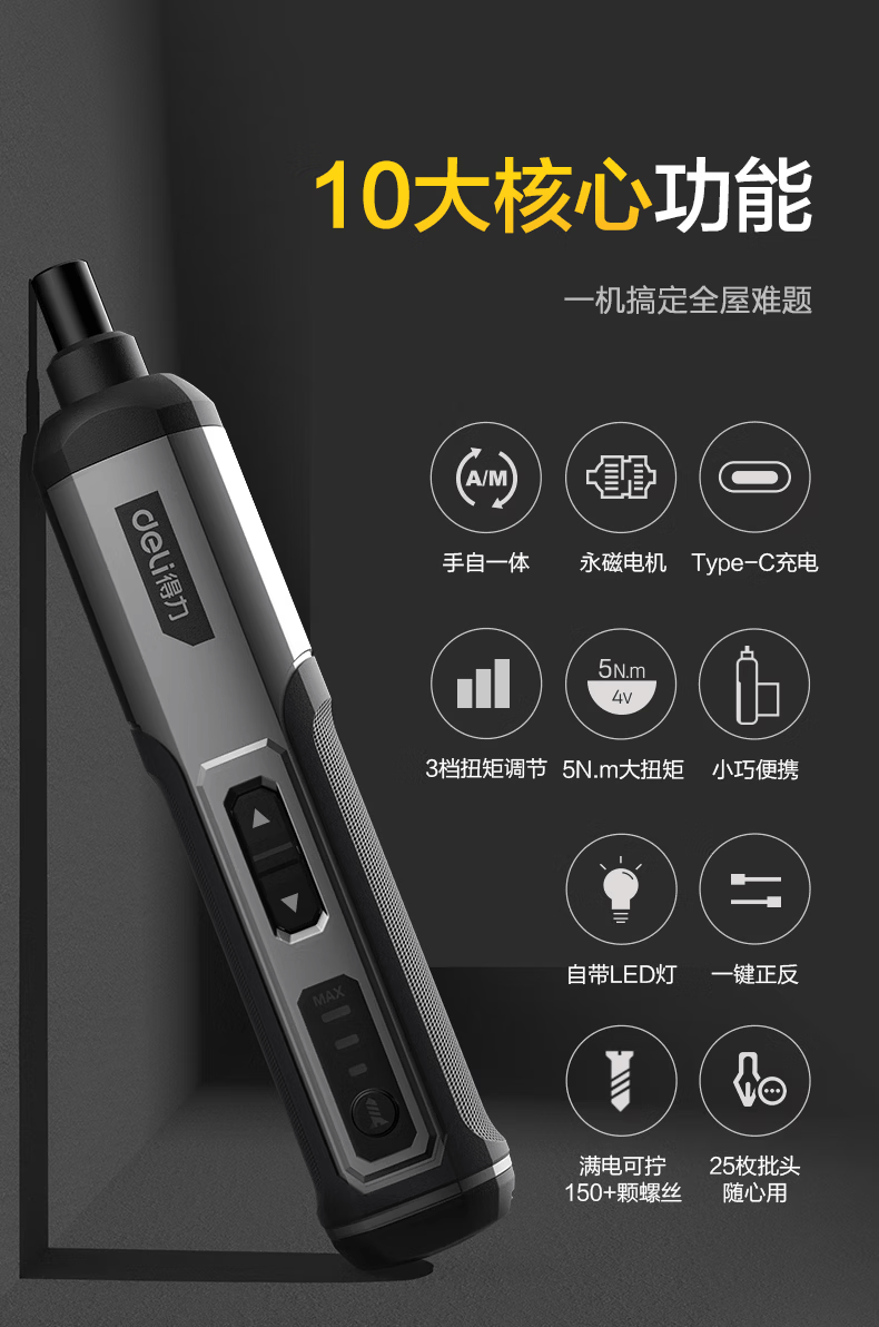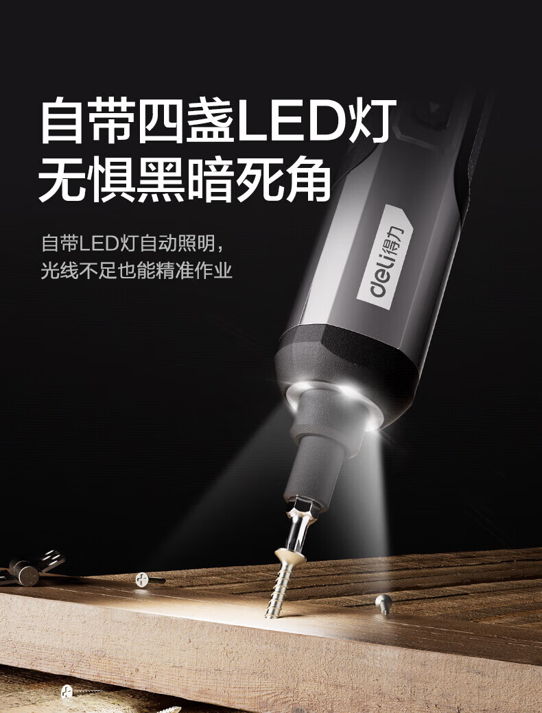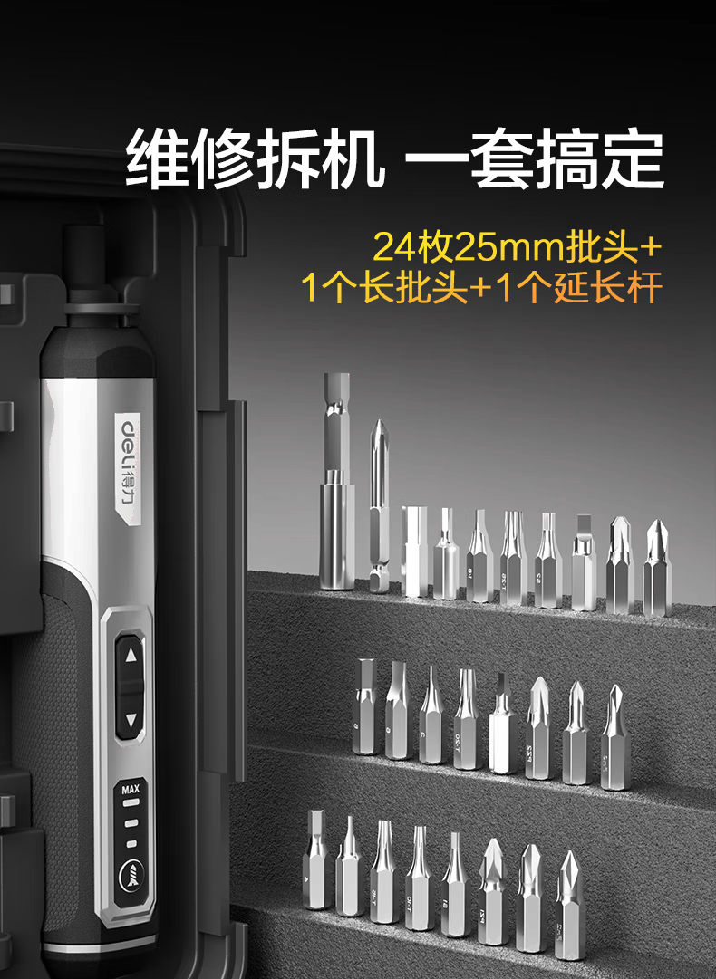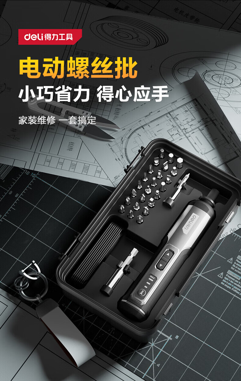 得力(deli)电动螺丝刀充电式家用小型手电钻迷你电动螺丝批起子机25批头套装