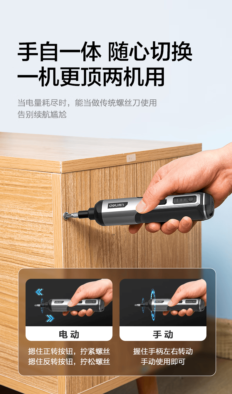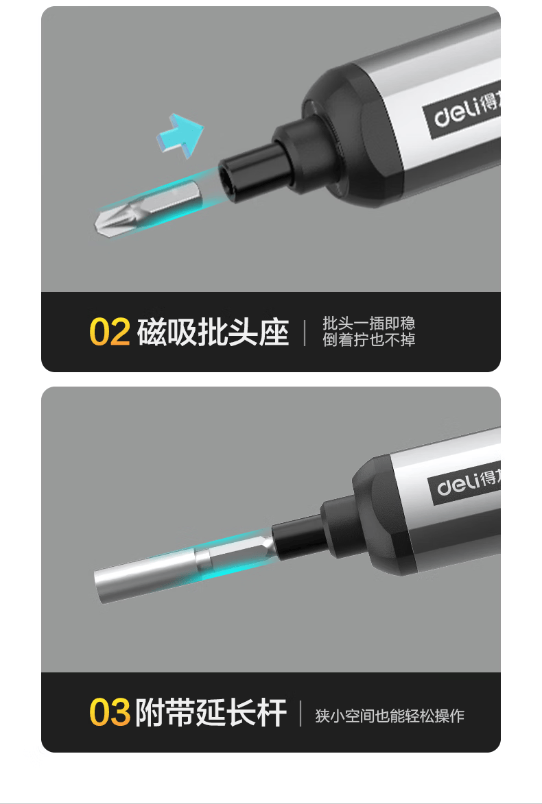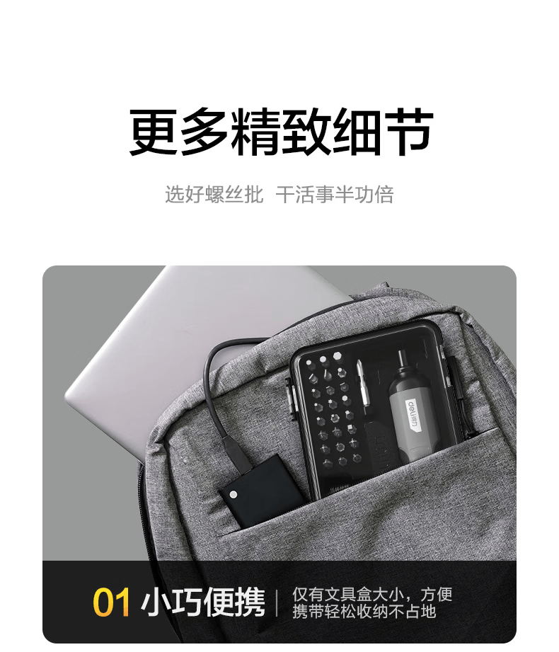 得力(deli)电动螺丝刀充电式家用小型手电钻迷你电动螺丝批起子机25批头套装
