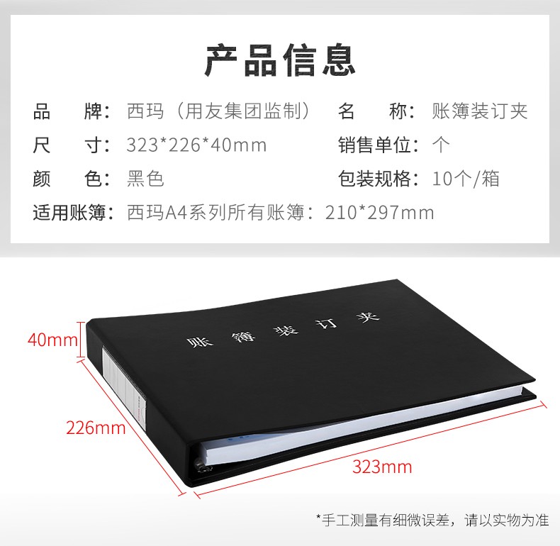 西玛(SIMAA)账簿装订夹凭证纸装订夹A4大小活页激光账簿夹横向账本夹子账册财务装订总分类账明细账323*226 账簿装订夹1个