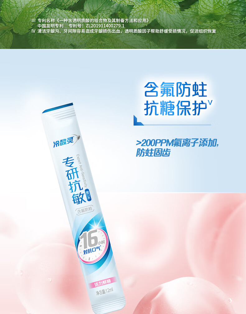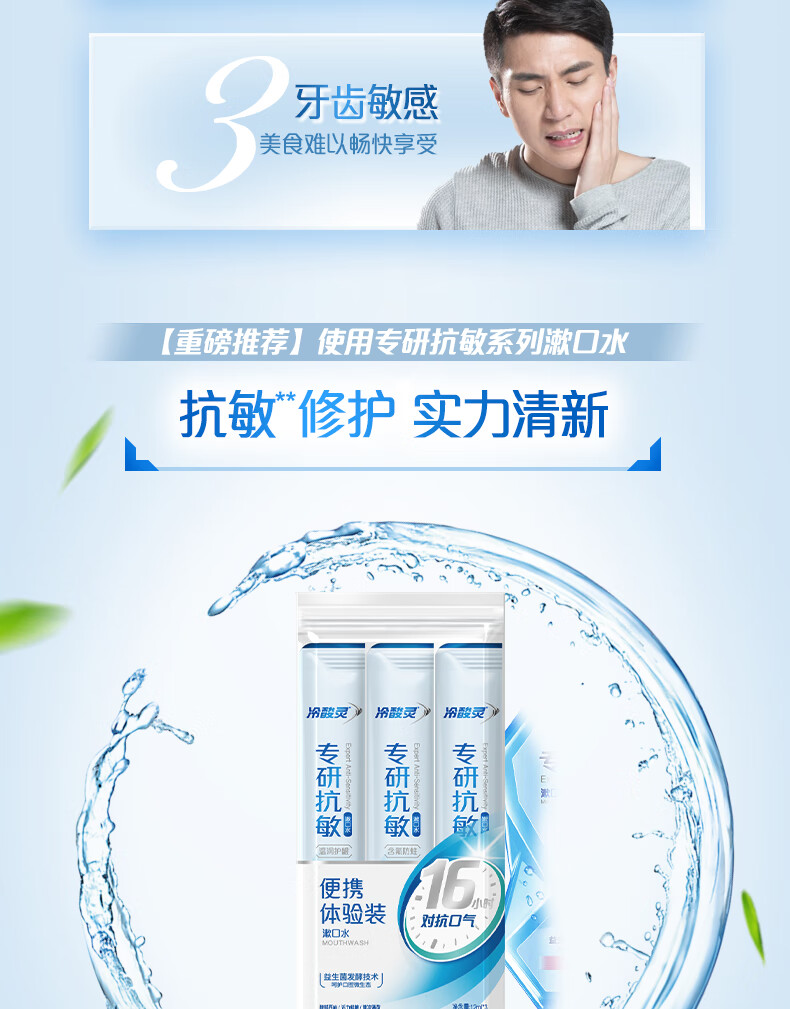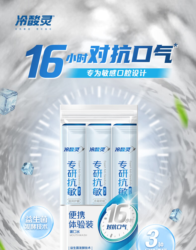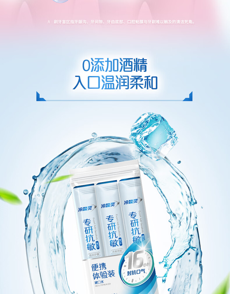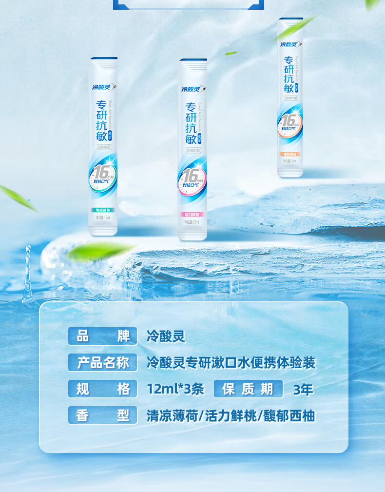 冷酸灵京东试用漱口水专研修护减少口腔细菌清除异味3条装/袋旅行装36ml