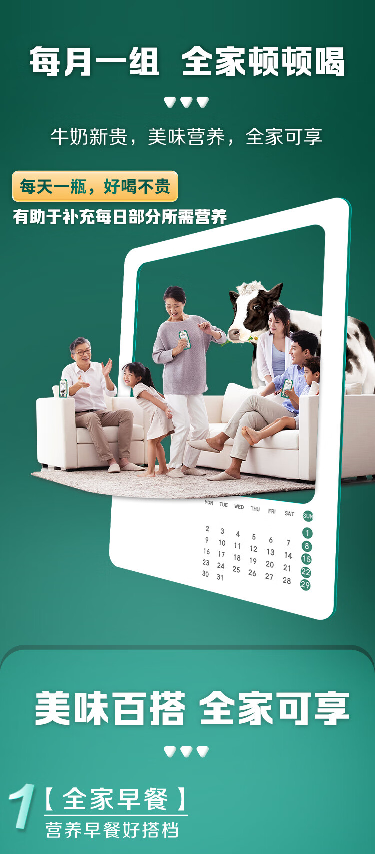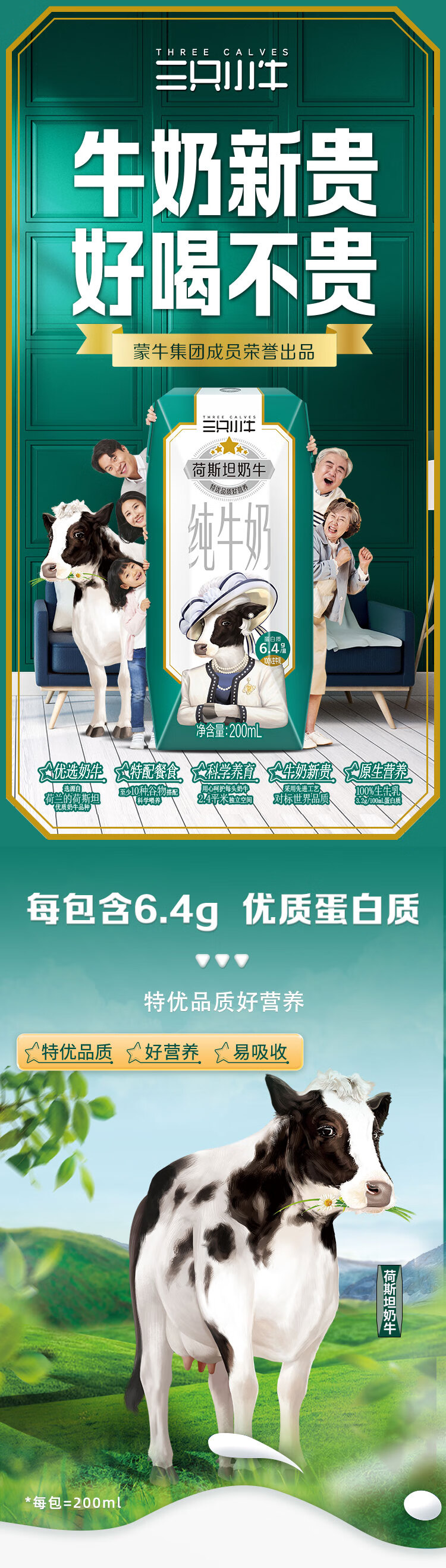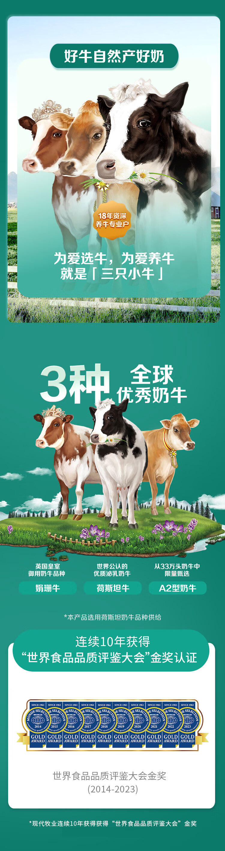 现代牧业三只小牛纯牛奶京东自营早餐奶整箱装100%生牛乳200ml*24盒