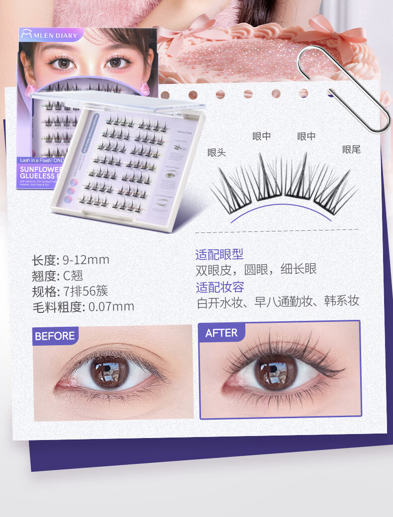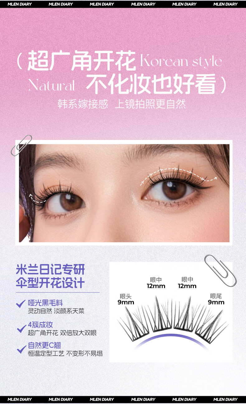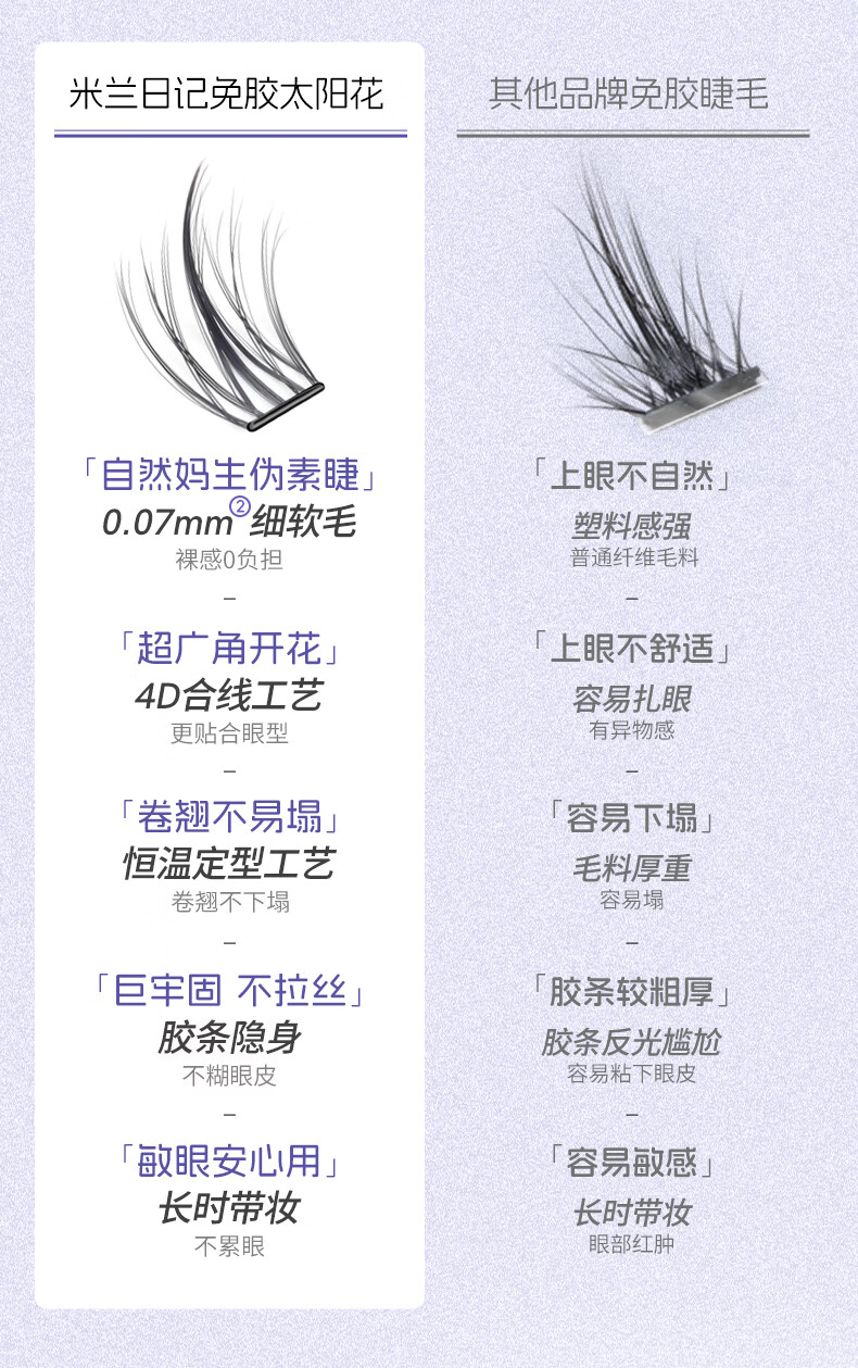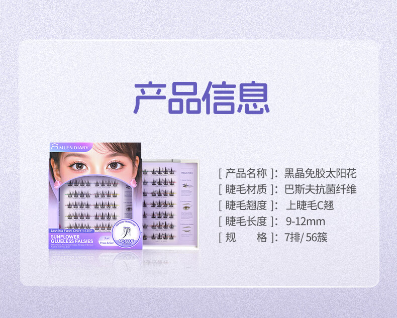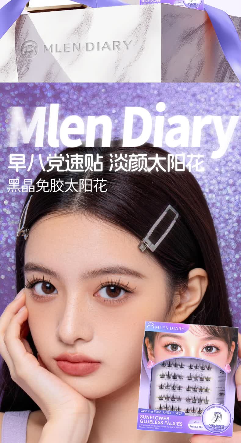 MLEN米兰日记黑晶免胶太阳花假睫毛自粘新款自然仿真眼睫毛女新手友好 时尚经典-免胶太阳花 2盒
