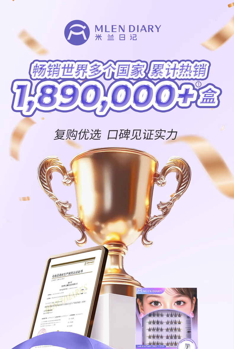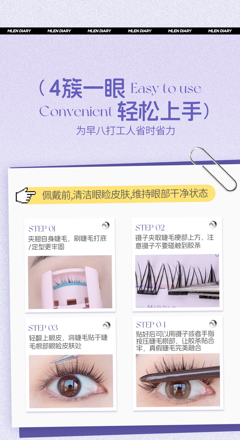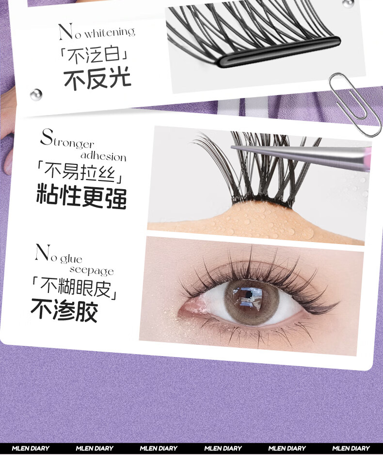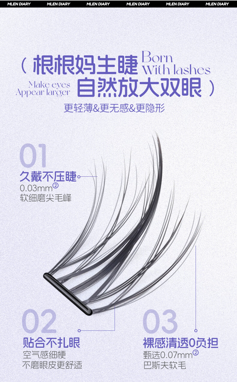 MLEN米兰日记黑晶免胶太阳花假睫毛自粘新款自然仿真眼睫毛女新手友好 时尚经典-免胶太阳花 2盒