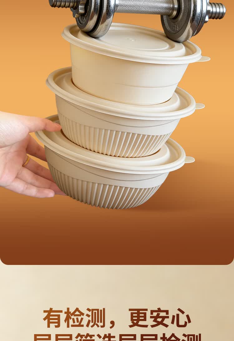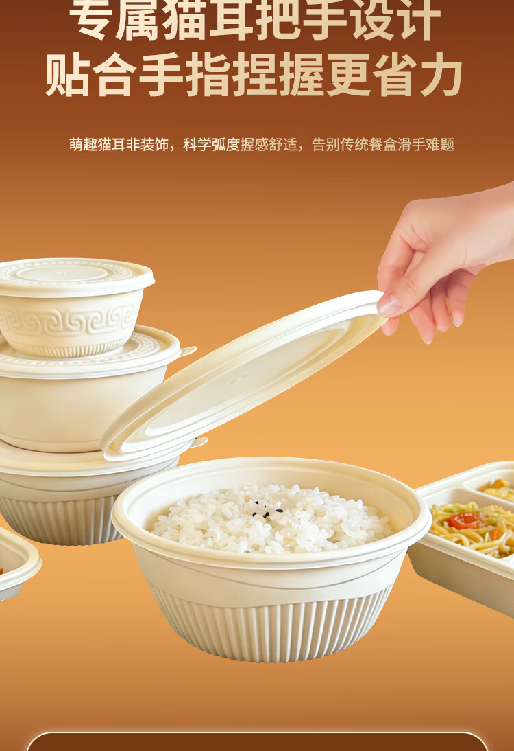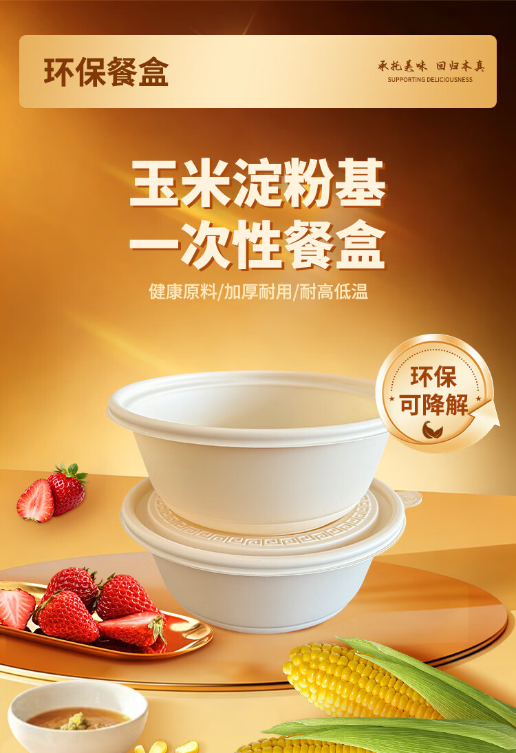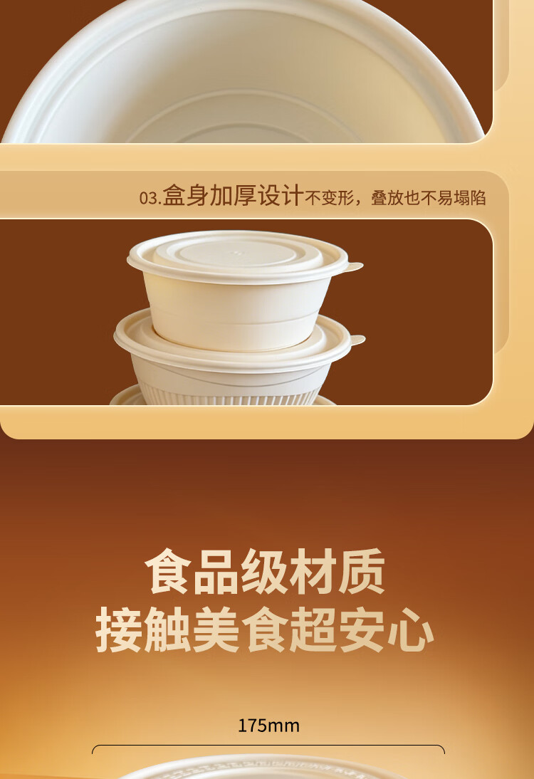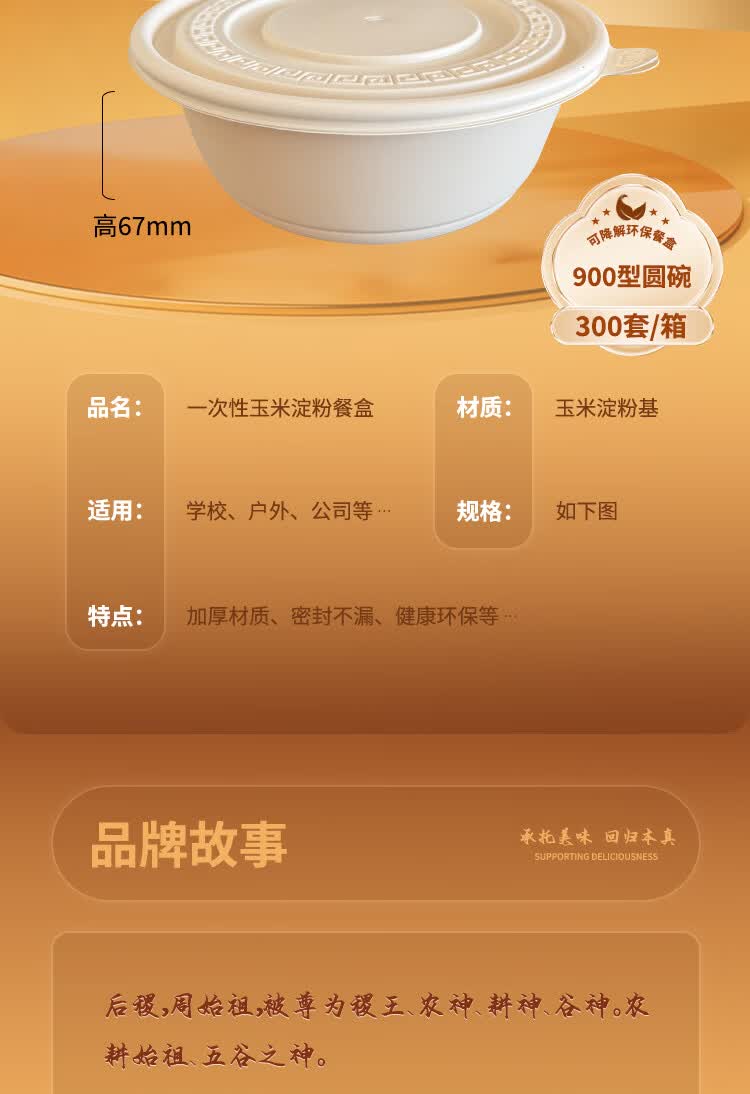 稷王谷900ml圆碗*300套一次性饭盒可降解外卖打包盒食品级可微波餐盒 玉米淀粉可降解餐盒