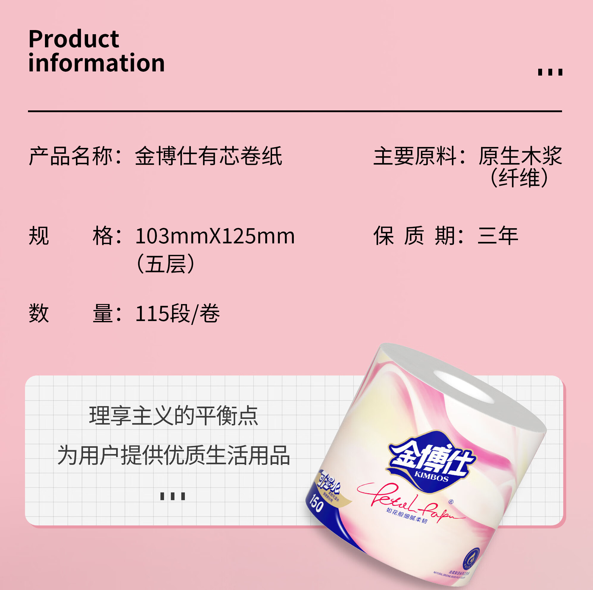 金博仕卷纸加厚有芯卷纸湿水不易破妇婴用纸厕纸卫生纸 5层 140g*20卷