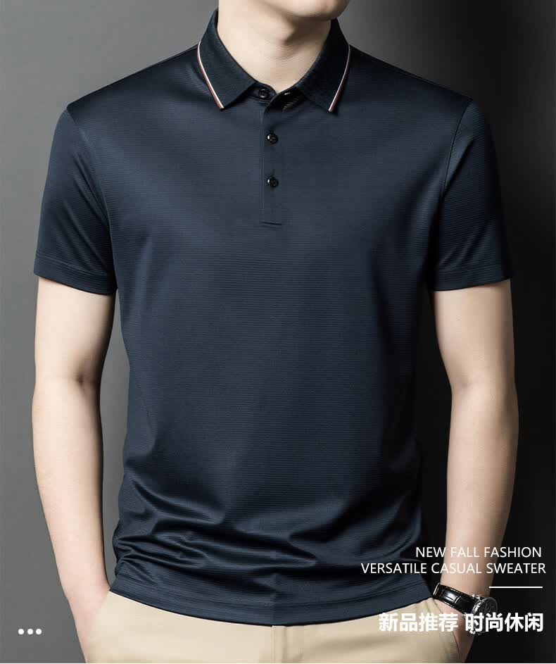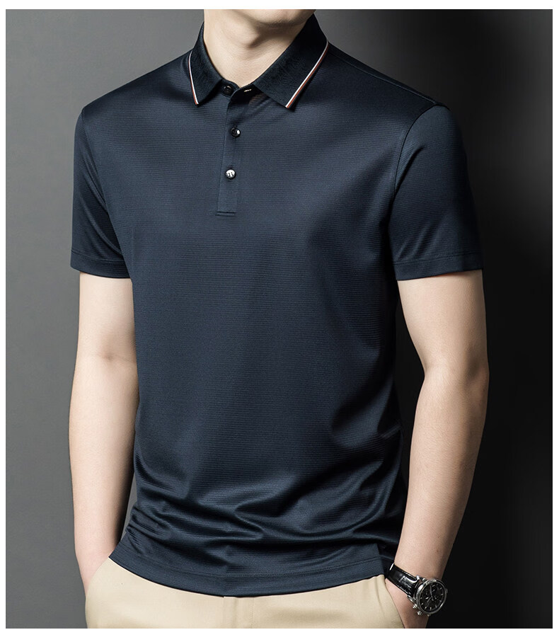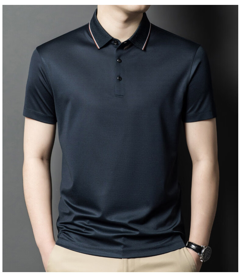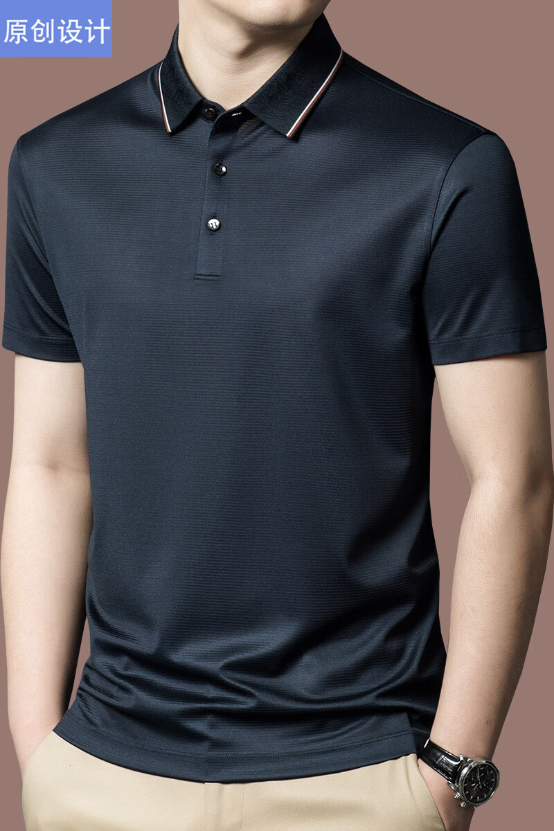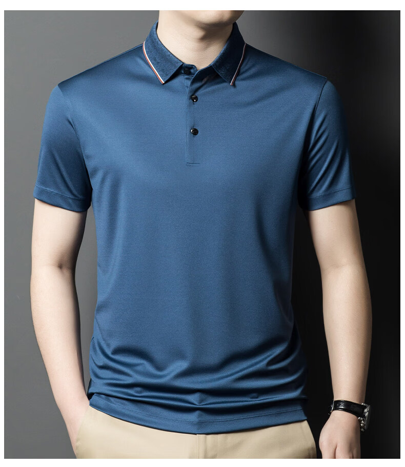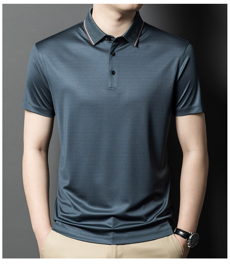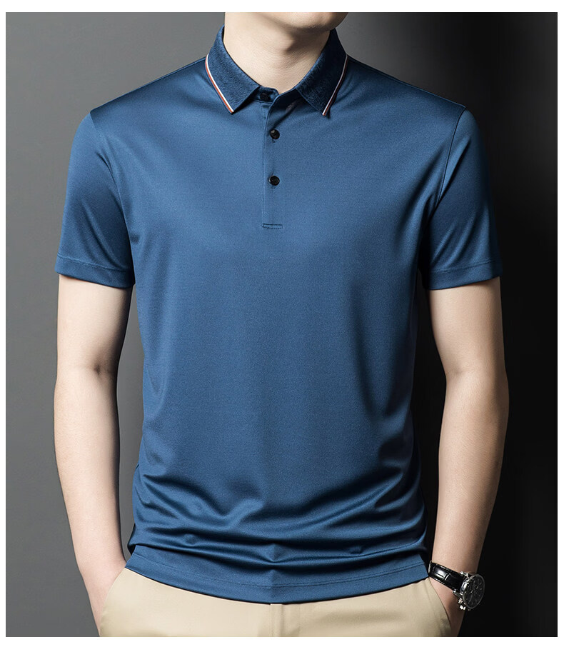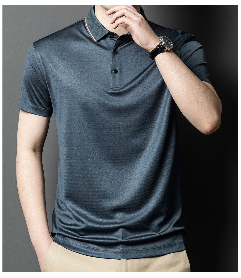 阿玛尼(ARMANI)正品品牌桑蚕丝短袖T恤男装薄款2026年夏季新款高端真丝POLO衫 国际一线品牌兰色 L 170__建议120斤到142斤穿