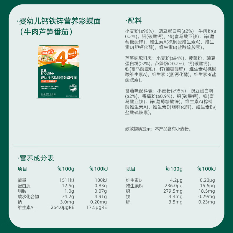 英氏(Engnice)婴幼儿彩蝶面牛肉芦笋番茄味200g 辅食宝宝儿童蝴蝶面 采销真验厂