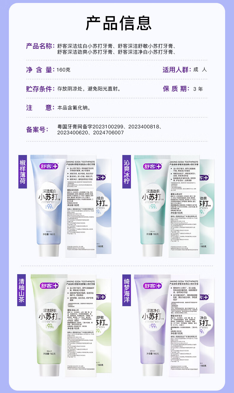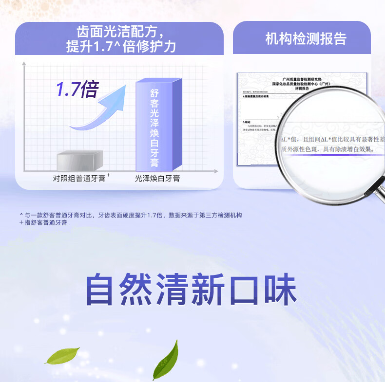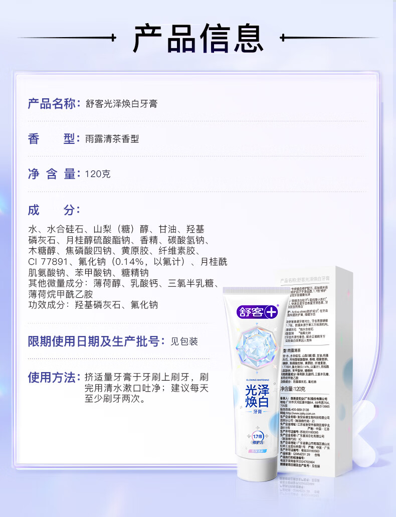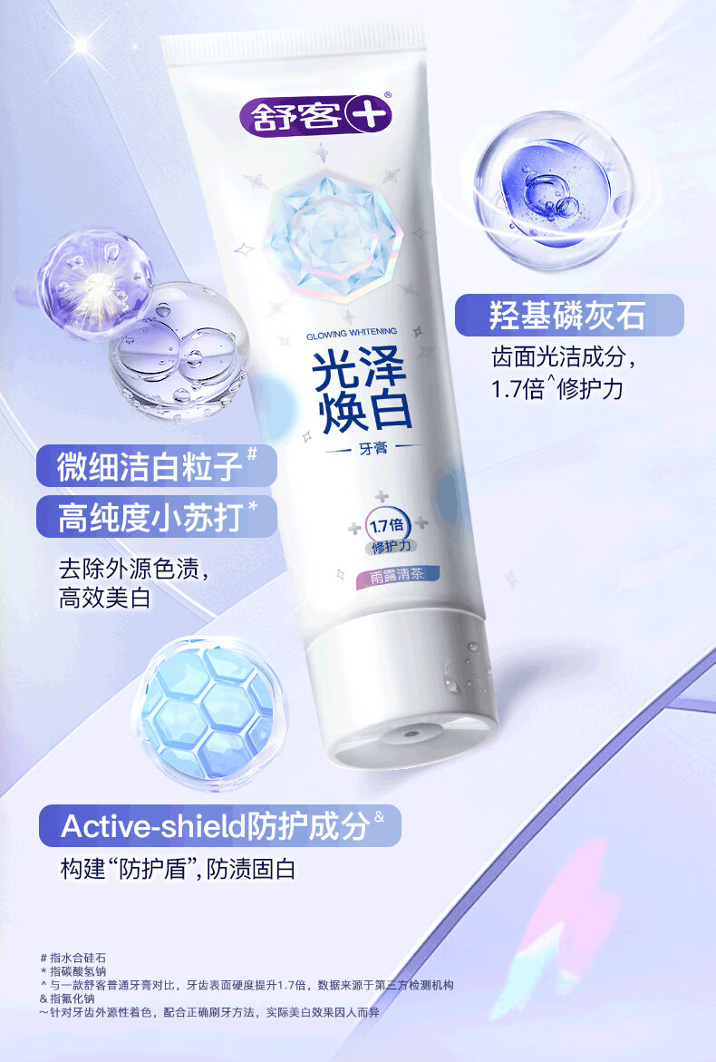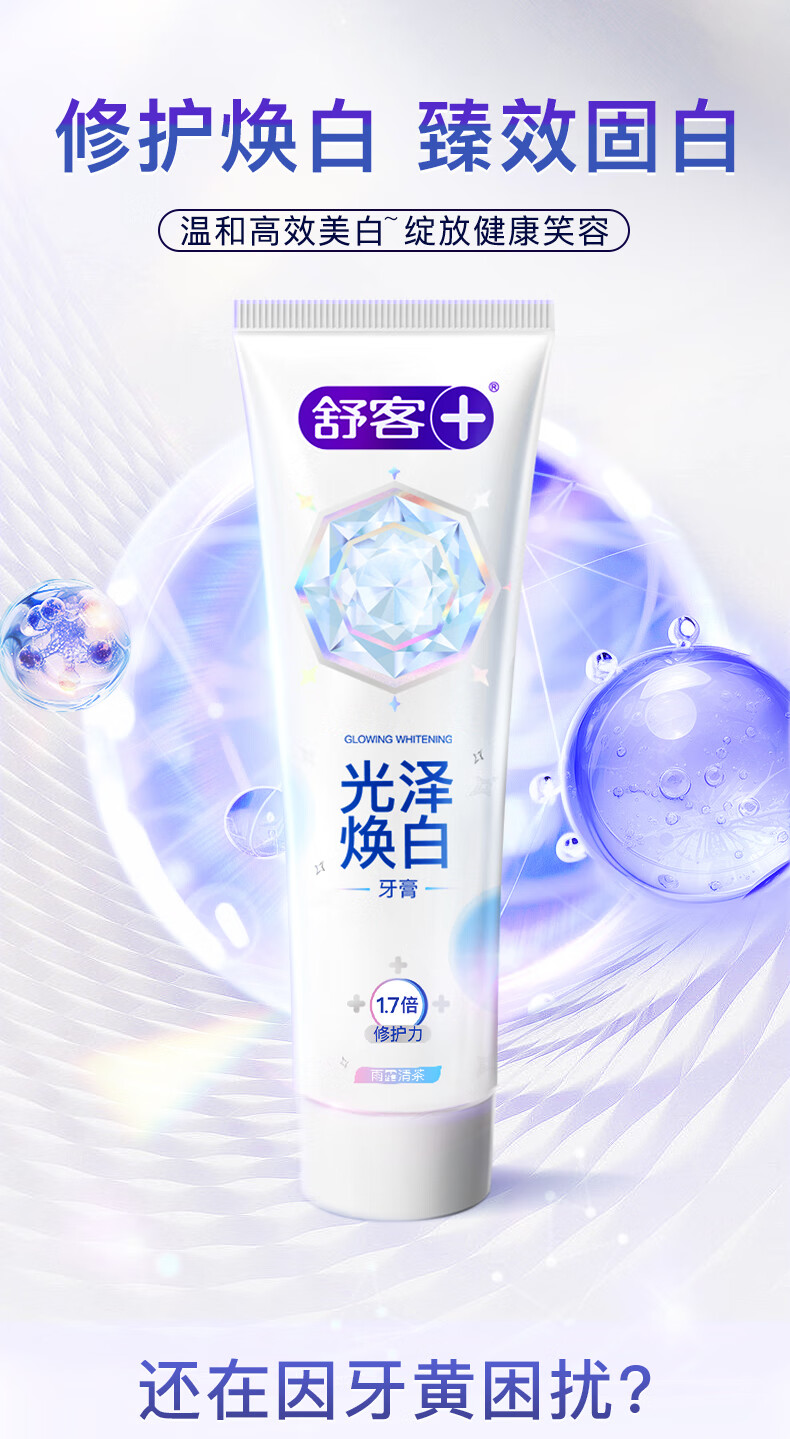 舒客小苏打牙膏美白去黄护龈清新口气智感焕白牙渍烟渍男女开学 【120g*2 光泽美白牙膏】清茶+茉莉