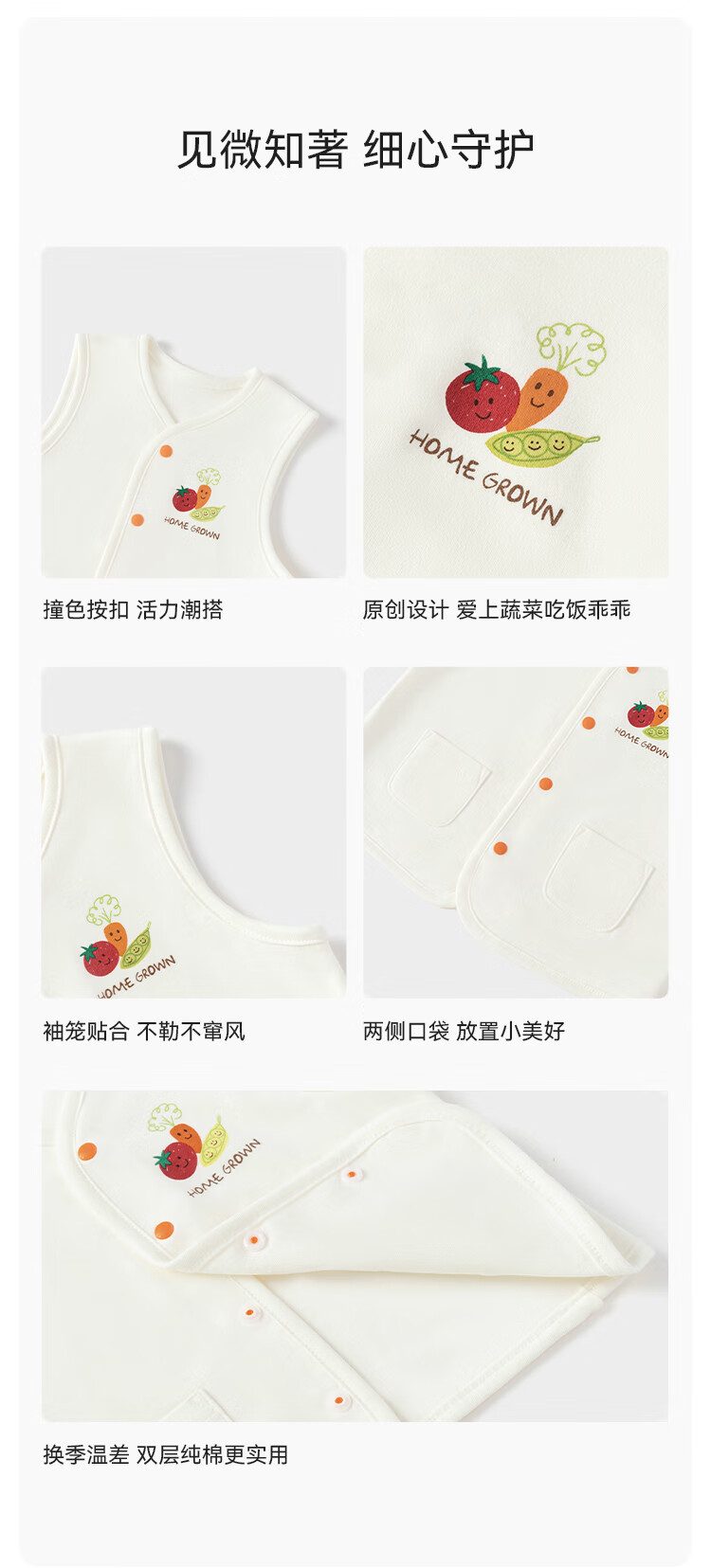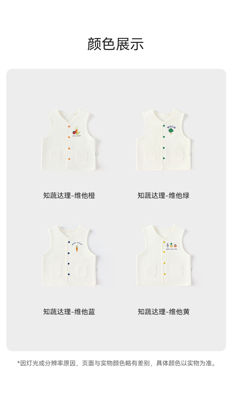 babylove【清仓】【安心柔】婴儿马甲纯棉小马褂春秋男女宝宝宝外搭背心 知蔬达理-维他黄 73 cm