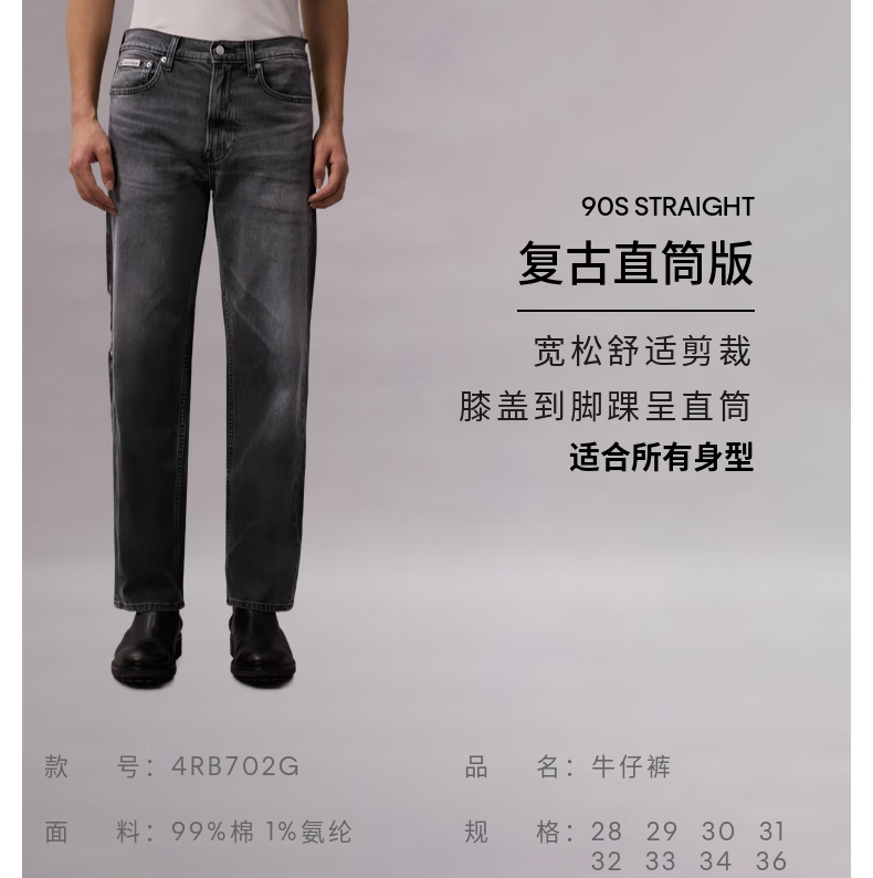 Calvin KleinJeans【免费改裤复刻90系列】四季款男士美式ck直筒灰色牛仔裤 W0J-牛仔灰 31