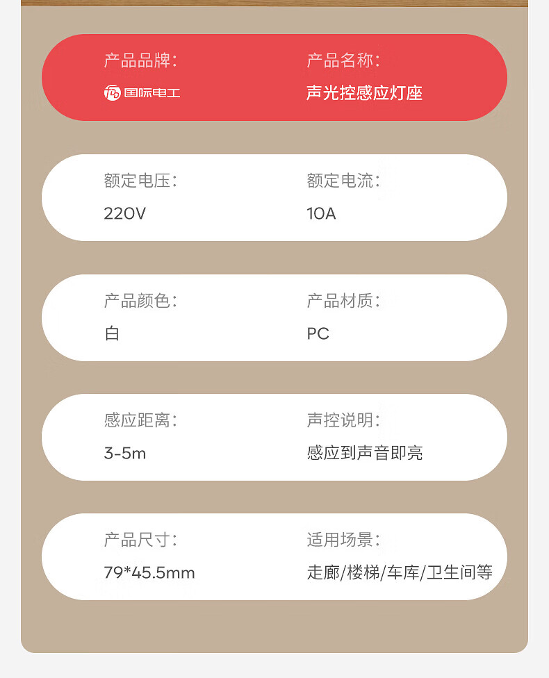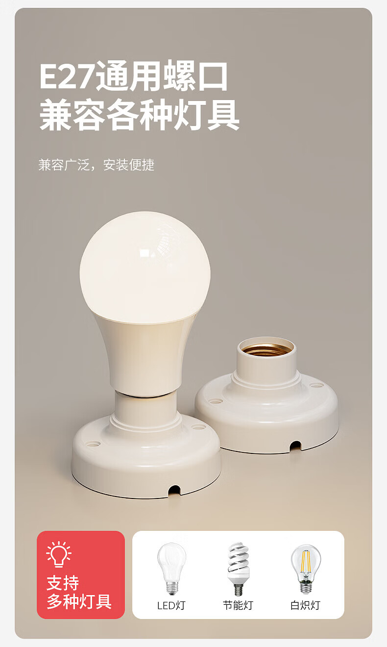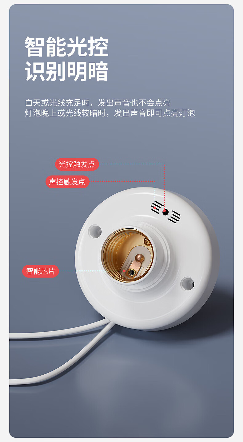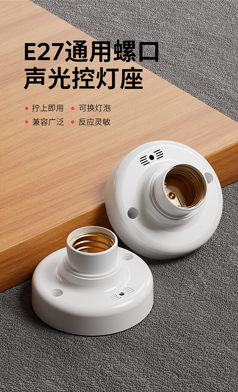 国际电工(FDD)感应灯头LED声光控灯座声控感应器楼梯过道车库E27螺口声控开关 E27声光控灯座【1只装】