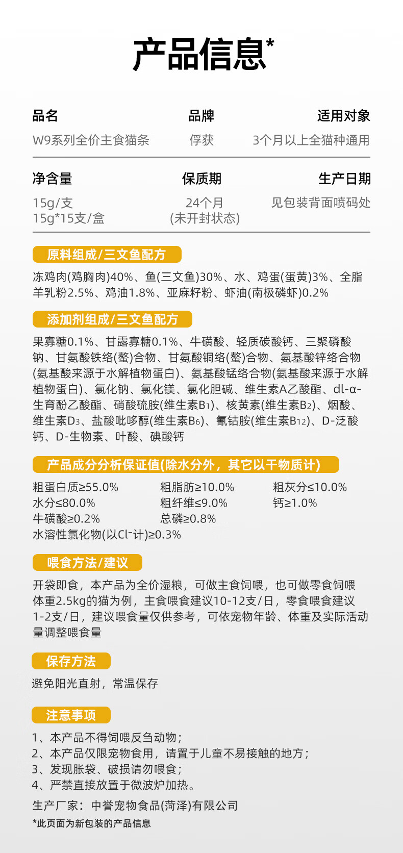 俘获W9主食猫条饭粮猫咪零食幼猫成猫宠物猫条添加鱼油