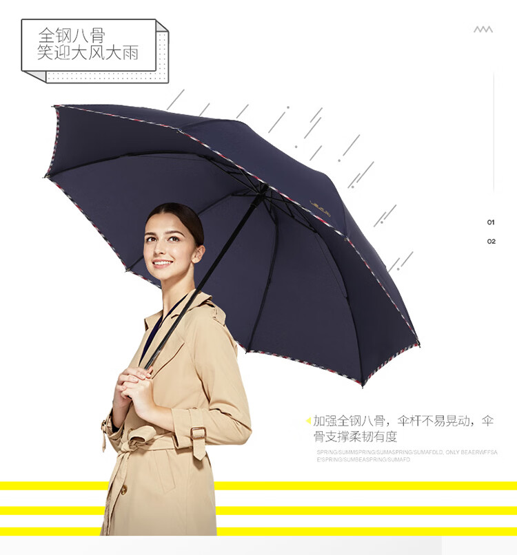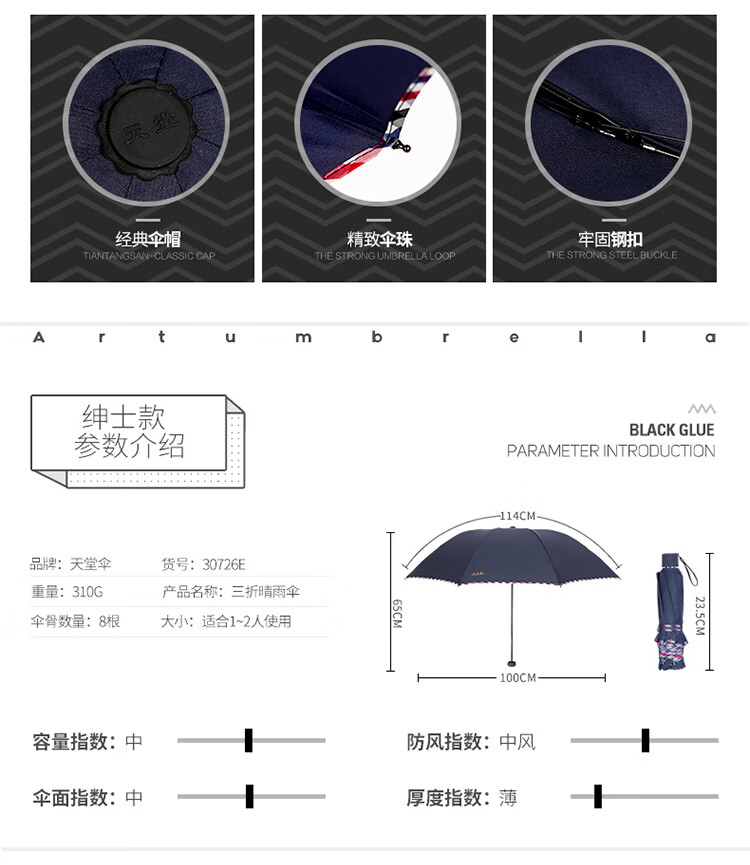 天堂伞商务经典折叠便携伞加固加厚雨伞男女士学生定制logo 岩石蓝