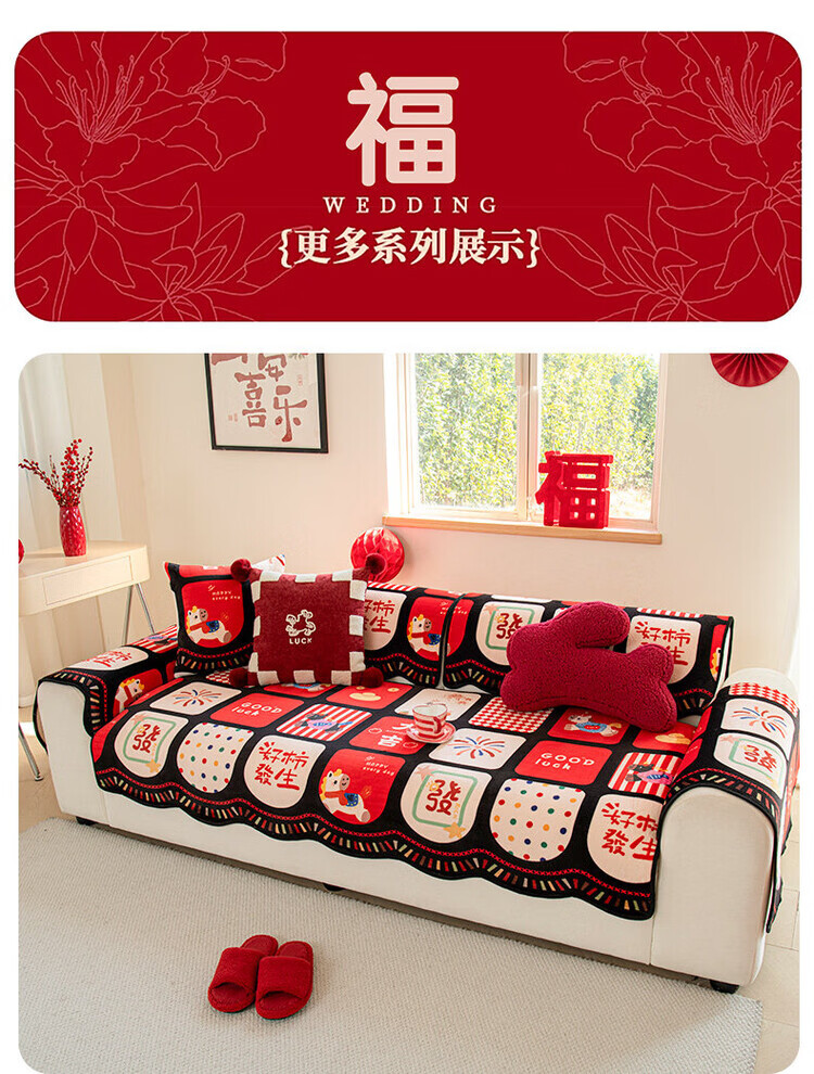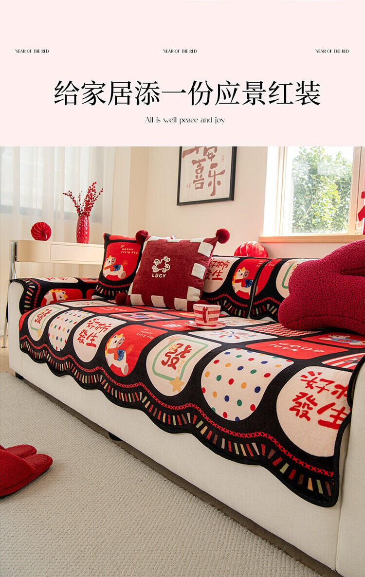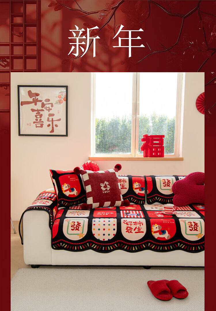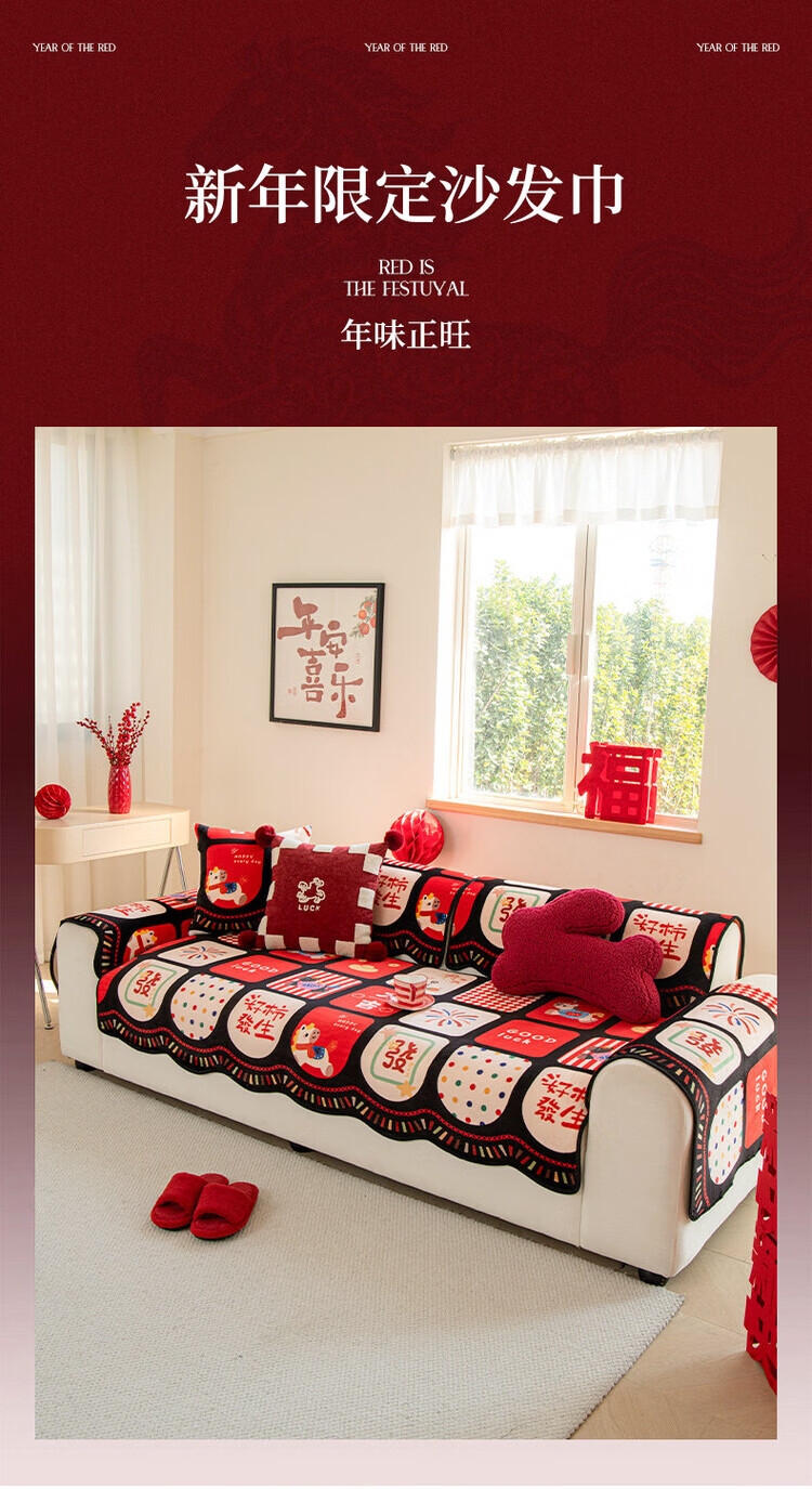 ALPLUME新年限定沙发垫2026新款红色氛围感坐垫高级感固定防滑沙发靠背垫 好柿发生 【一片】110*260cm四人位