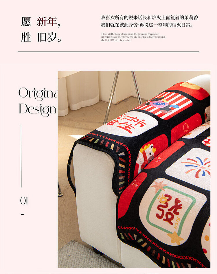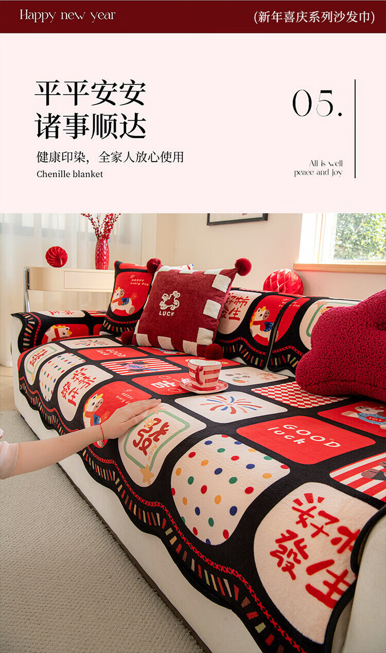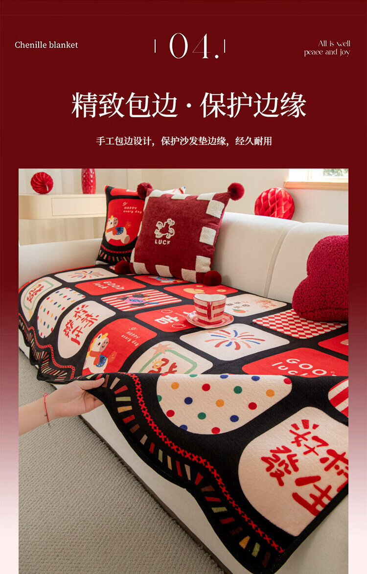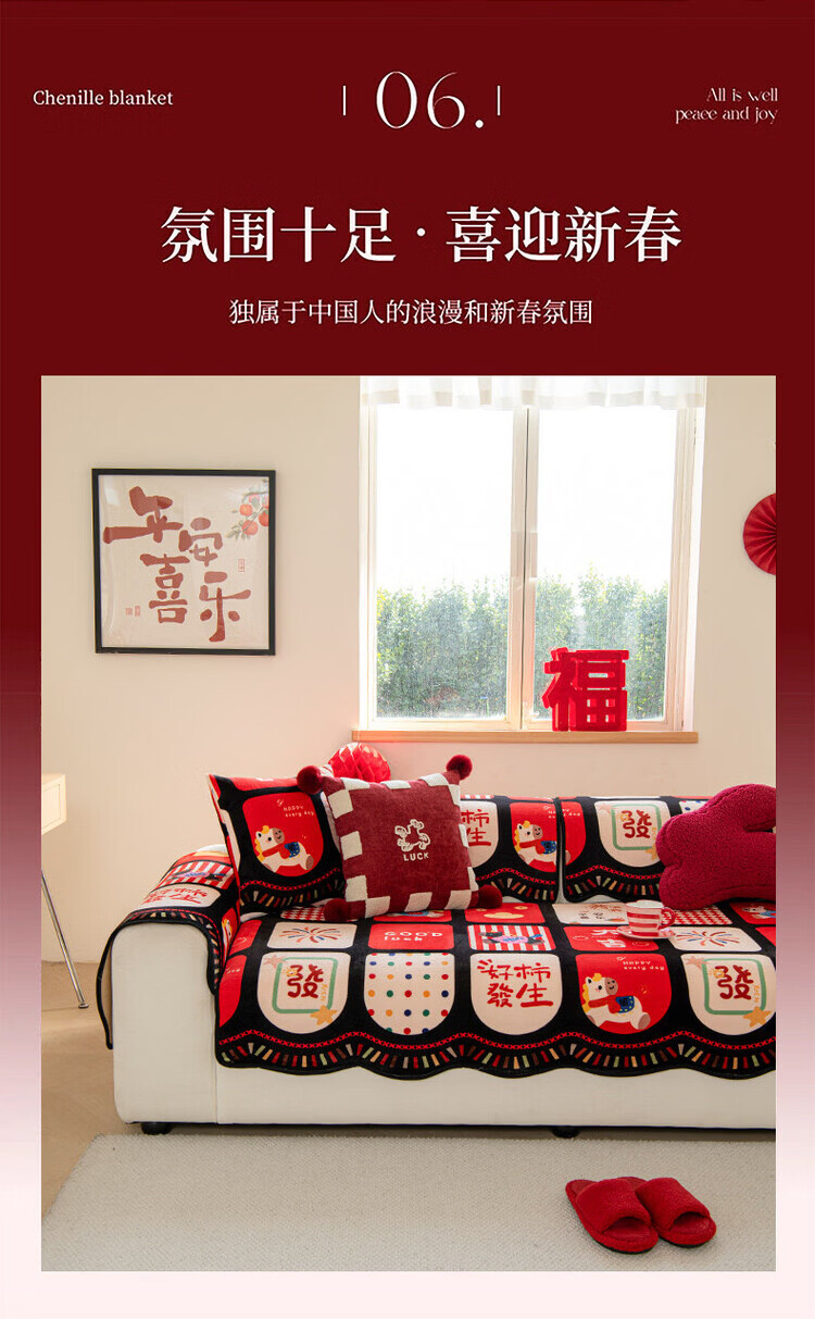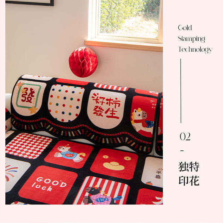 ALPLUME新年限定沙发垫2026新款红色氛围感坐垫高级感固定防滑沙发靠背垫 好柿发生 【一片】110*260cm四人位