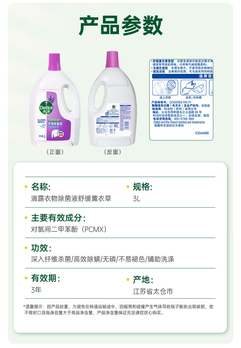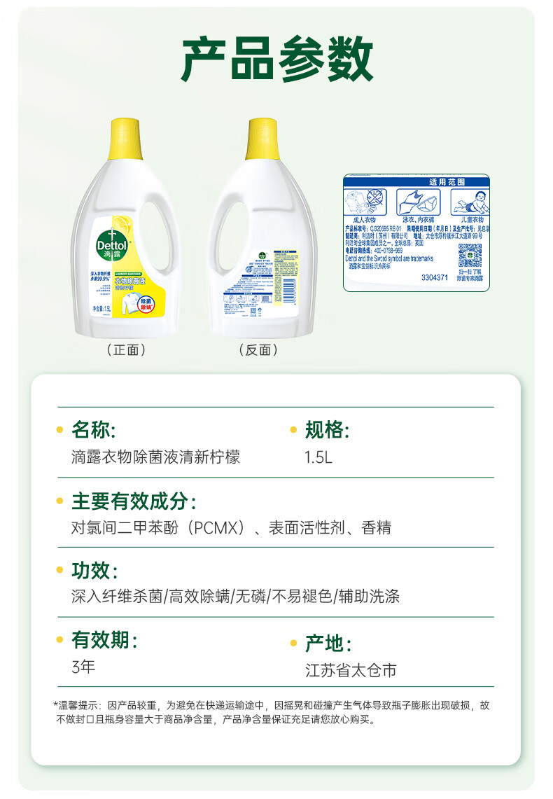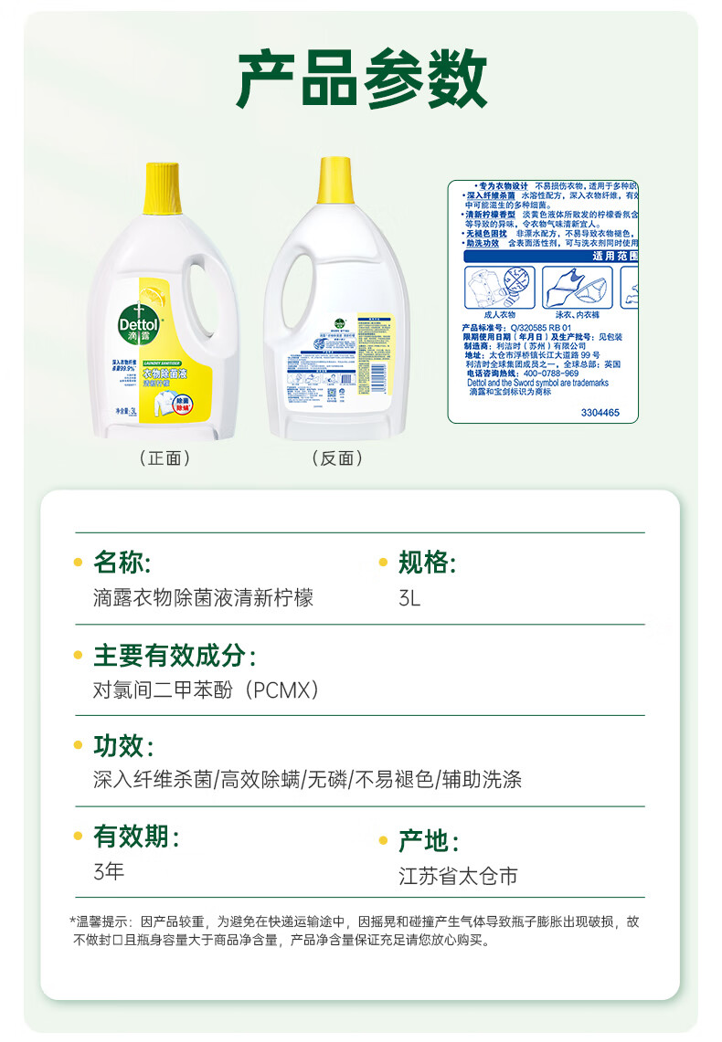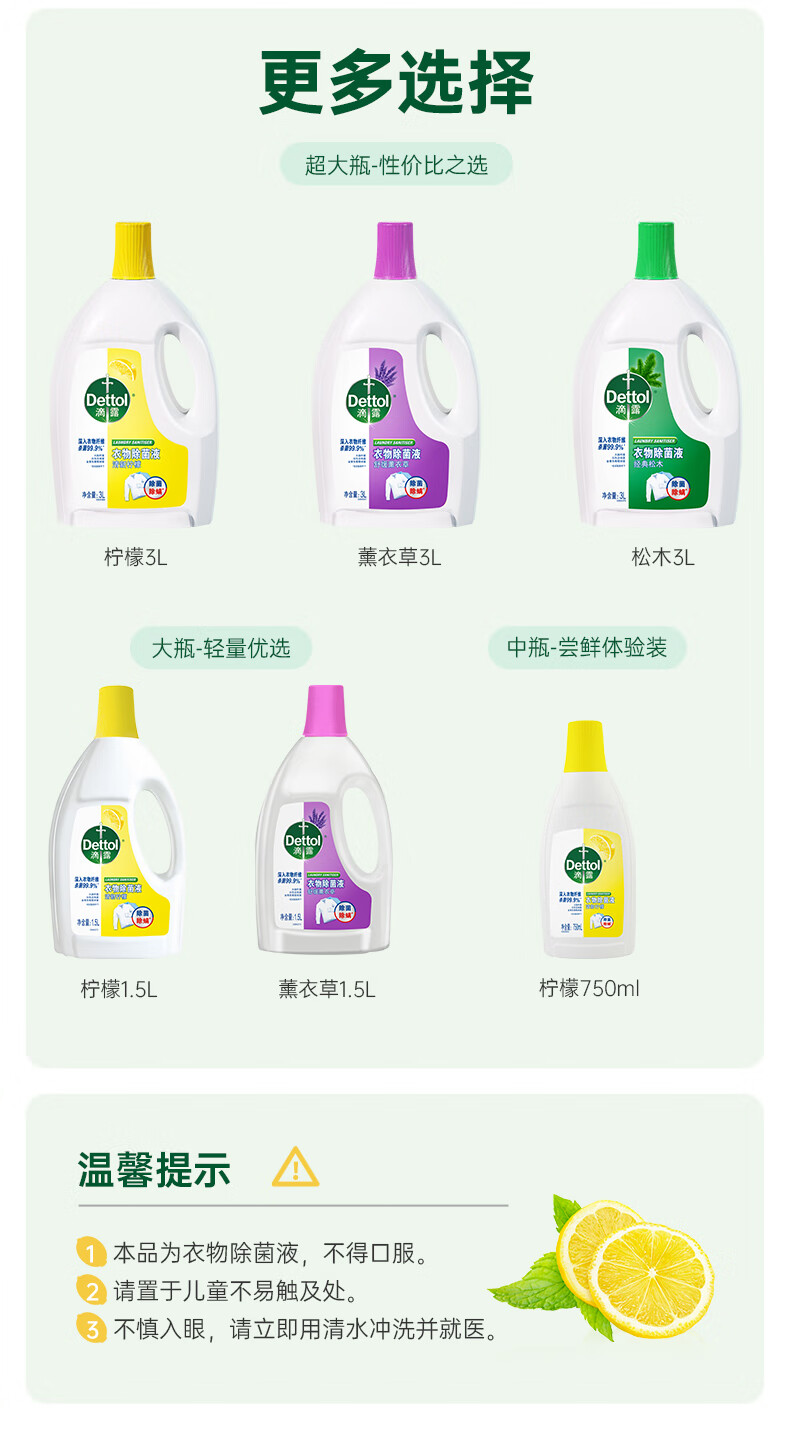 滴露衣物消毒除菌液 高效杀菌除螨除味内衣裤清洁 搭配洗衣液消毒液用 柠檬3L*2