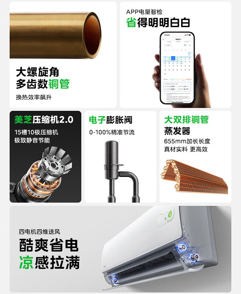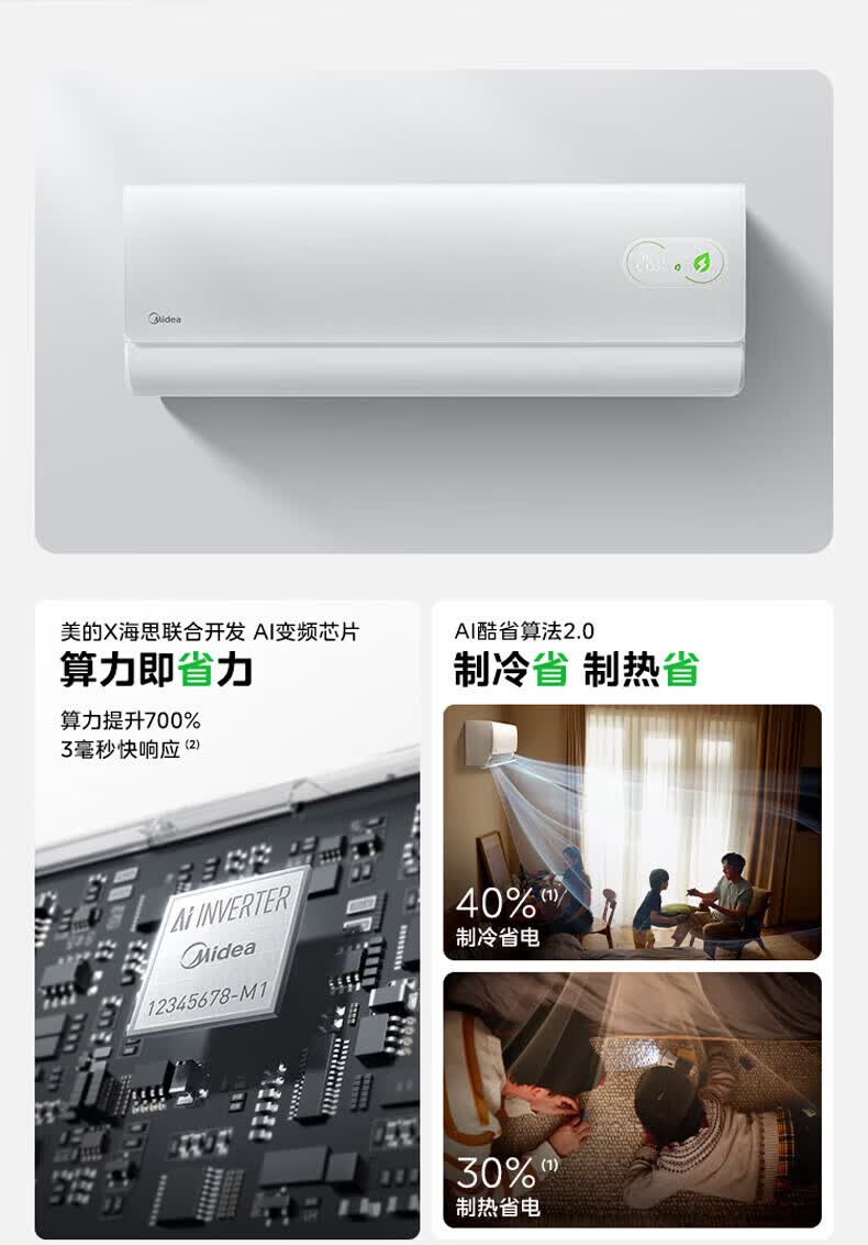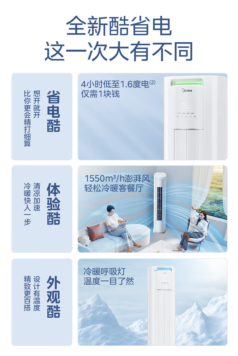 美的(Midea)空调套装 酷省电pro新一级能效变频冷暖智能防直吹家用节能省电卧室挂机+客厅立式柜机双排纯铜管 酷省电系列 一室一厅【全一级能效】
