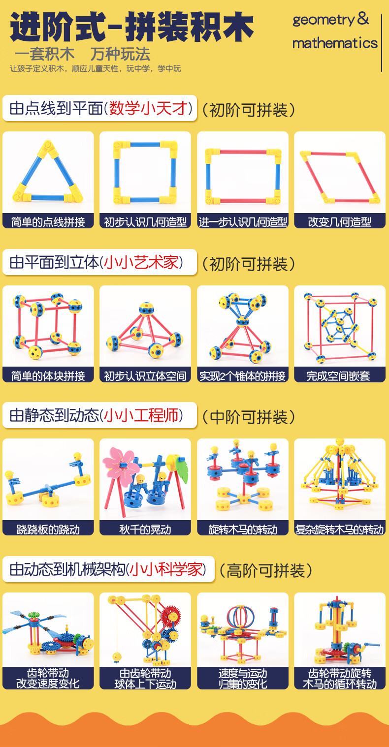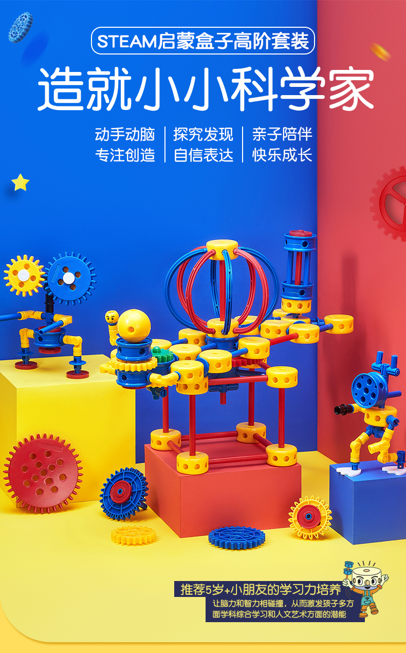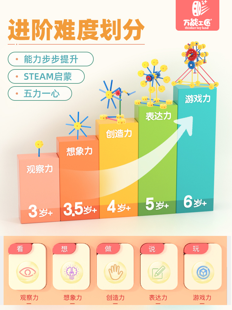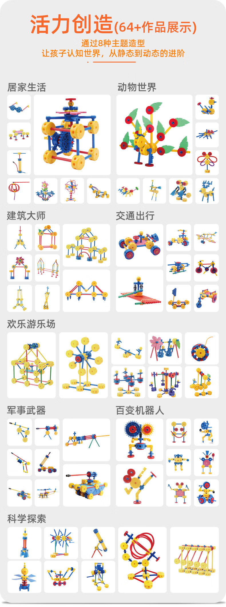 万能工匠儿童益智玩具幼儿园3-6岁男女孩启蒙拼装拼插大颗粒机械齿轮积木 礼盒体验装